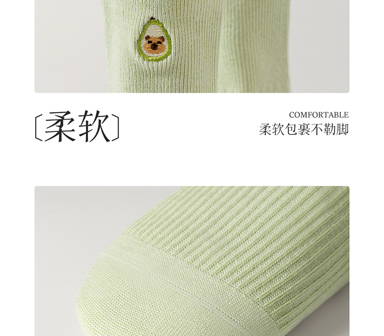 • 도트 얀 토끼 자수 스트라이프 미드 종아리 여성용 양말