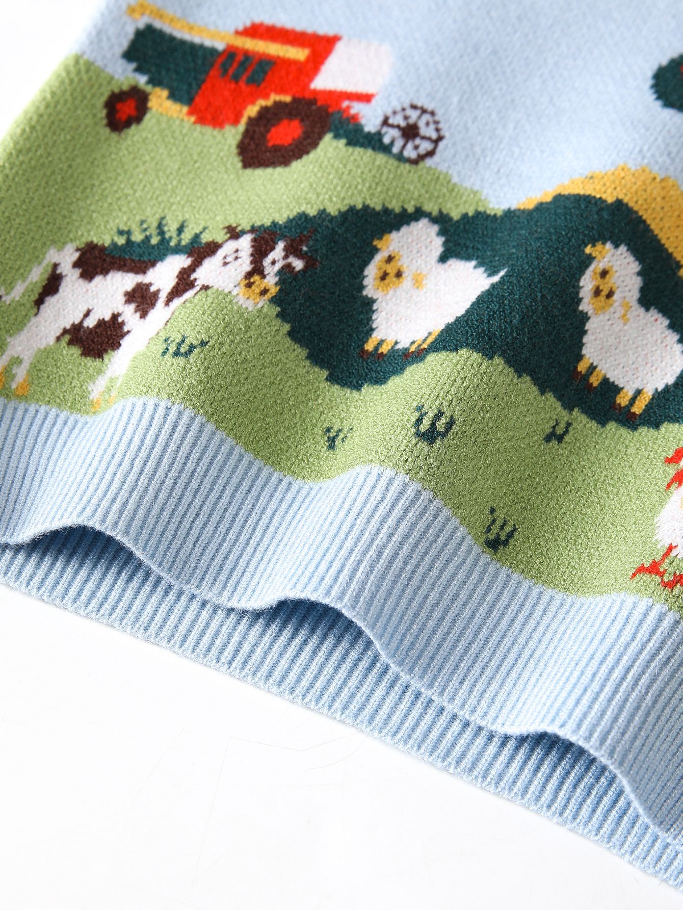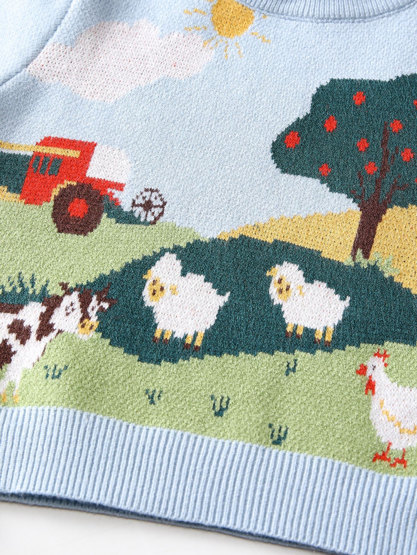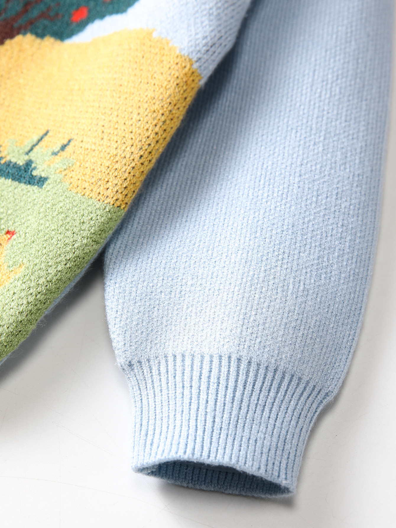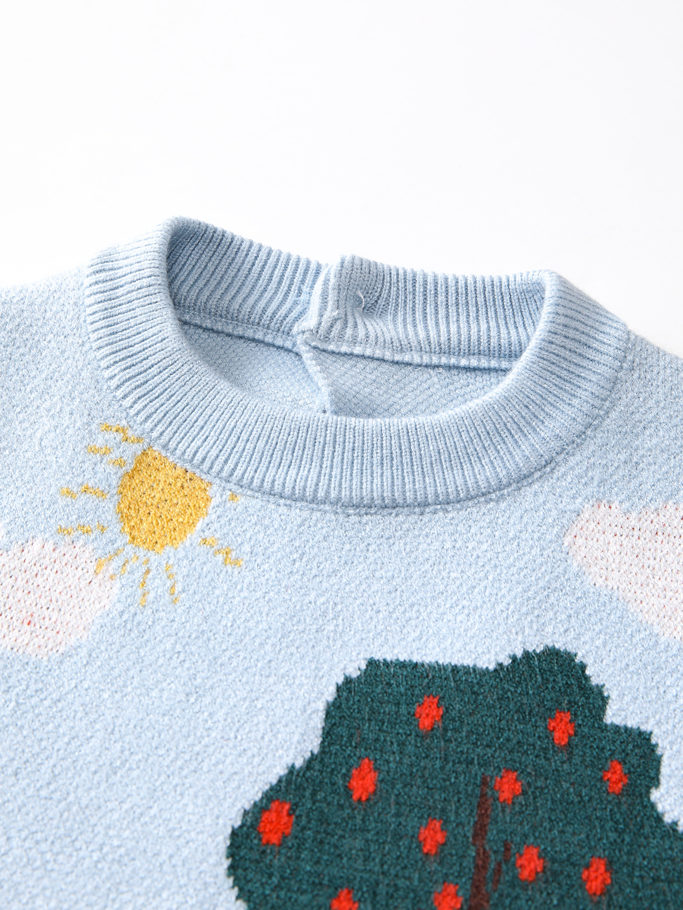 2025 국경 간 폭발 소년 소녀 아기 둥근 목 긴팔 스웨터 자연 만화 동물 자카드 풀오버 스웨터