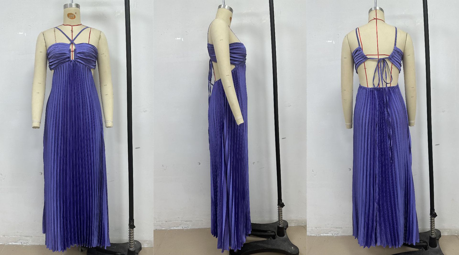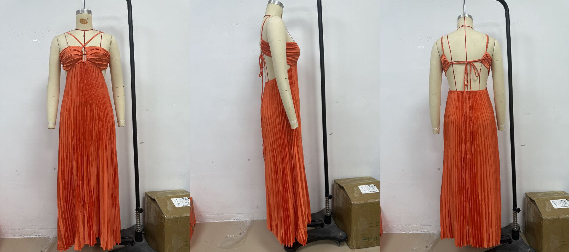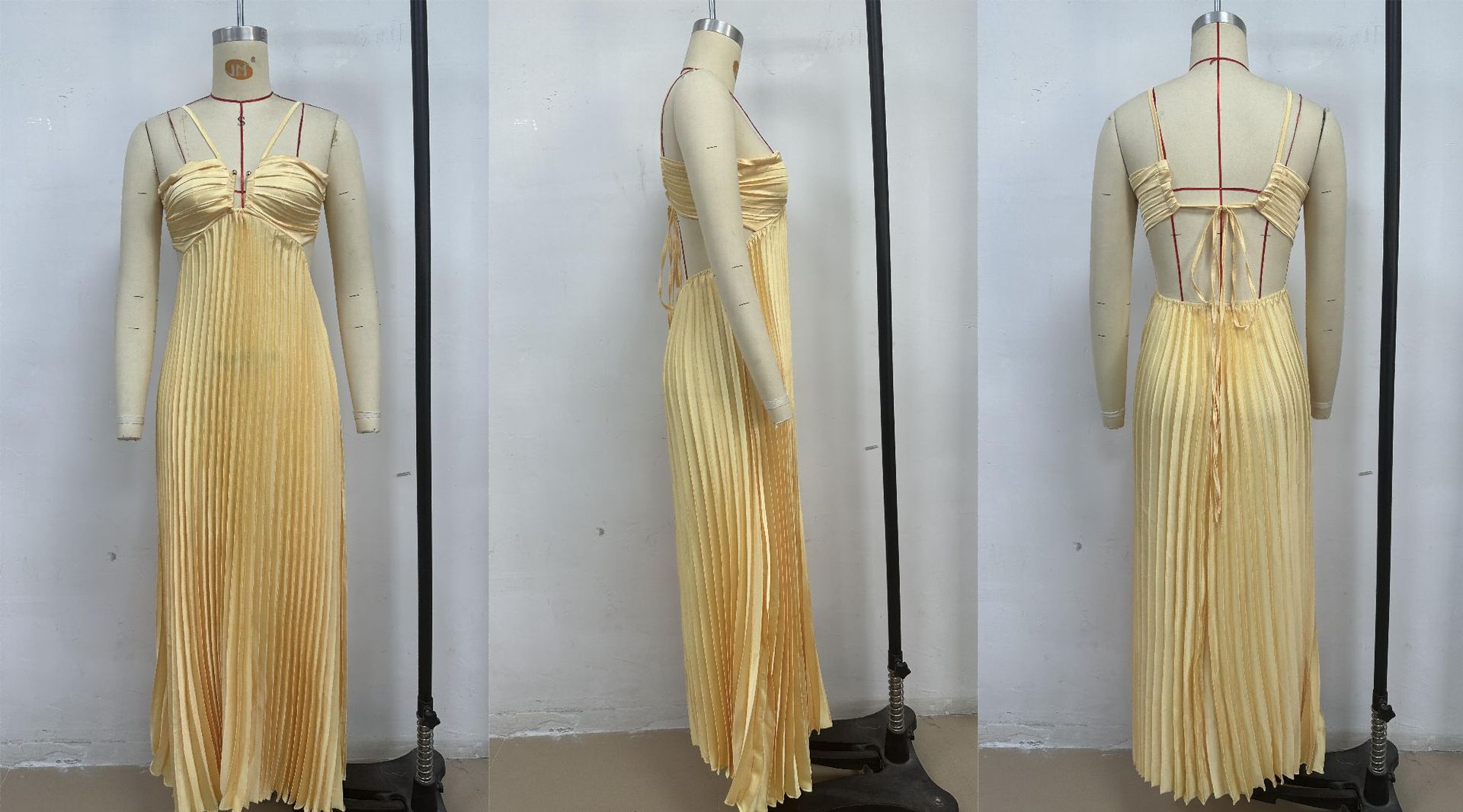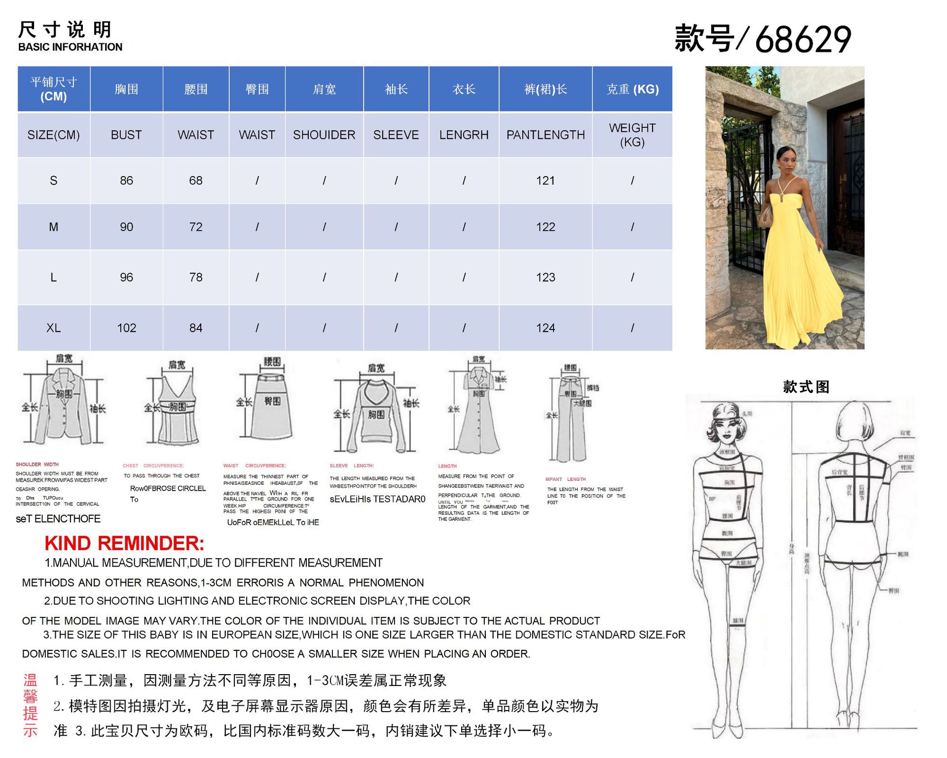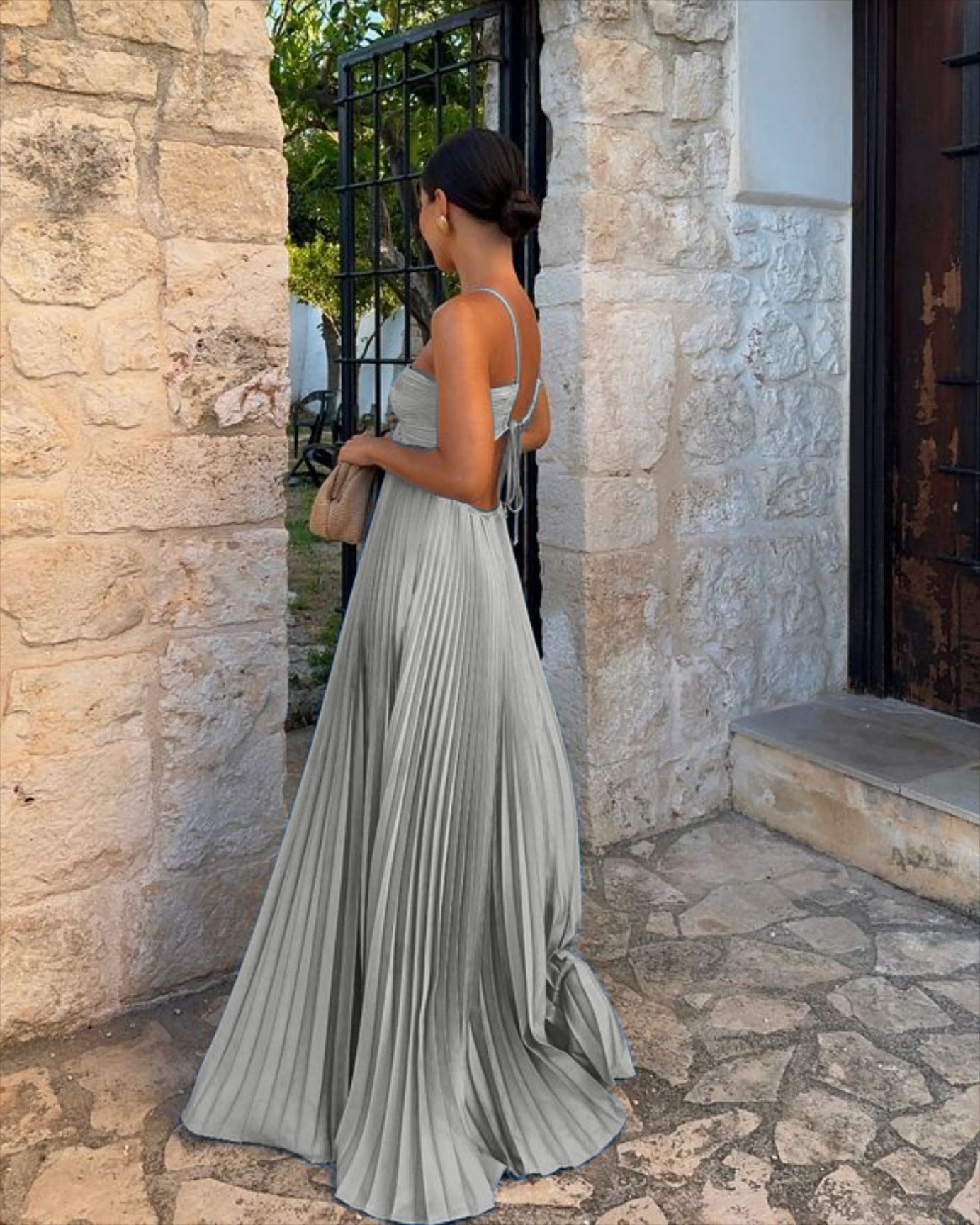 유럽과 미국의 국경 간 대외 무역 2025 여름 신상 솔리드 컬러 튜브 탑 플리츠 민소매 서스펜더 드레스-68629스토어 가기