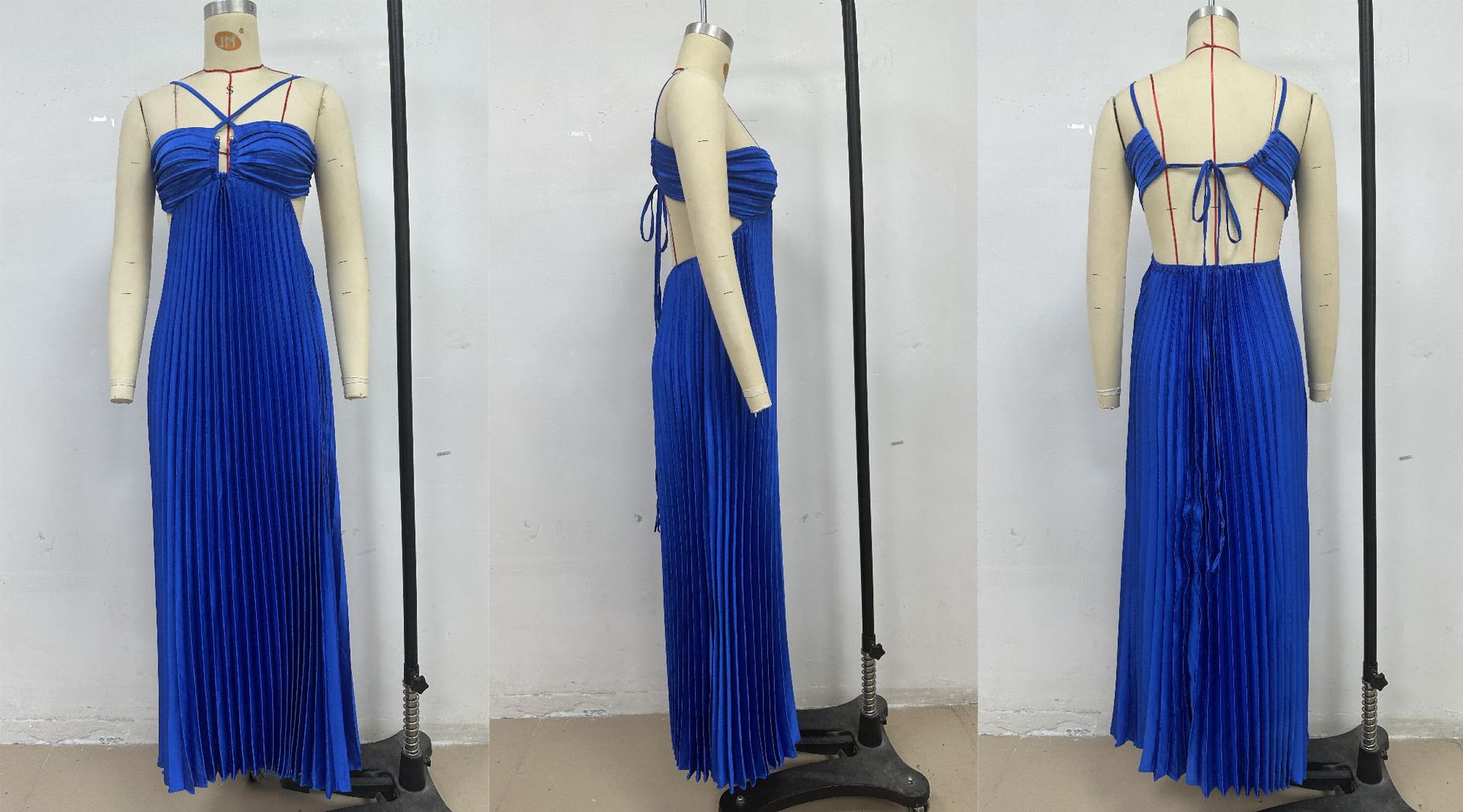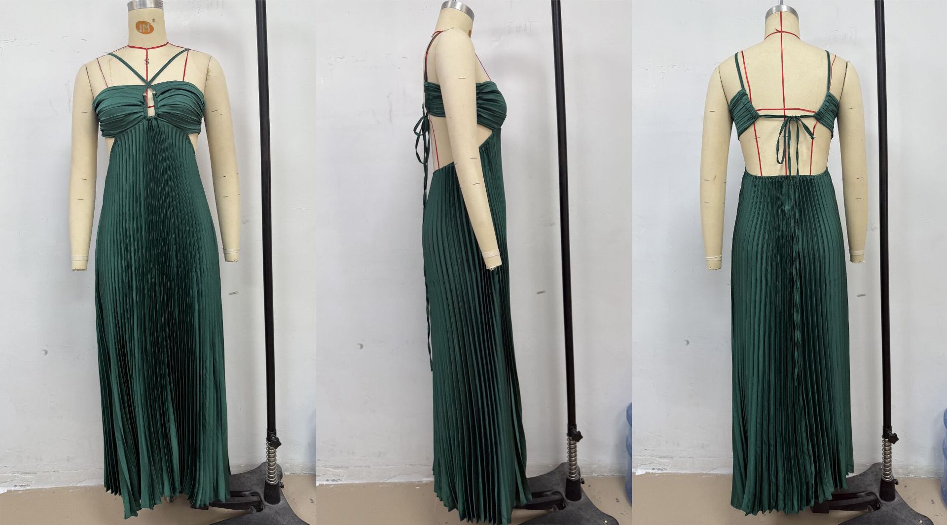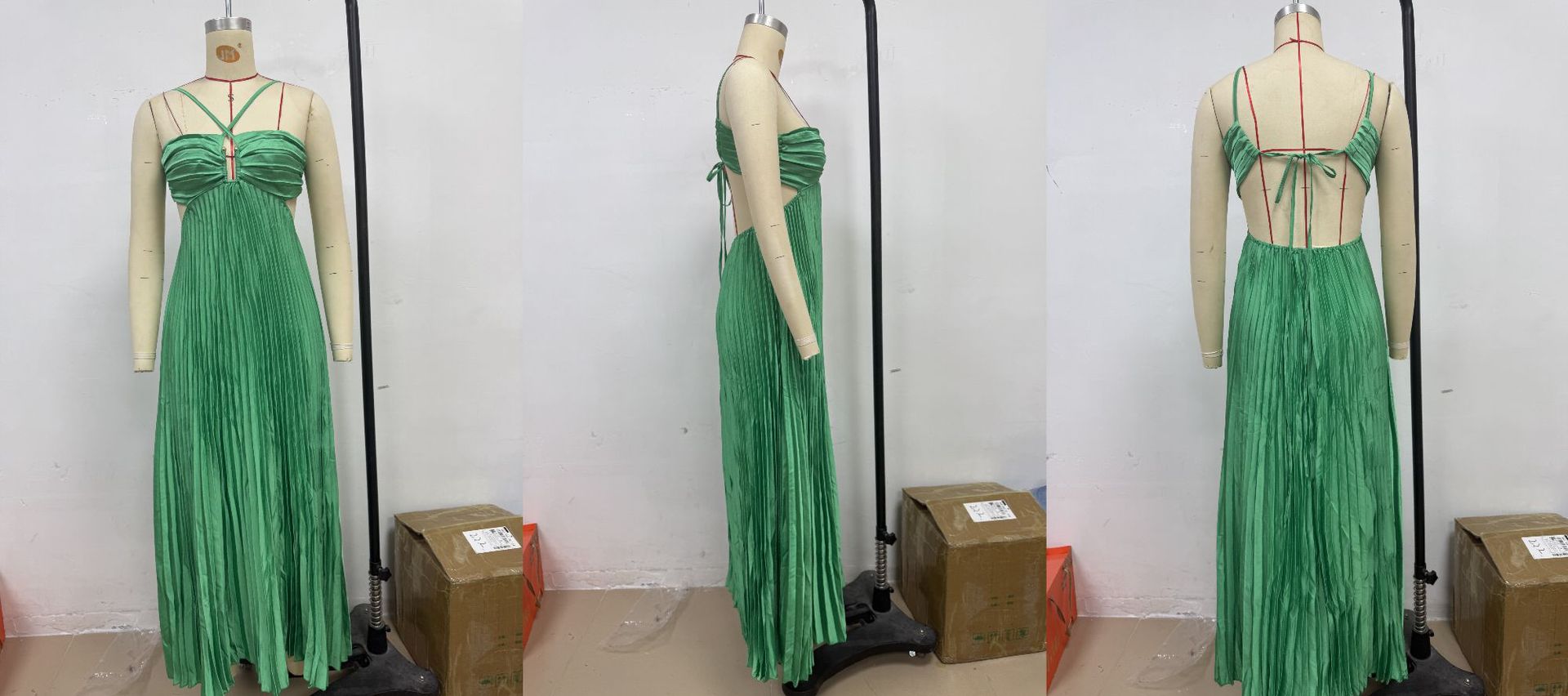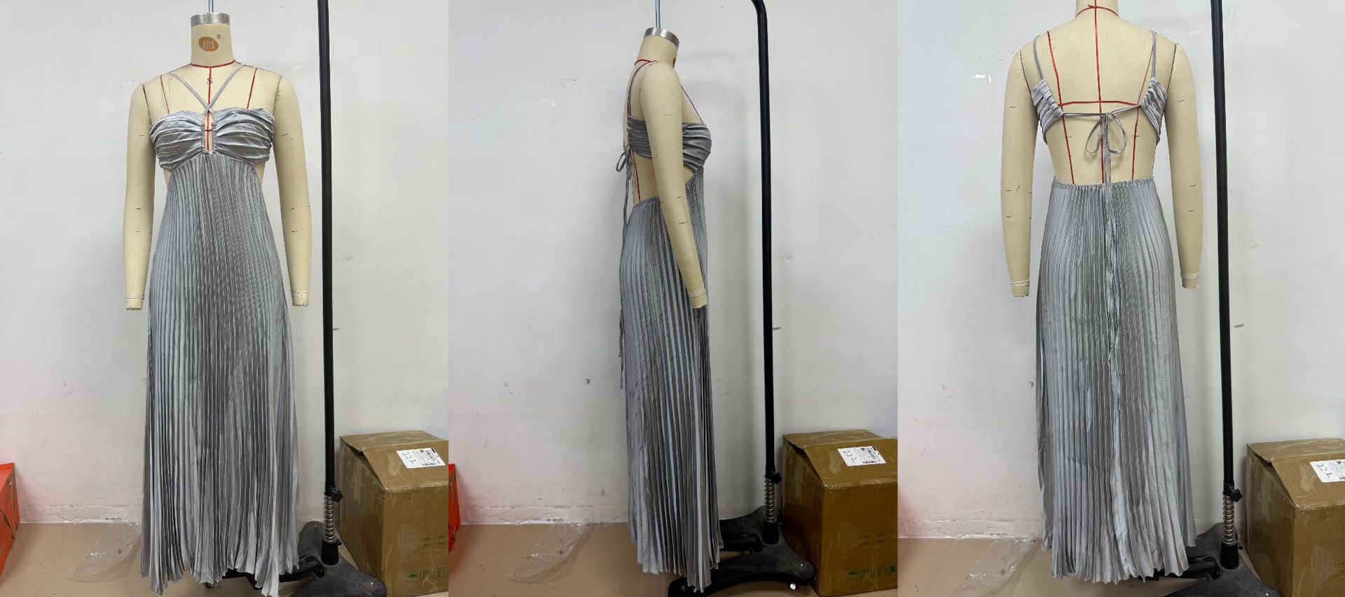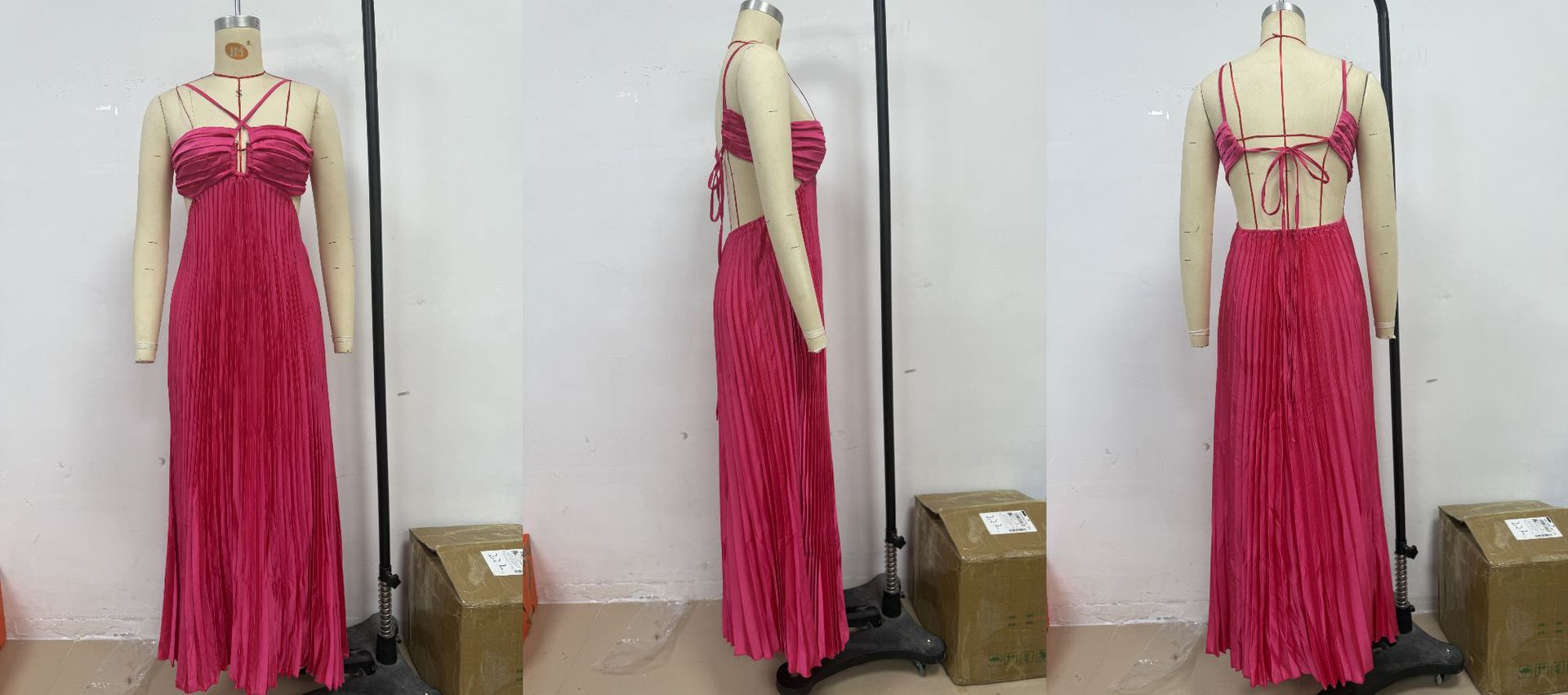 유럽과 미국의 국경 간 대외 무역 2025 여름 신상 솔리드 컬러 튜브 탑 플리츠 민소매 서스펜더 드레스-68629스토어 가기