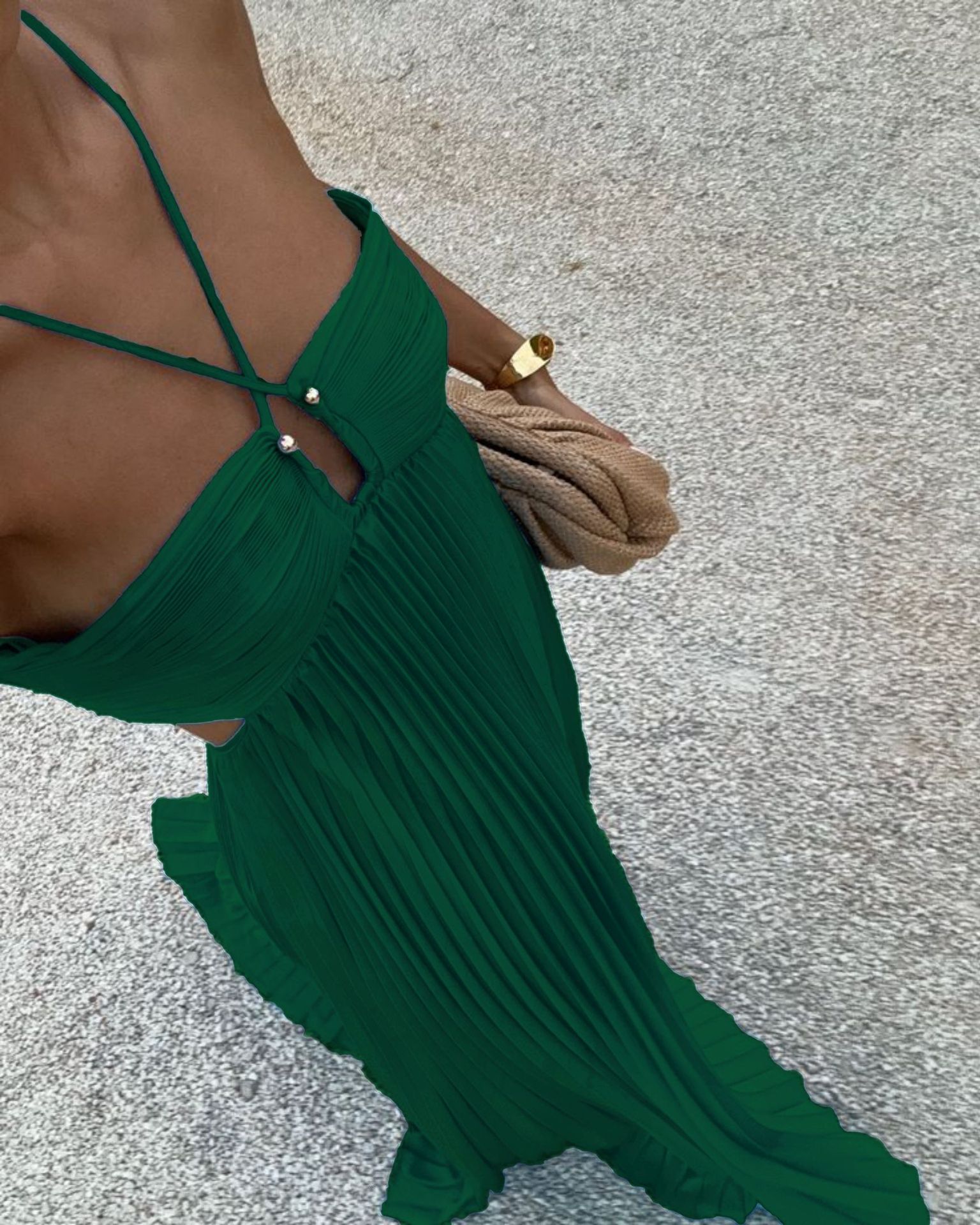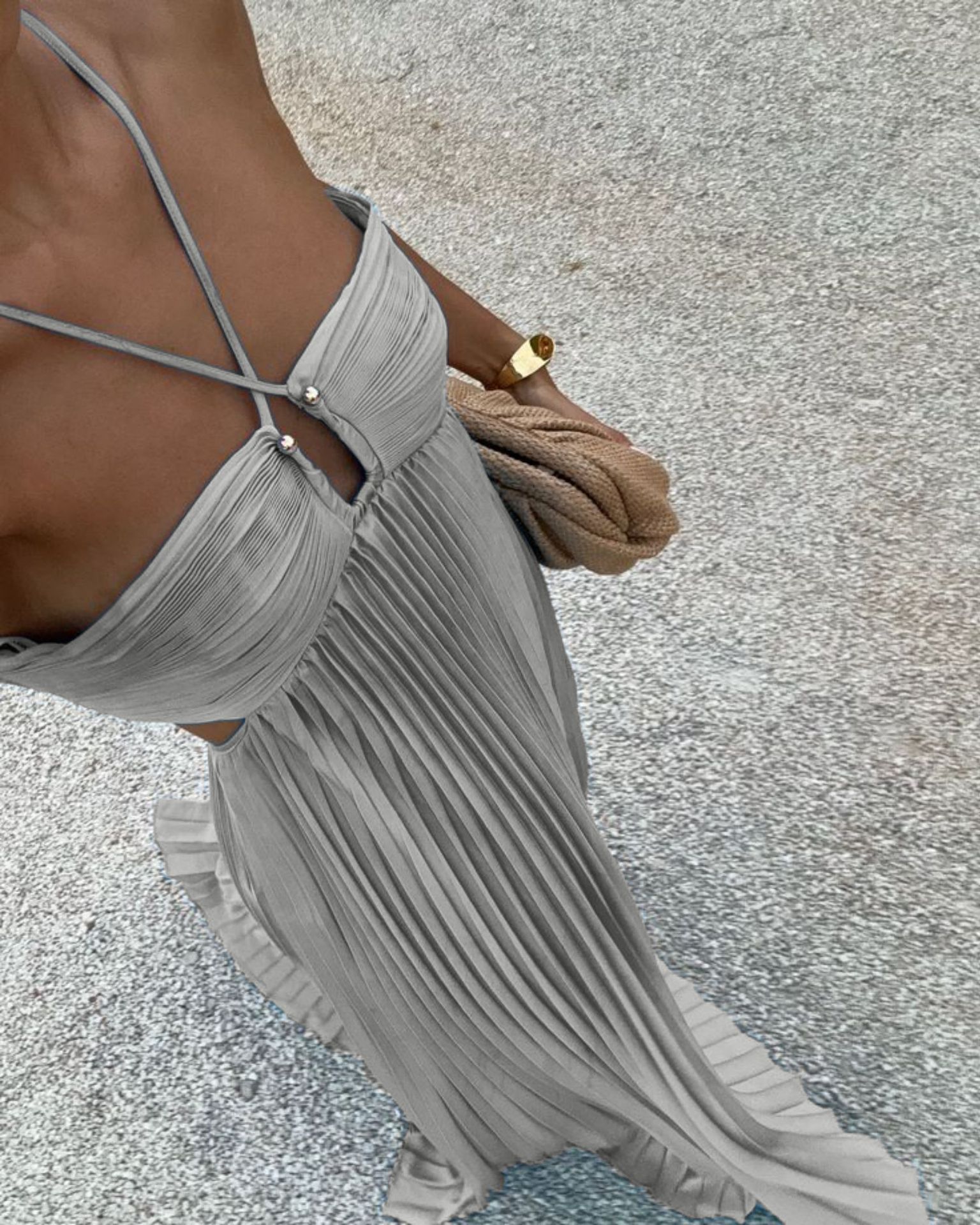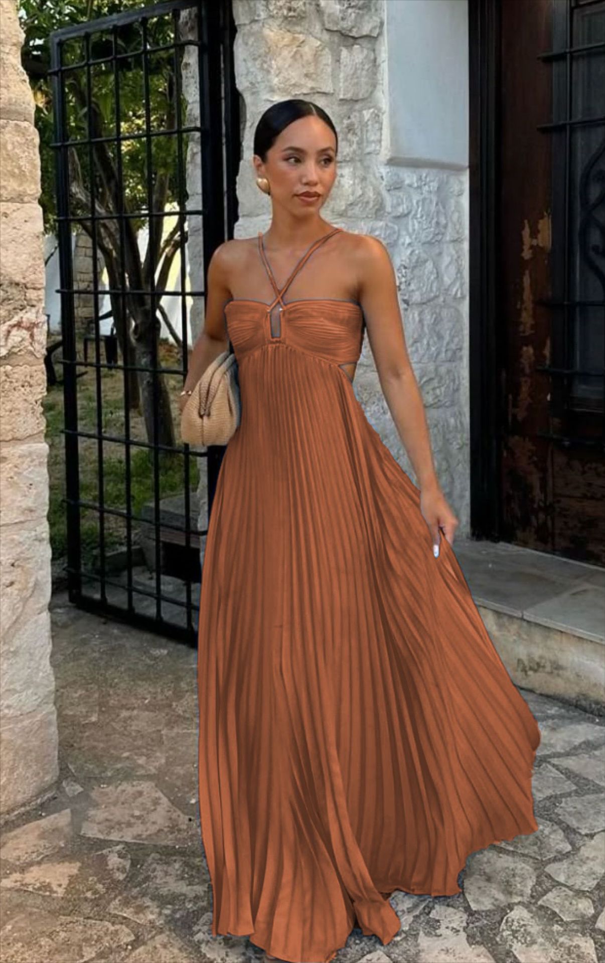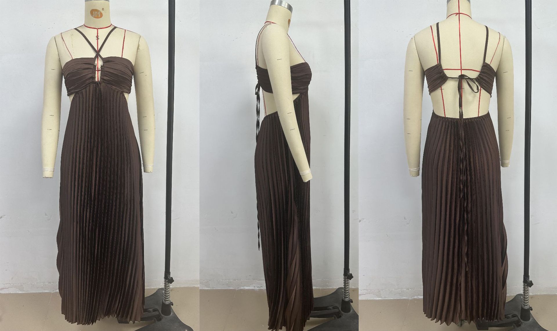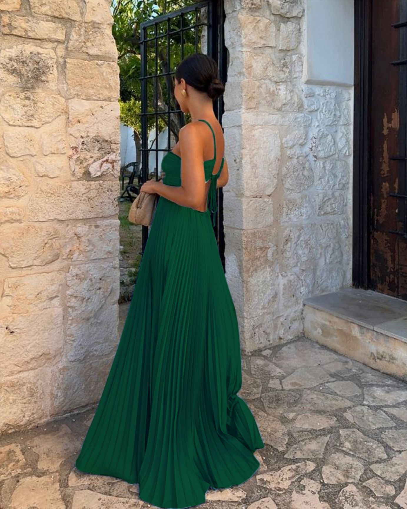 유럽과 미국의 국경 간 대외 무역 2025 여름 신상 솔리드 컬러 튜브 탑 플리츠 민소매 서스펜더 드레스-68629스토어 가기