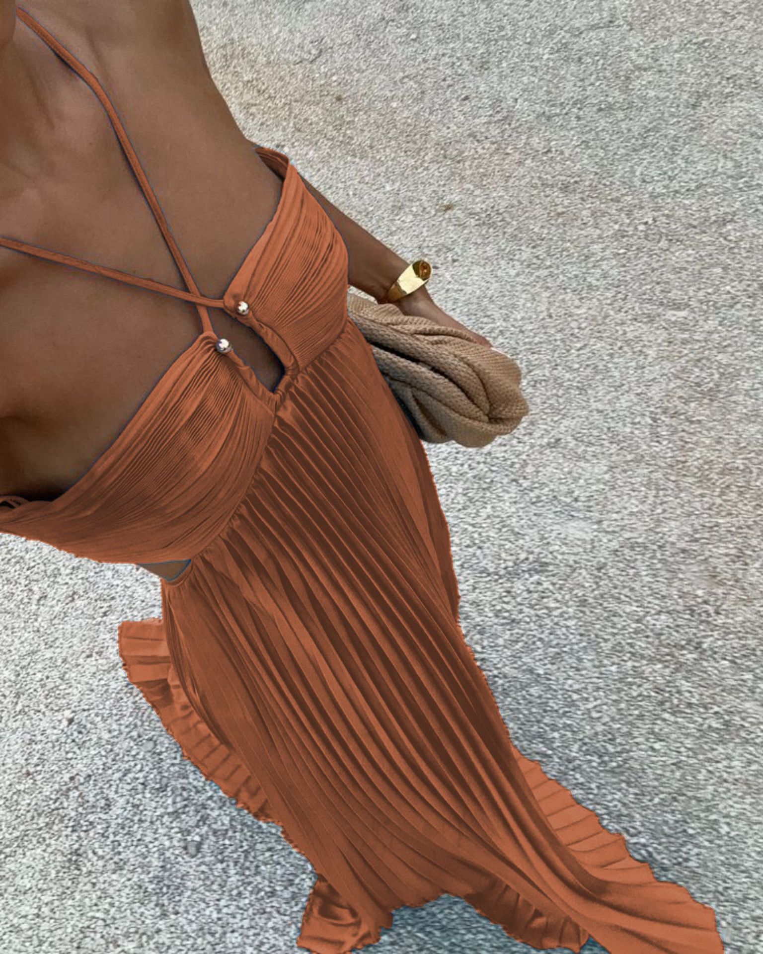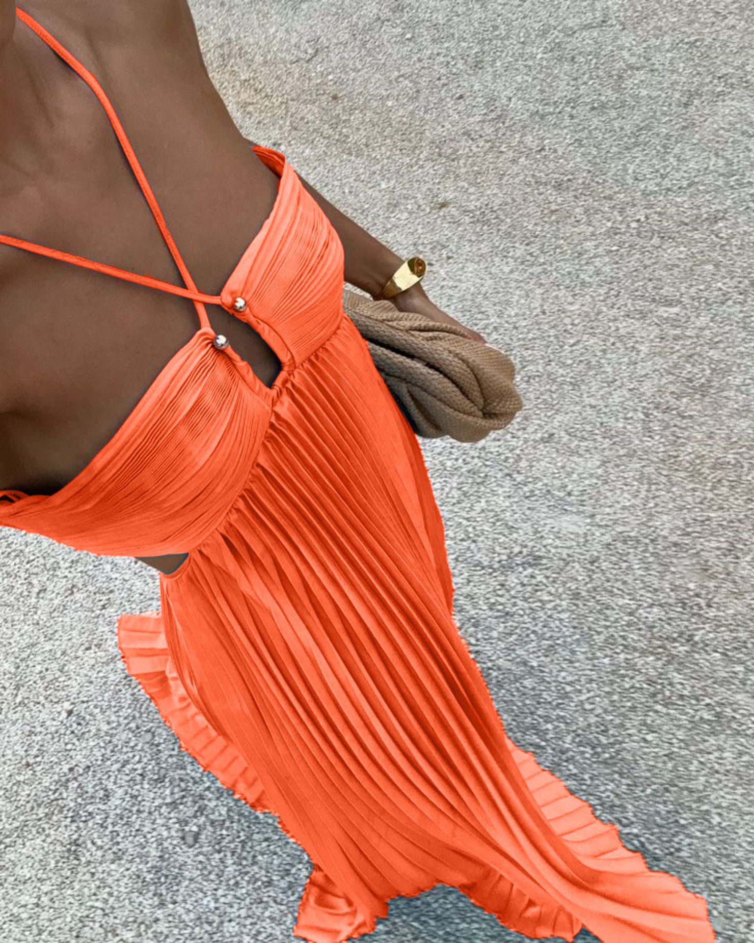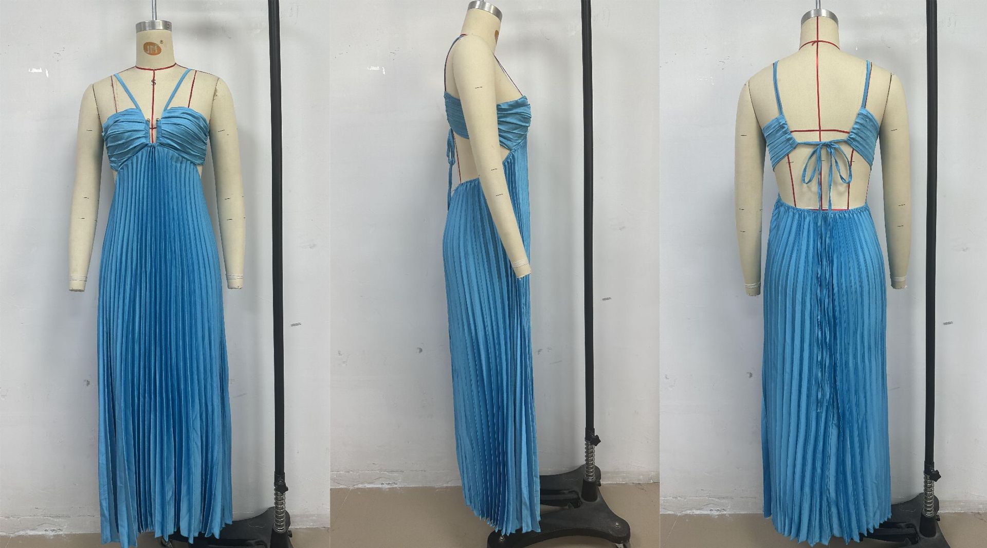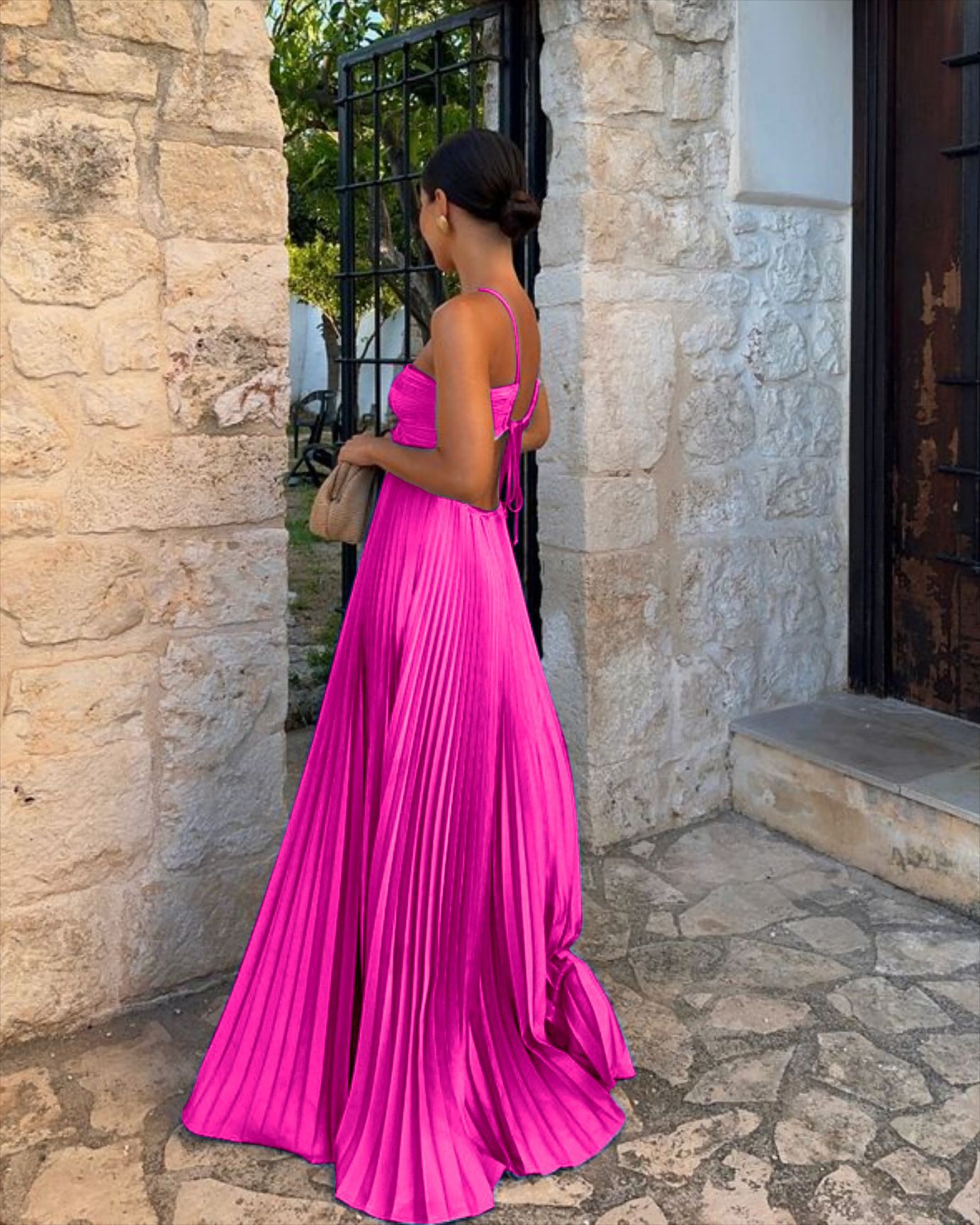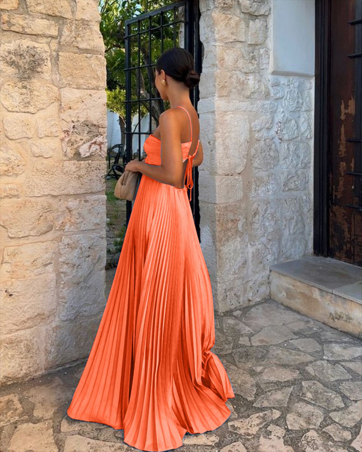 유럽과 미국의 국경 간 대외 무역 2025 여름 신상 솔리드 컬러 튜브 탑 플리츠 민소매 서스펜더 드레스-68629