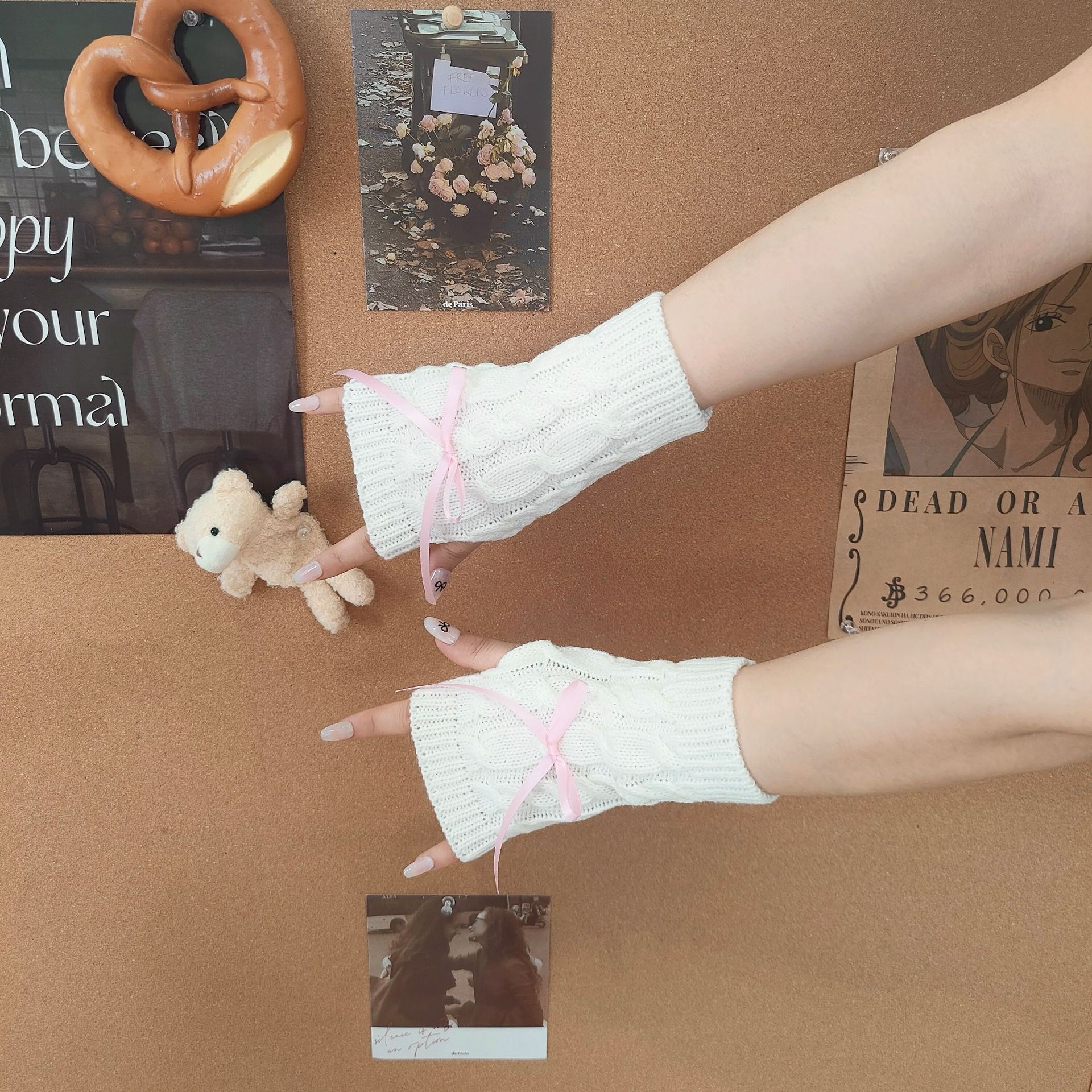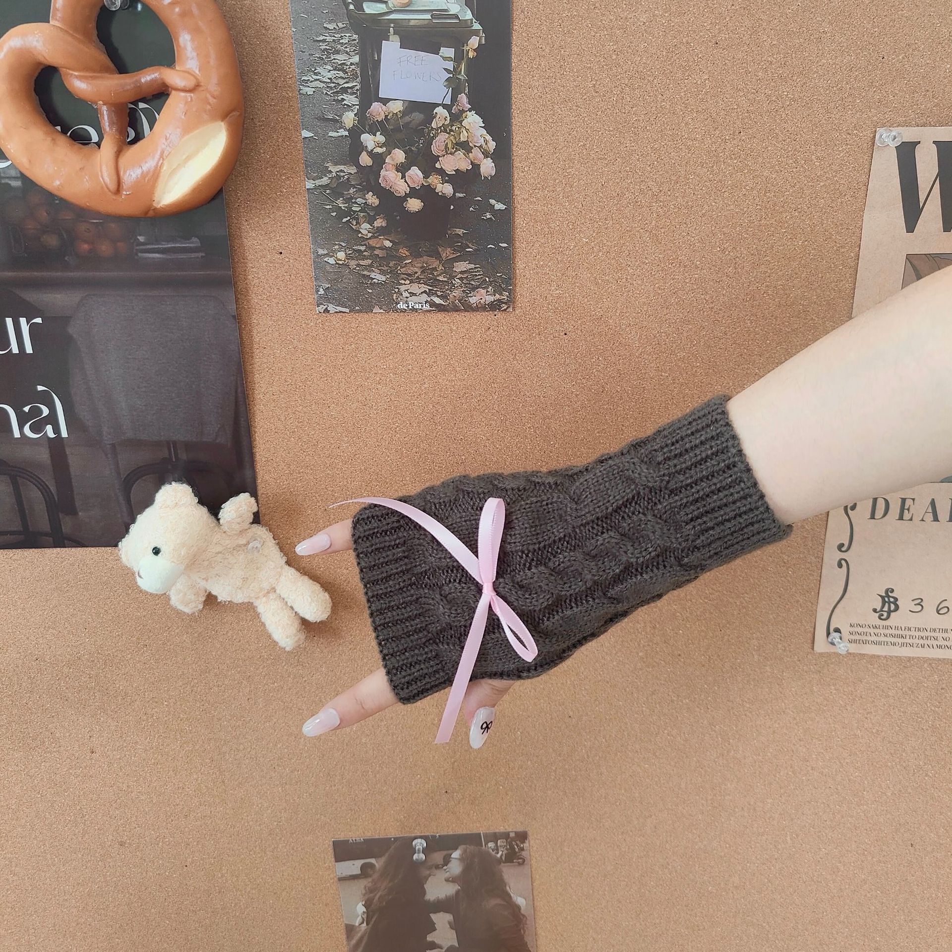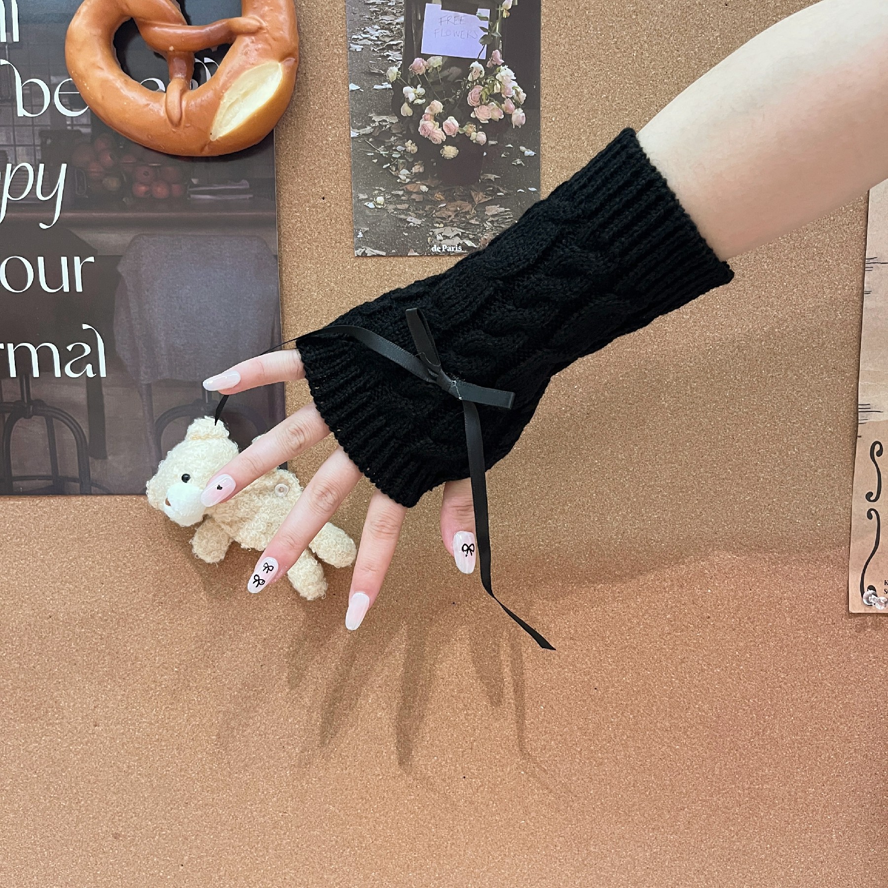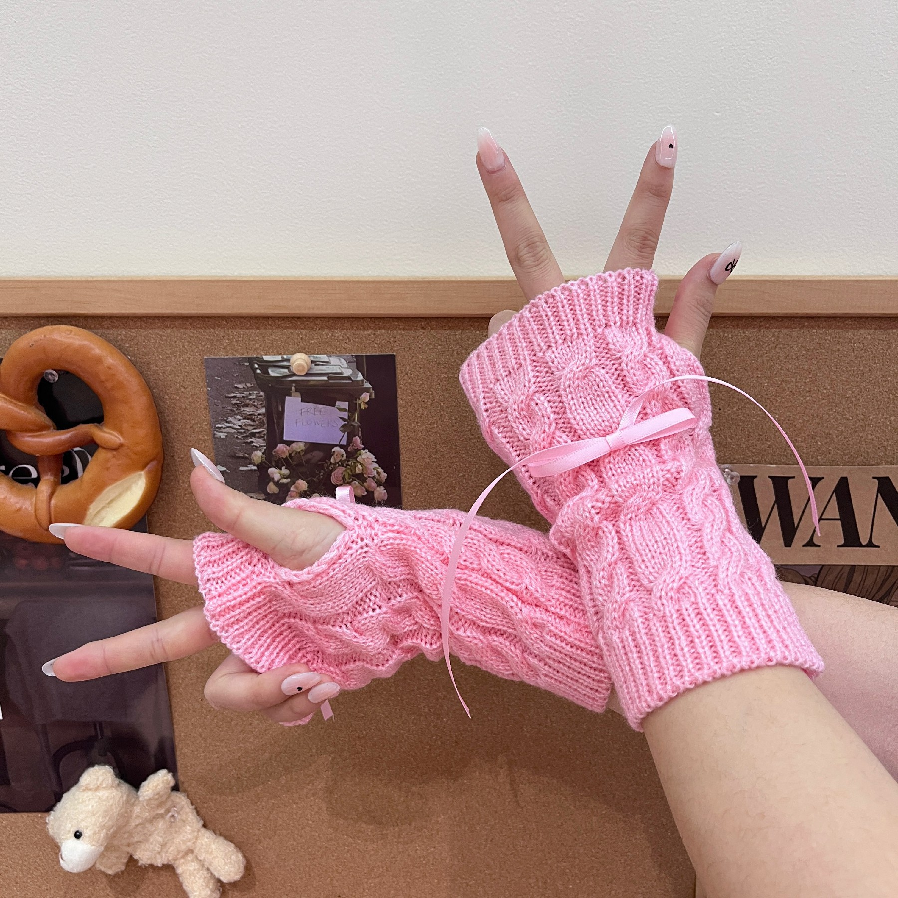 가을과 겨울 따뜻한 반 손가락 장갑 여성의 달콤한 귀여운 활 학생 울 터치 스크린 손가락 슬리브 인 터치 스크린