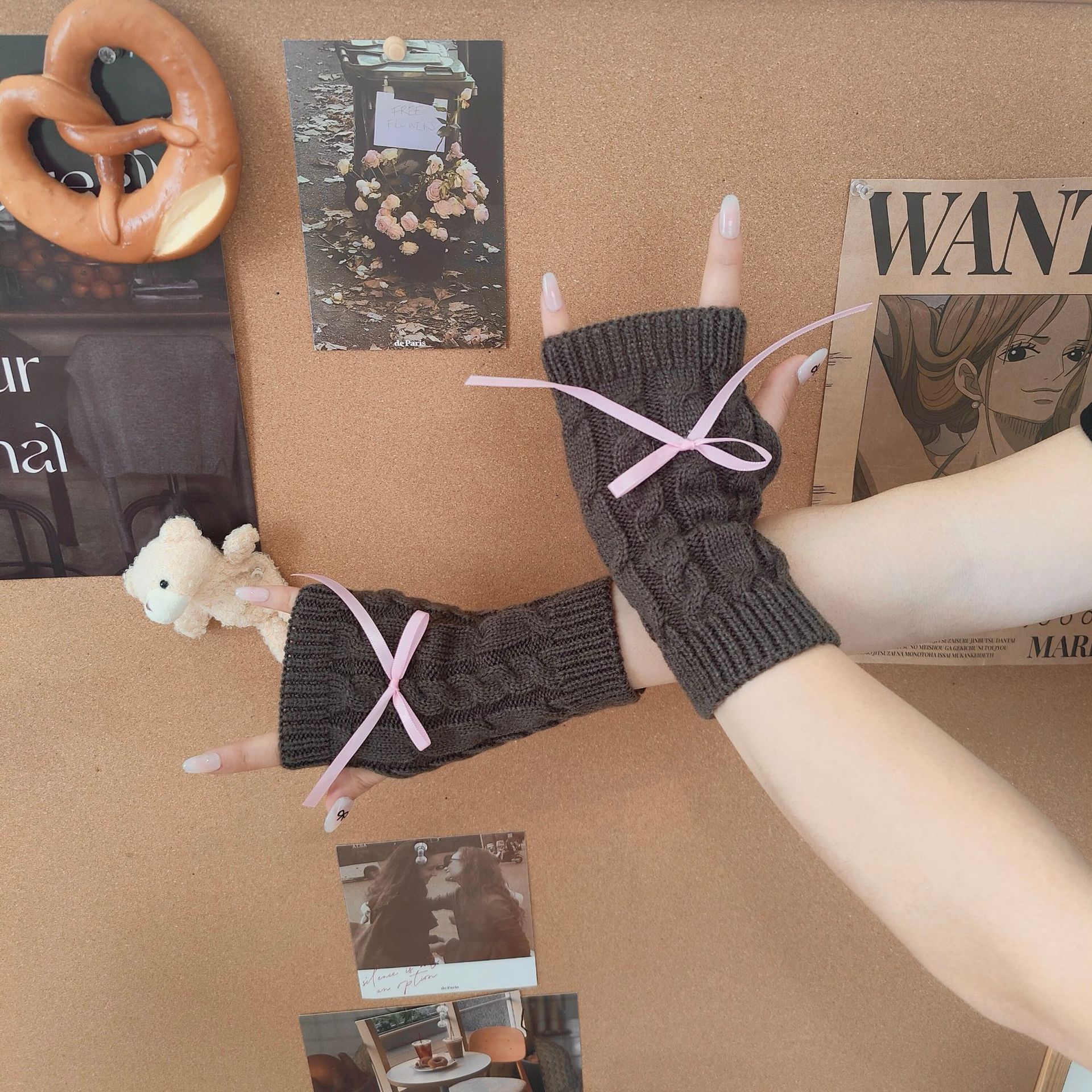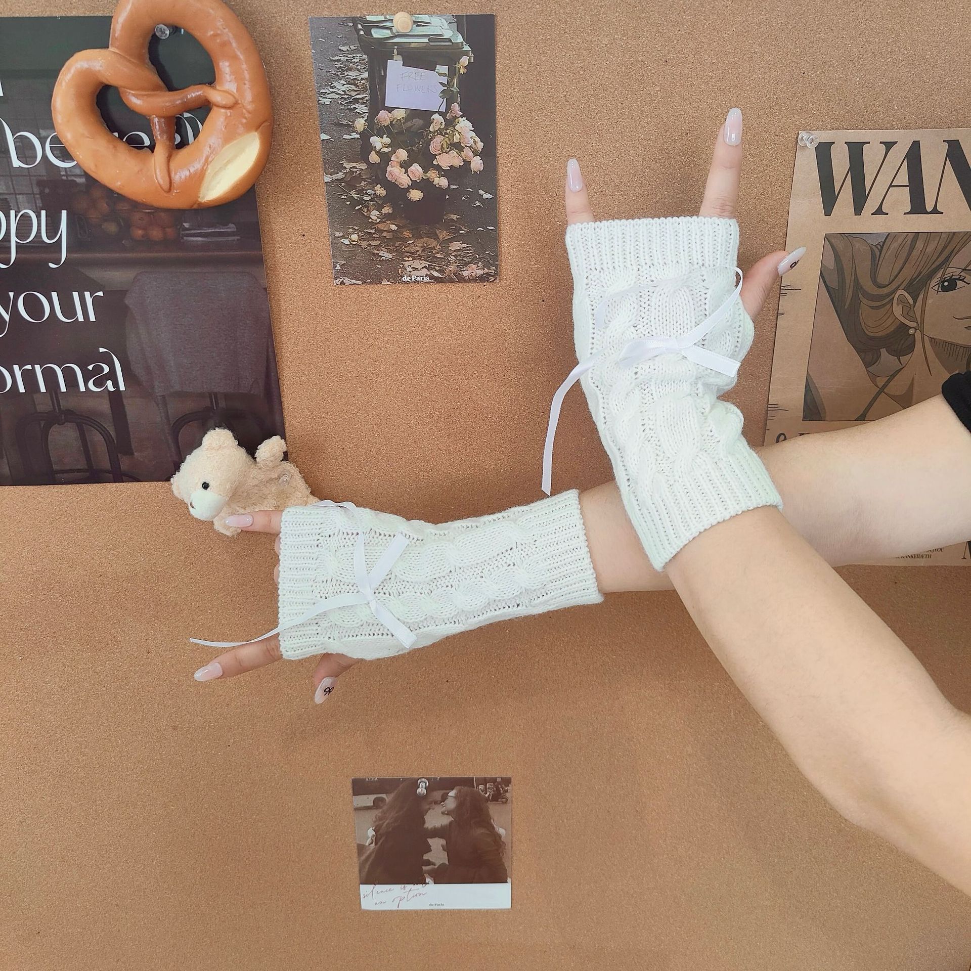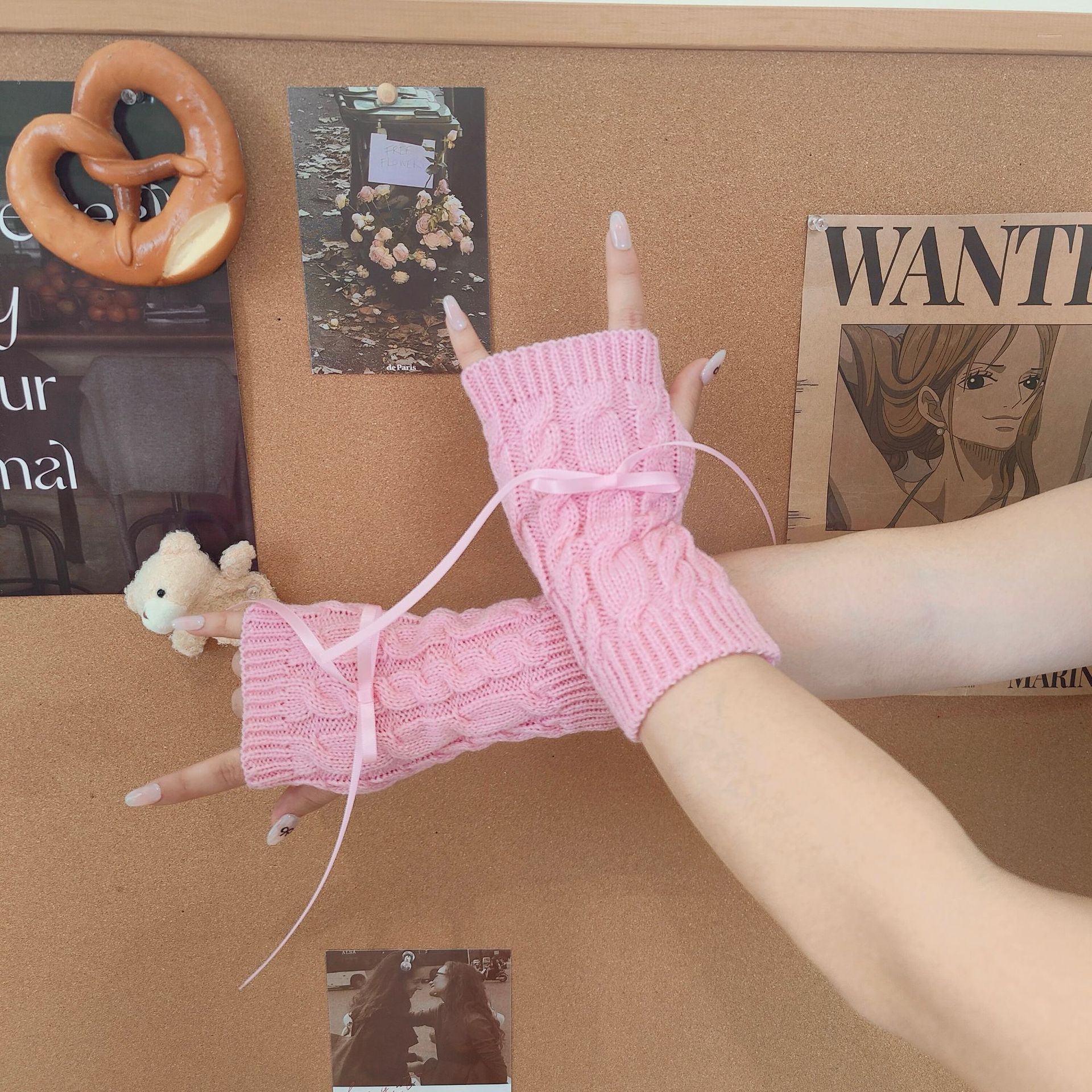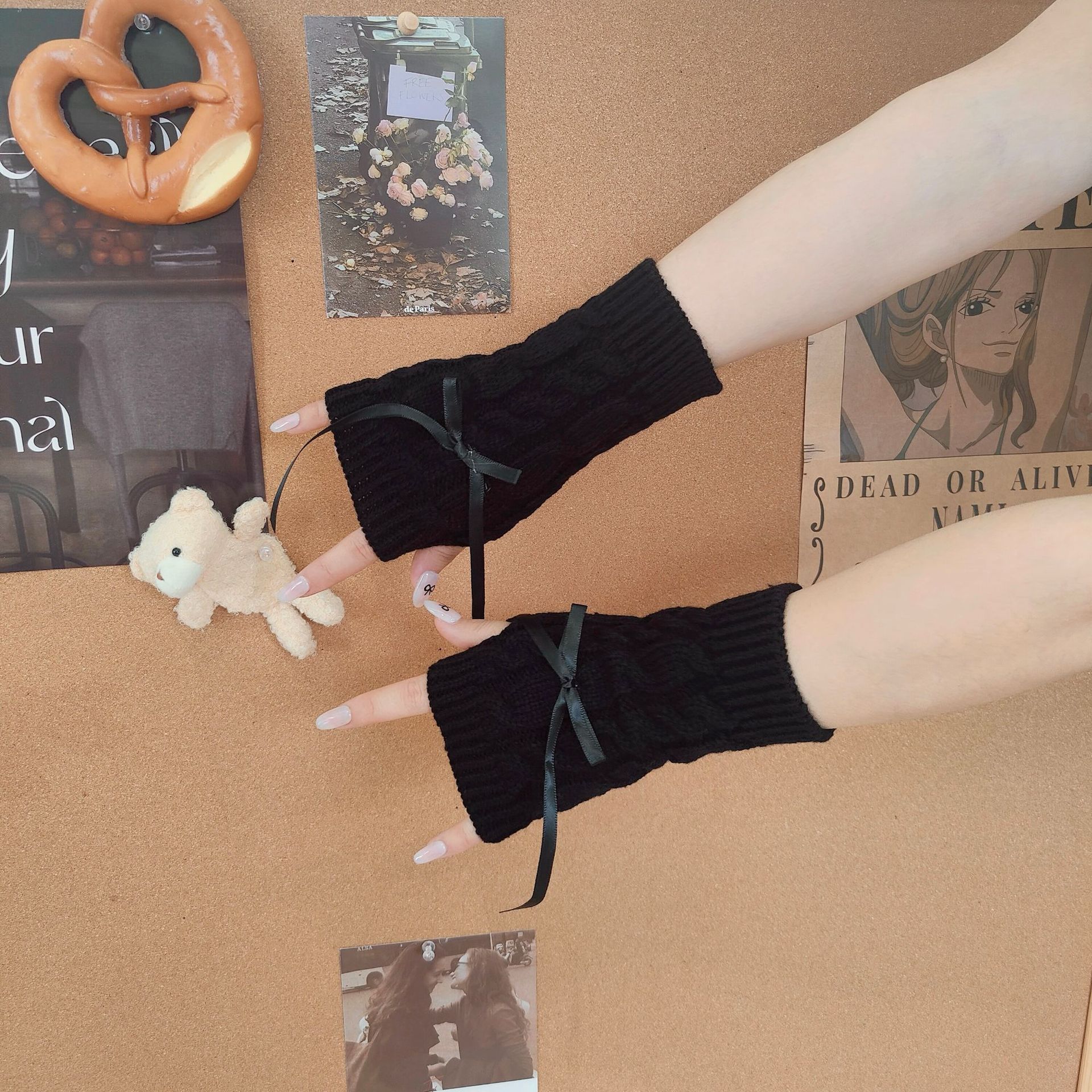 가을과 겨울 따뜻한 반 손가락 장갑 여성의 달콤한 귀여운 활 학생 울 터치 스크린 손가락 슬리브 인 터치 스크린