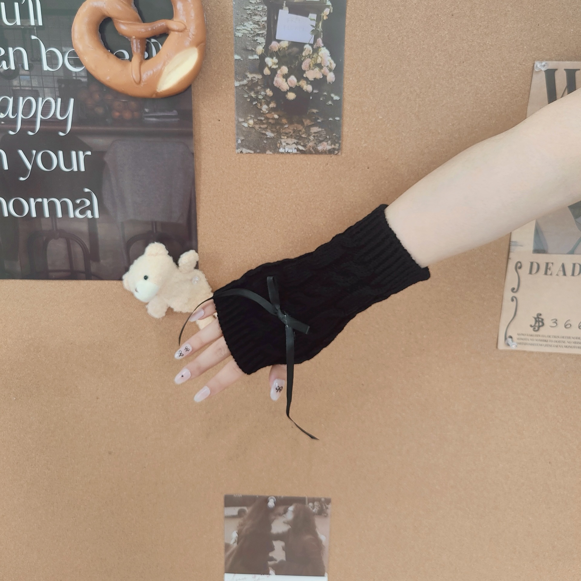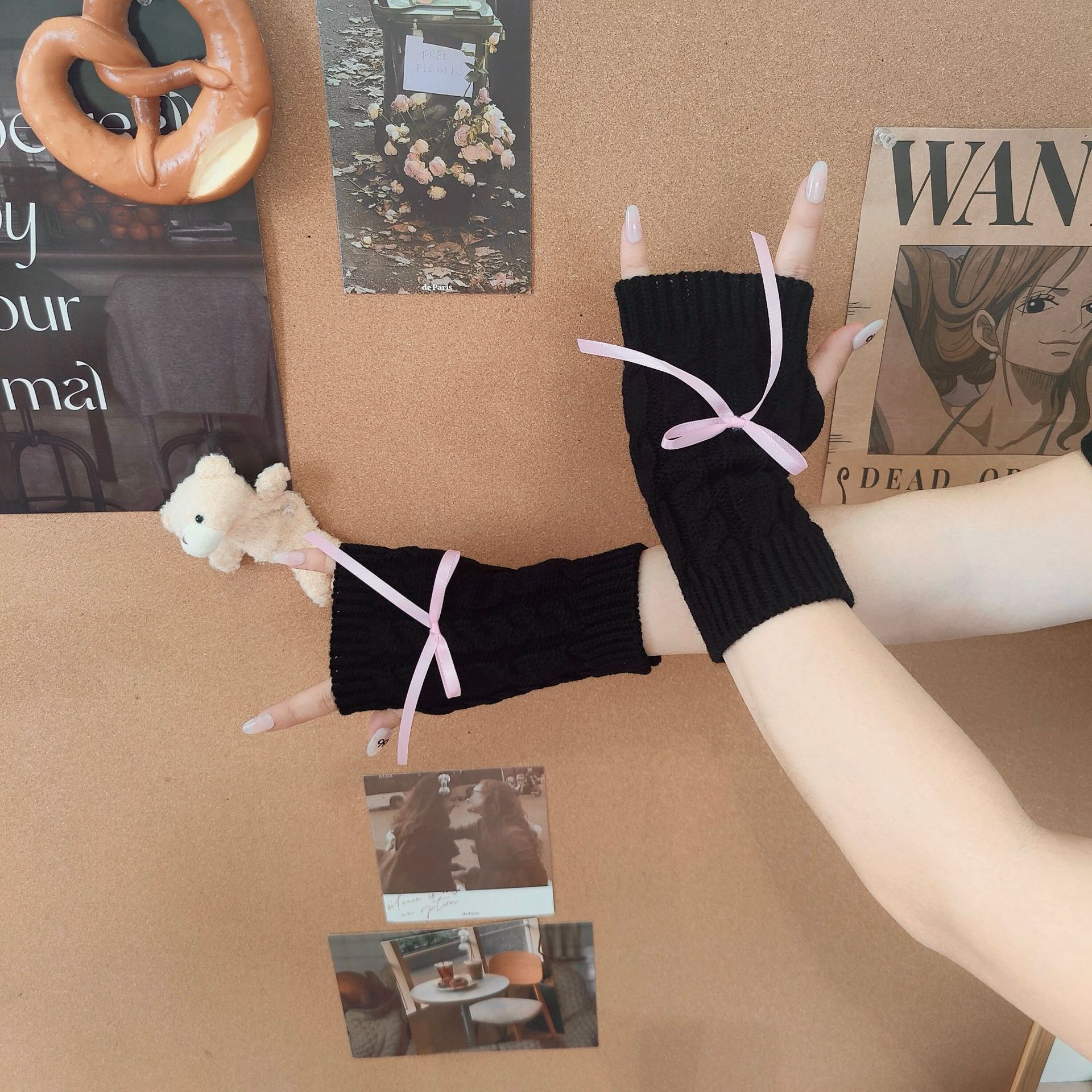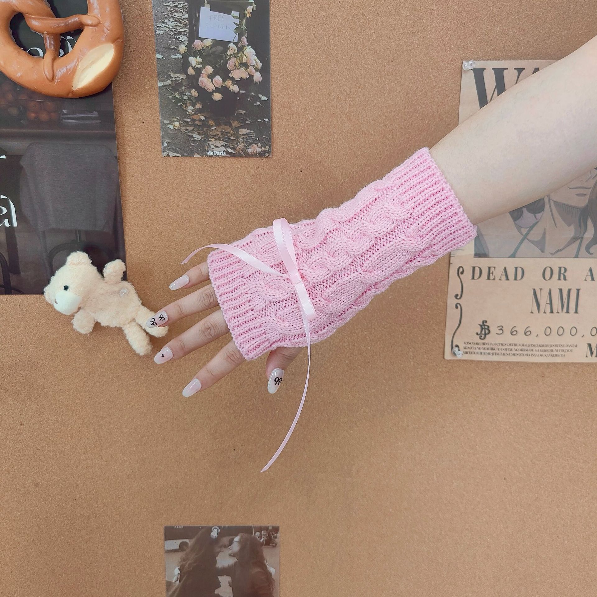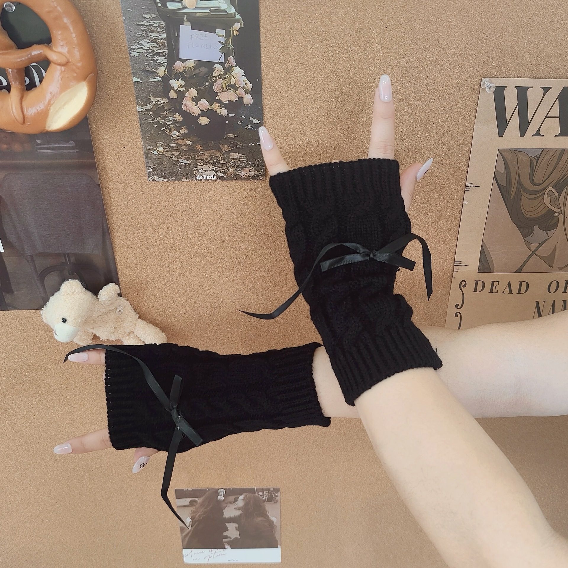 가을과 겨울 따뜻한 반 손가락 장갑 여성의 달콤한 귀여운 활 학생 울 터치 스크린 손가락 슬리브 인 터치 스크린