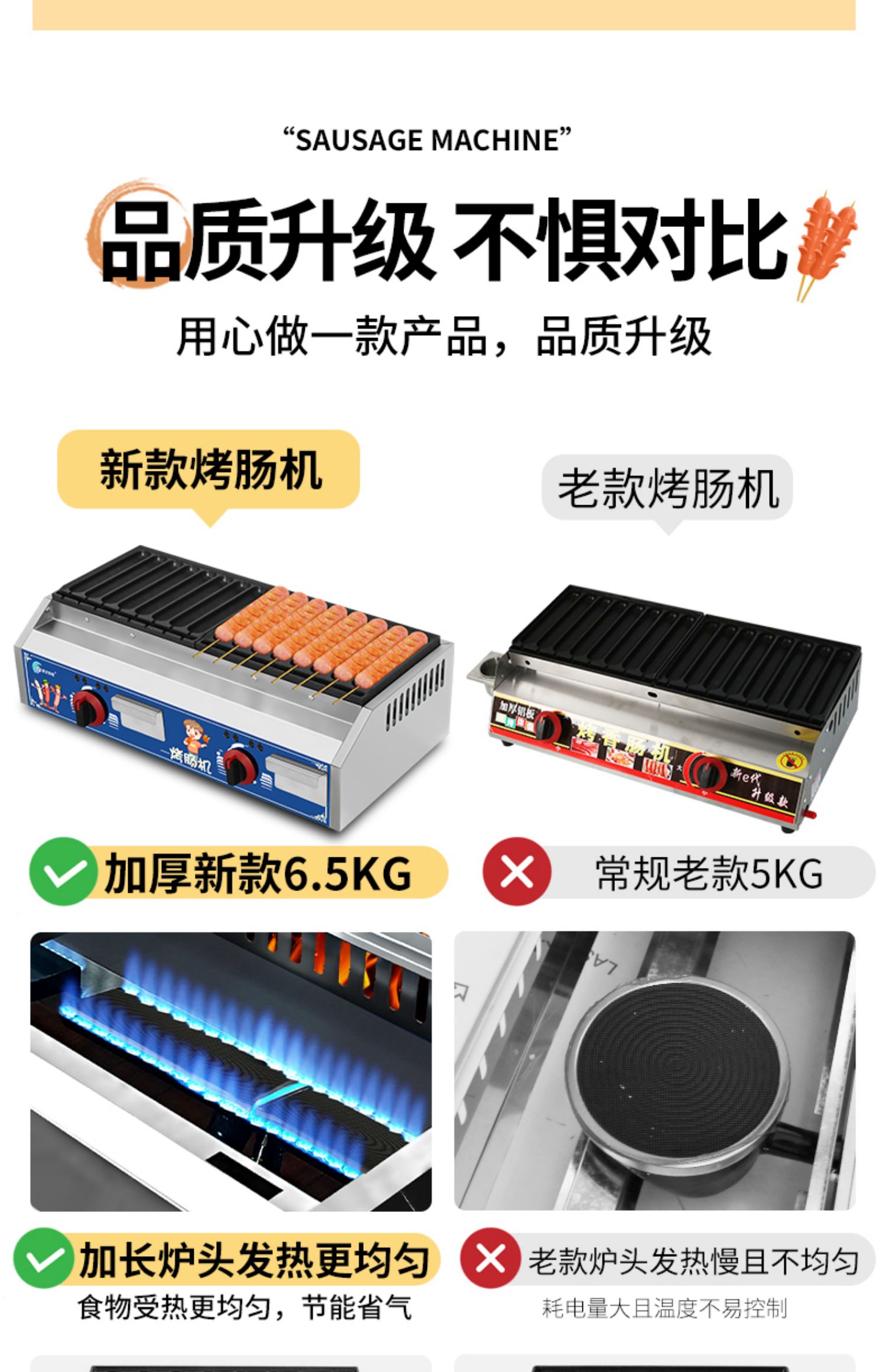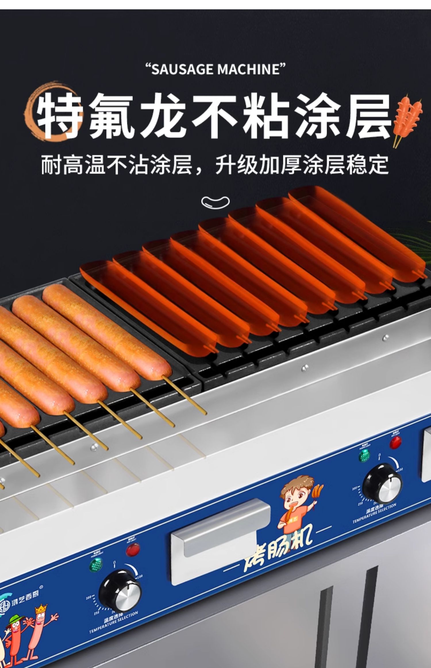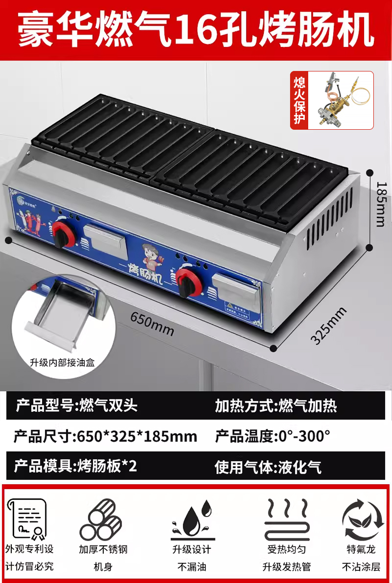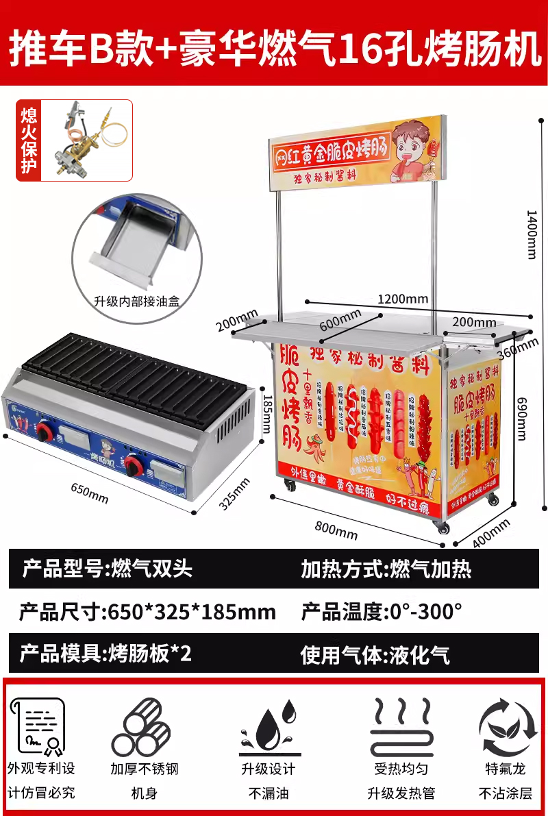 • 업그레이드된 [접이식 A형 카트] 가스 16구 소시지 그릴|화염정지 보호