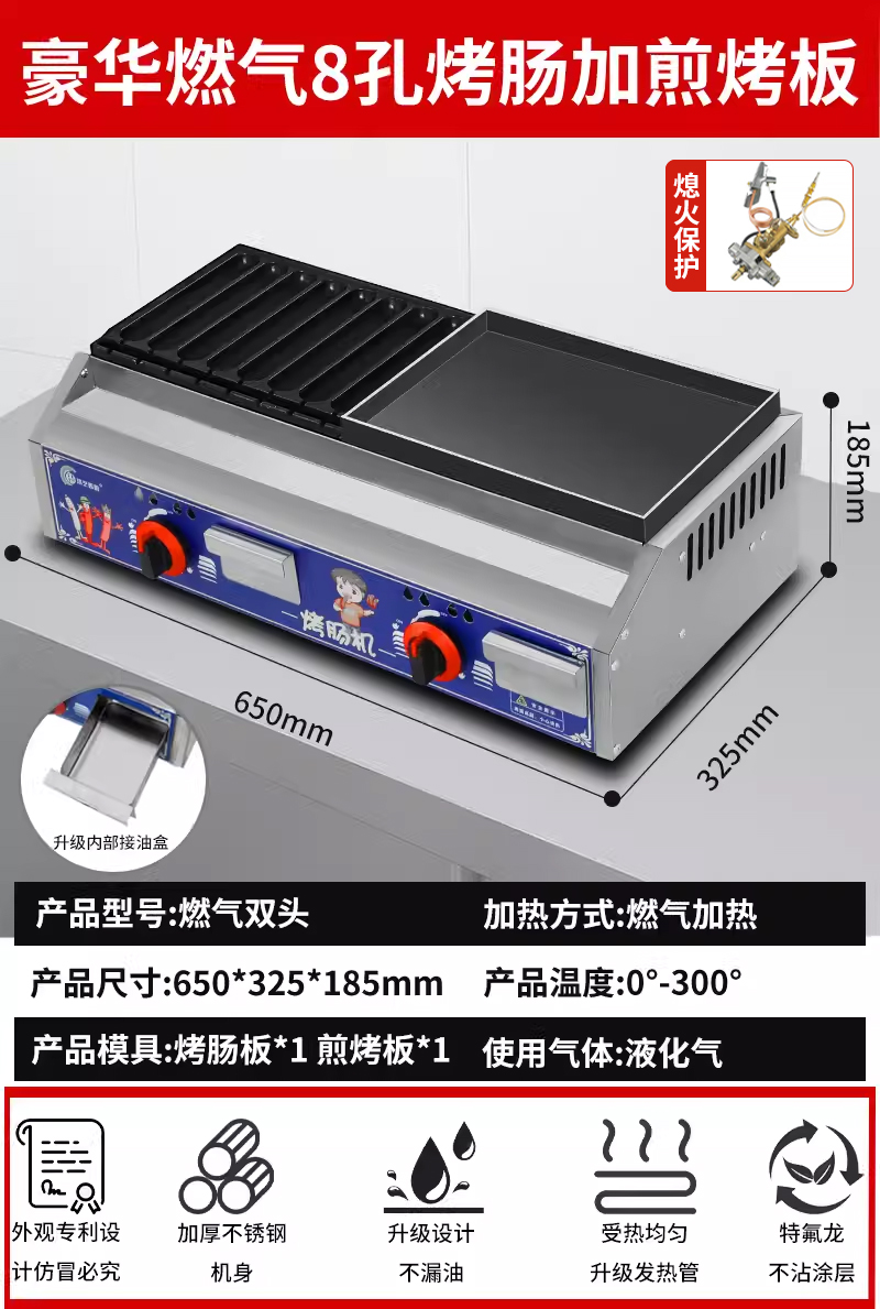 • 듀얼 컨트롤 [가스 모델 > 8구 소시지 그릴] + 철판구이|화염정지 보호