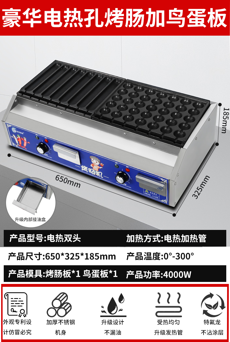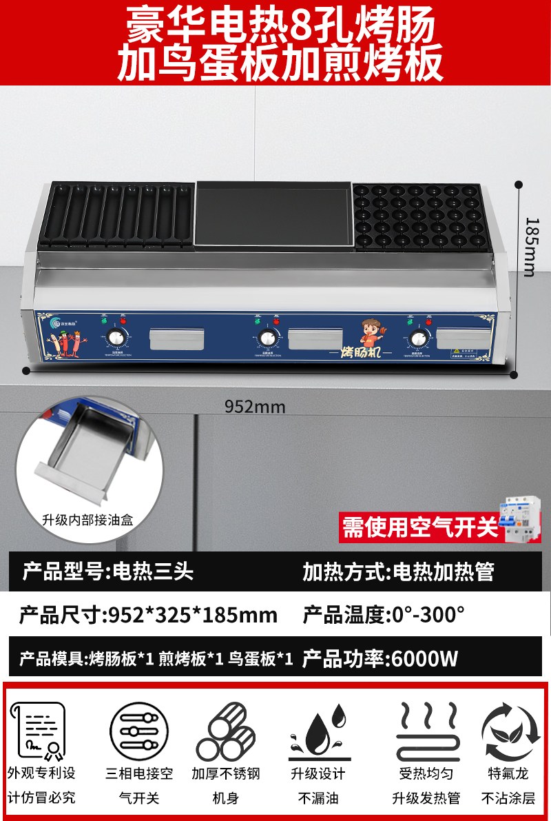 • 3가지 컨트롤(플러그인 모델) 8구 소시지 그릴 + 새알판 + 철판구이