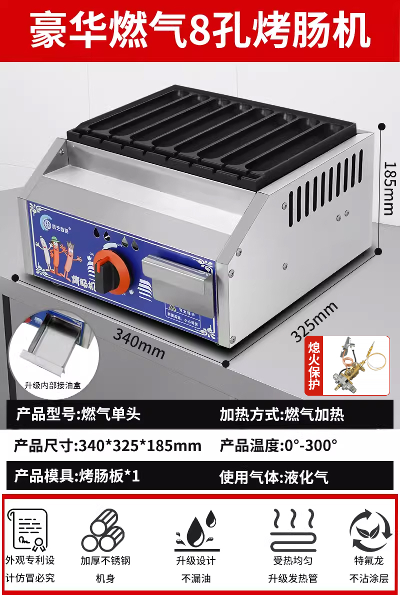 • 업그레이드된 [접이식 A형 유모차] 가스 8구 소시지 그릴 + 새알판|화염정지 보호