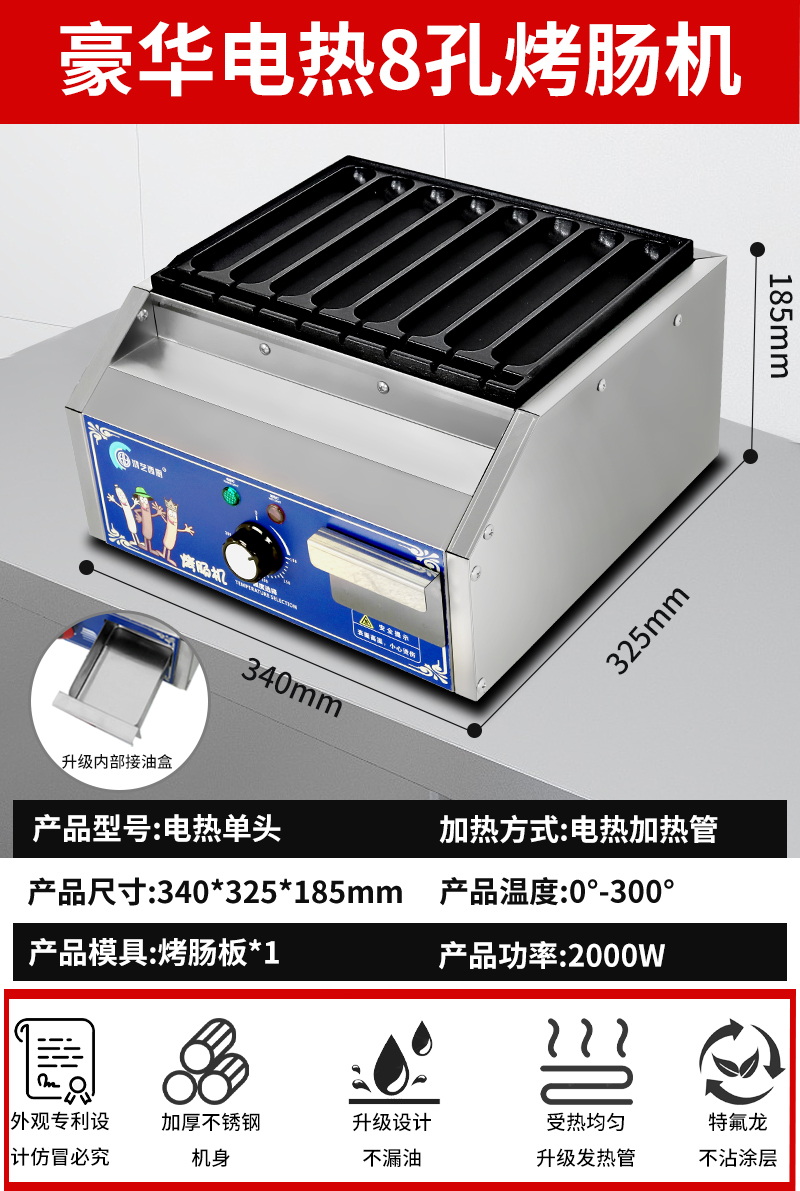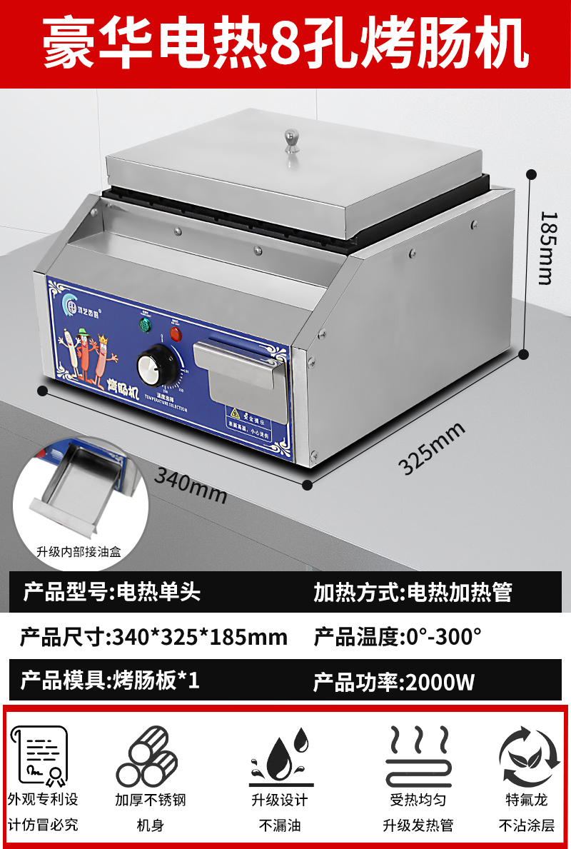 • 단일 제어(플러그인 모델) 8홀 소시지 그릴 + 뚜껑