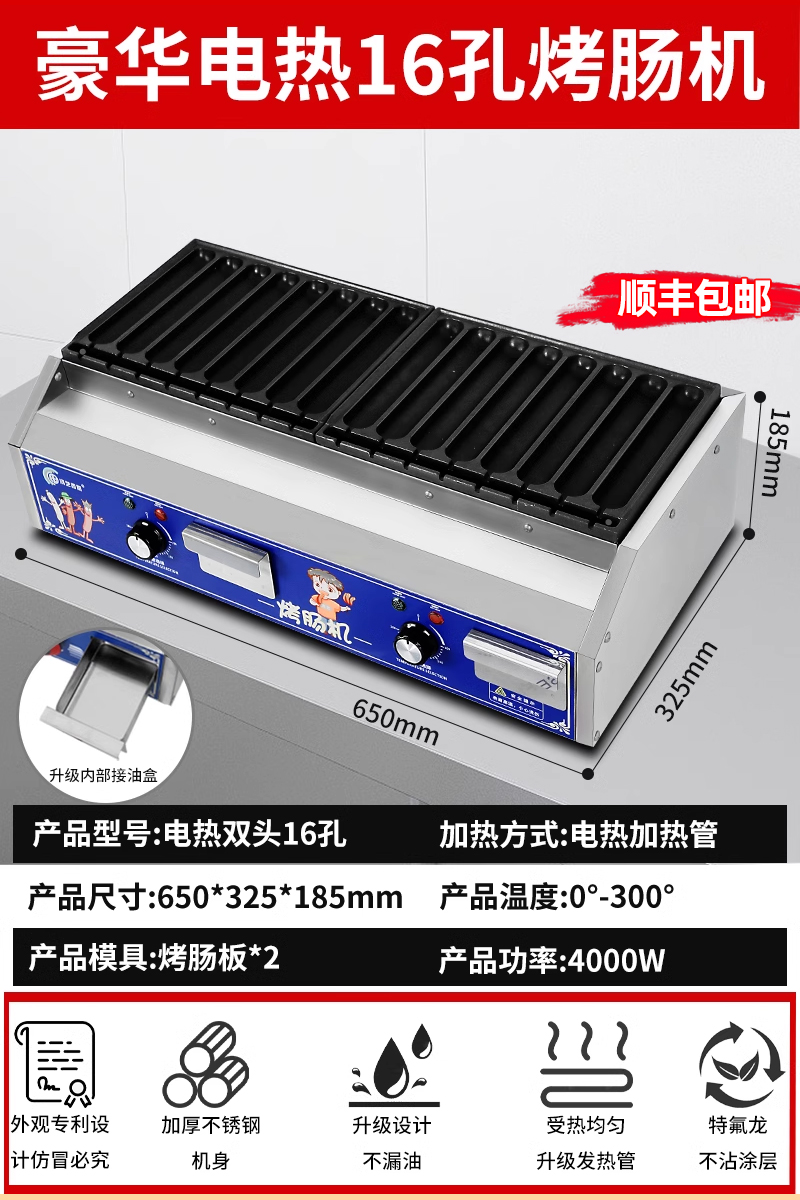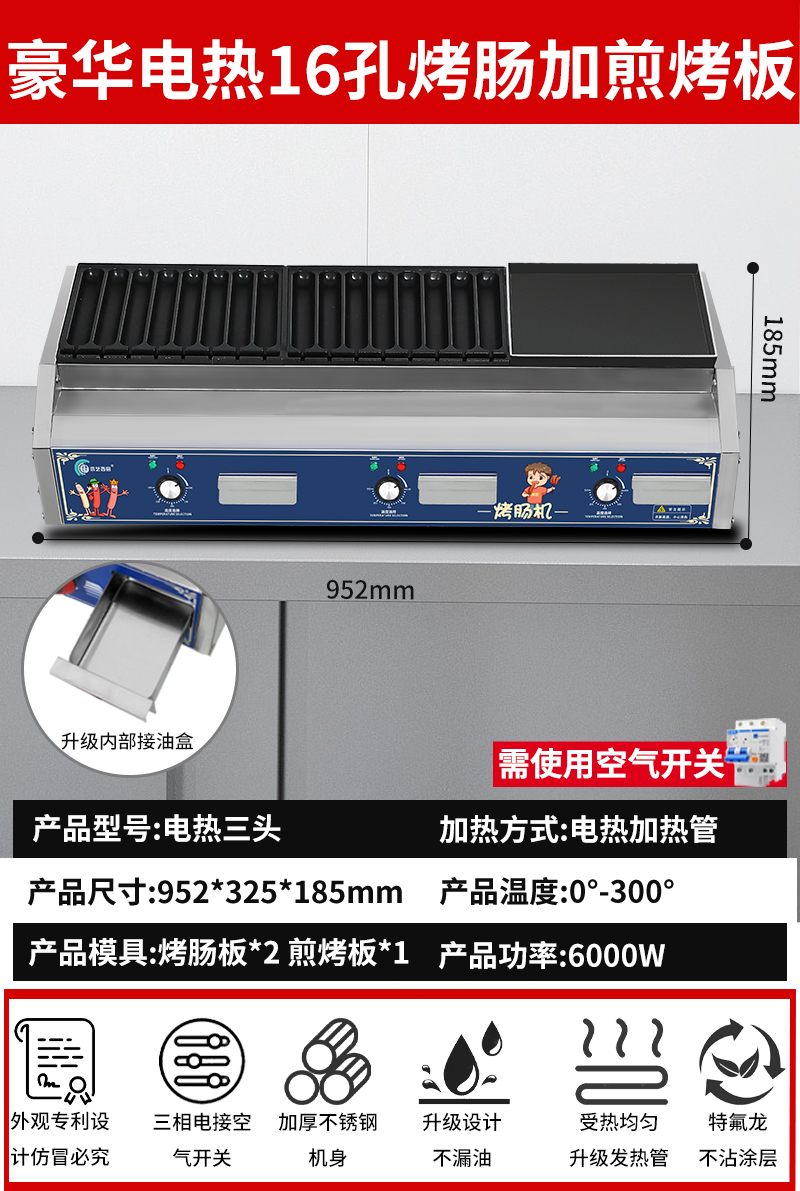 • 오일탱크가 있는 듀얼 컨트롤(플러그인 모델) 16홀 소시지 그릴 > 오일 누출 없음