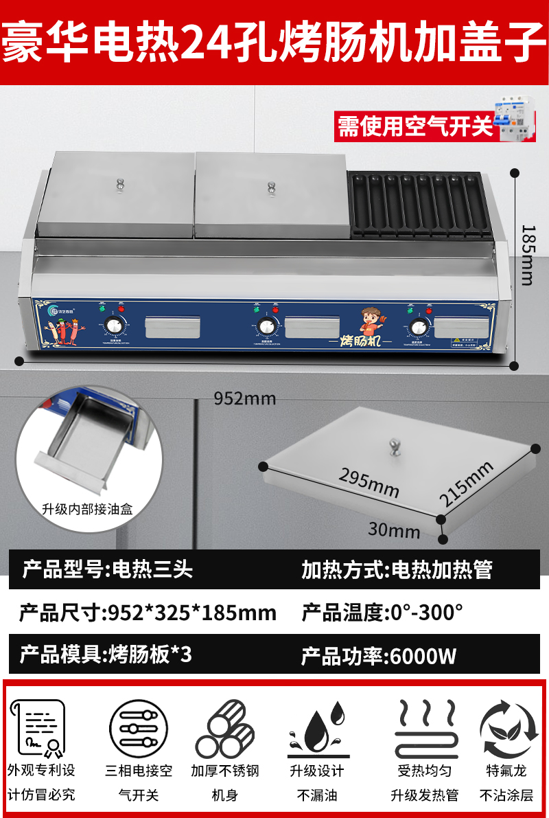 • 3제어(플러그인 모델) 24홀 소시지 그릴 + 뚜껑