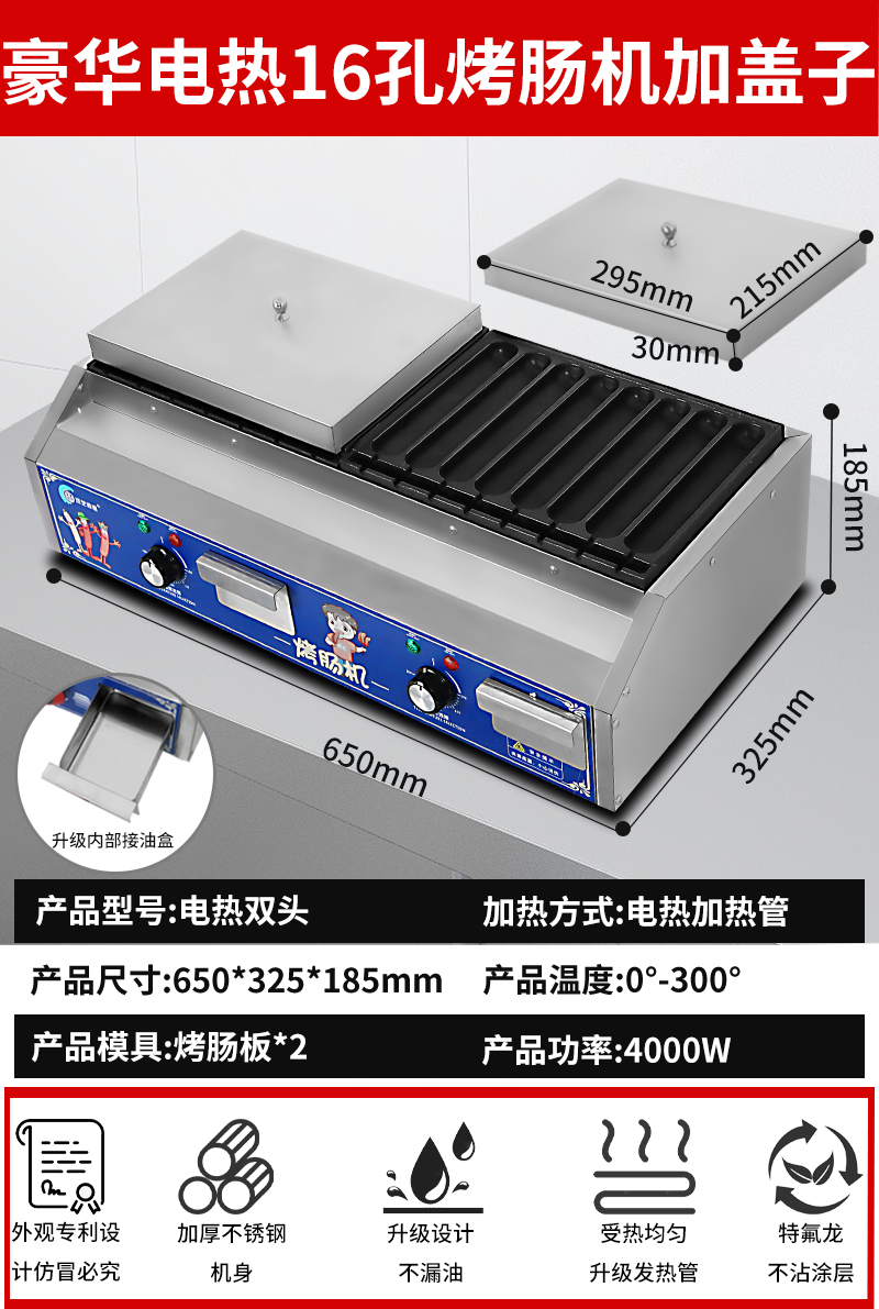 • 듀얼 컨트롤(플러그인 모델) 16홀 소시지 그릴 + 뚜껑