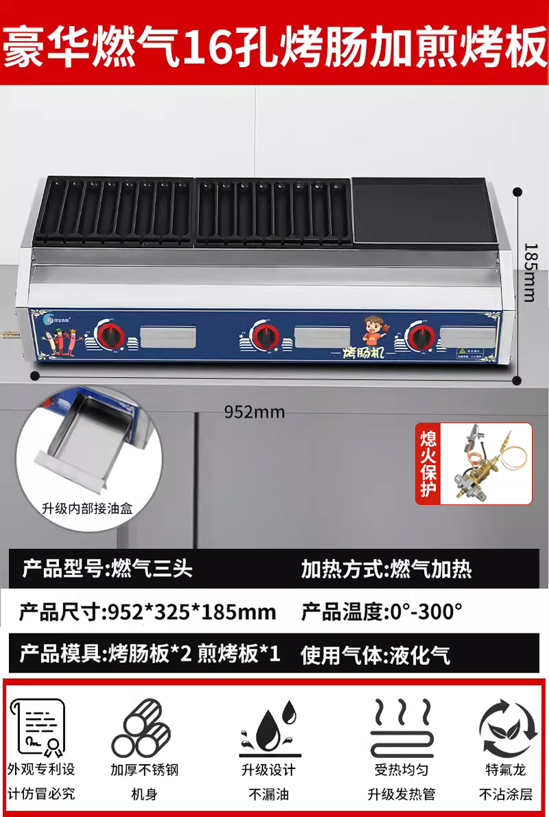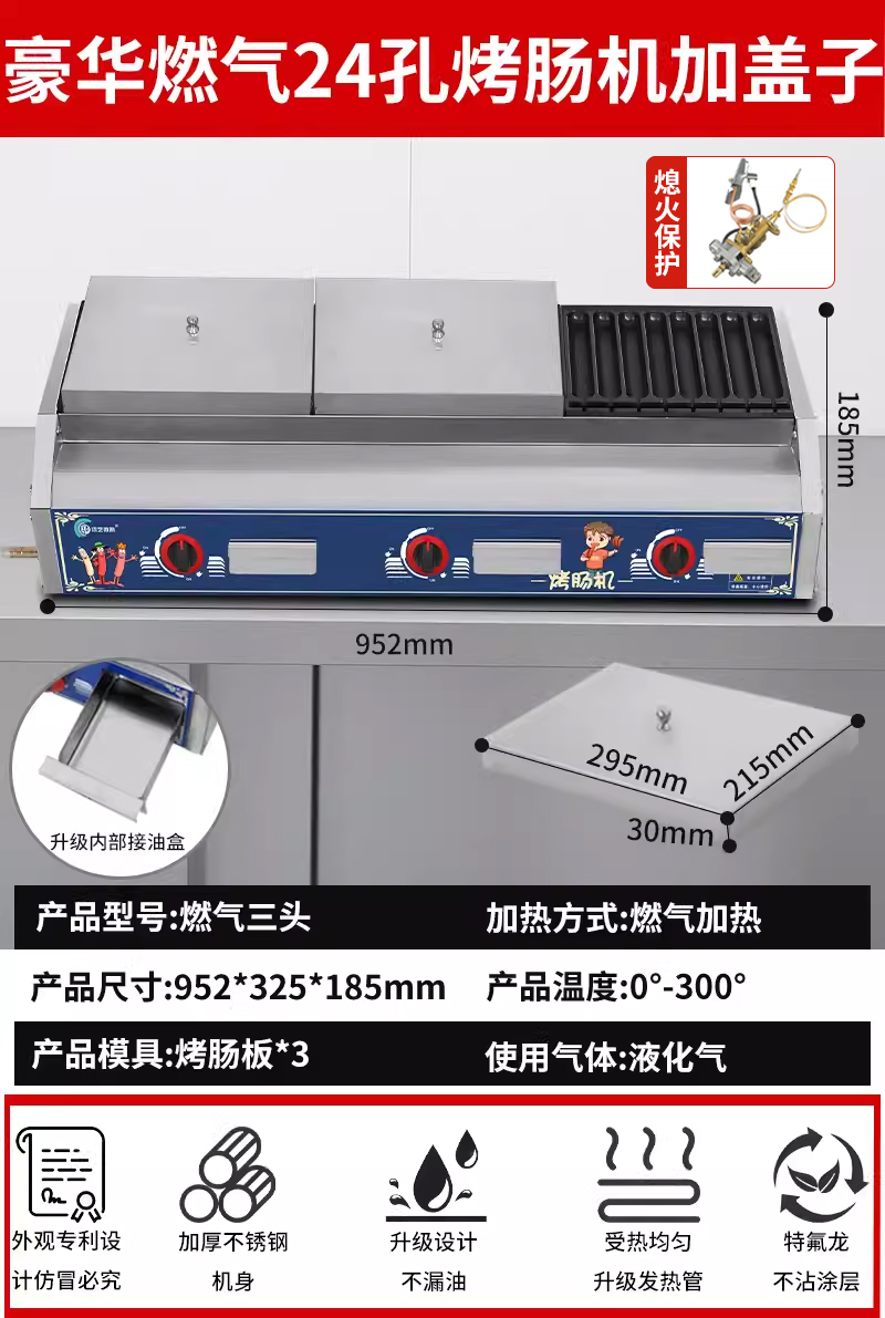 • 3중 조절식 [가스모델>24구 소시지 그릴러] 뚜껑 포함|화염정지 보호