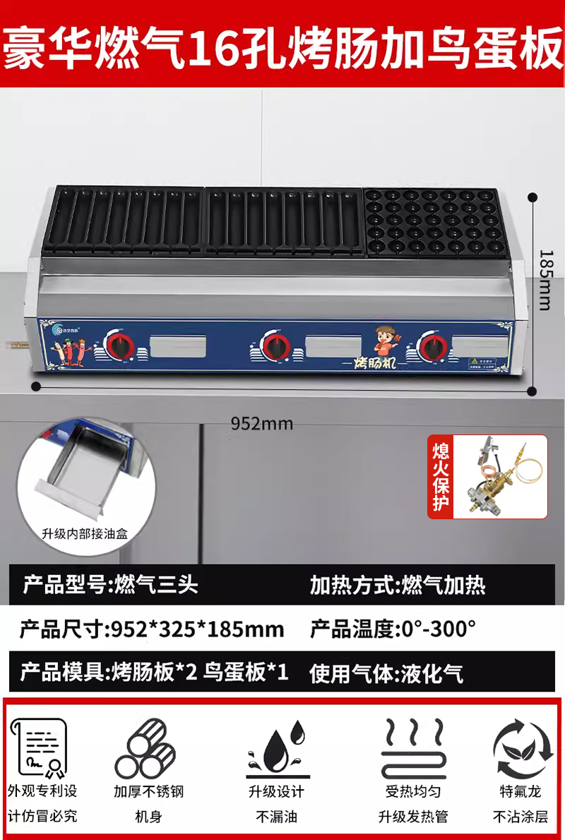 • 3중 조절 [가스모델>16구 소시지 그릴] + 새알판|화염정지 보호