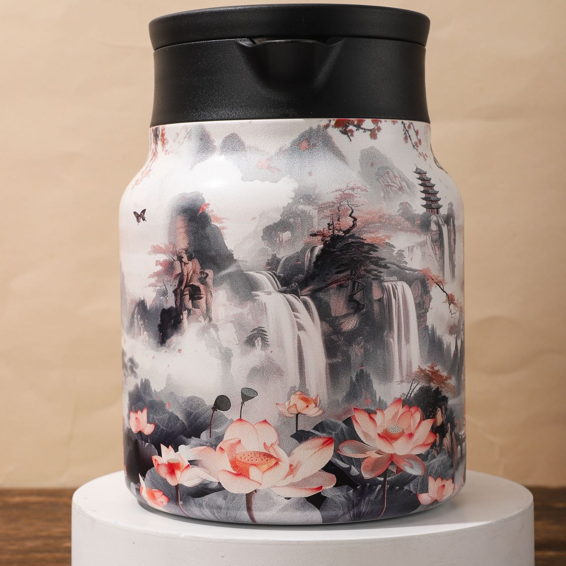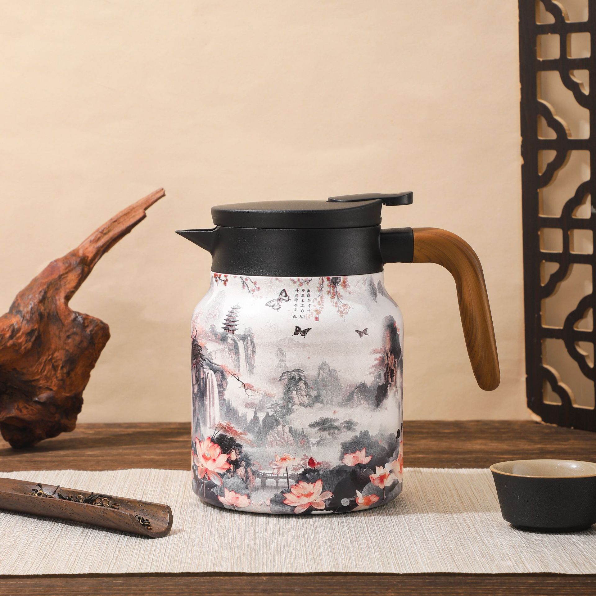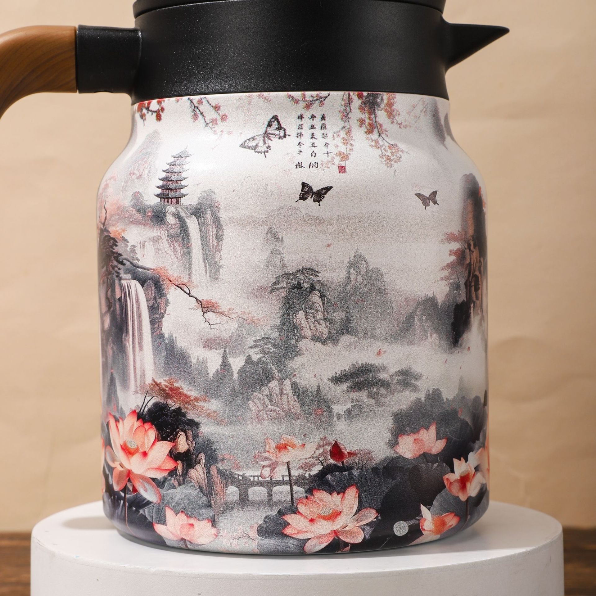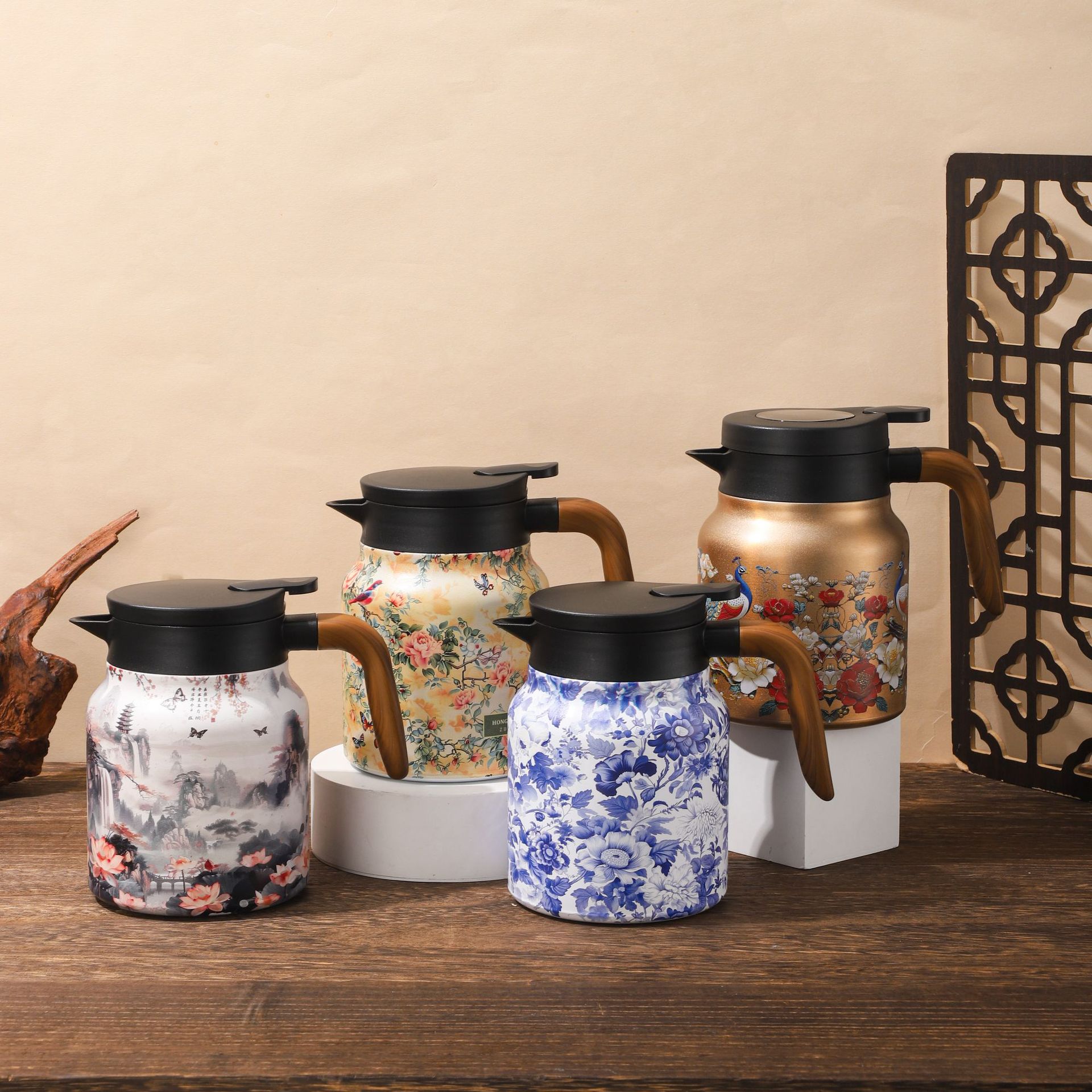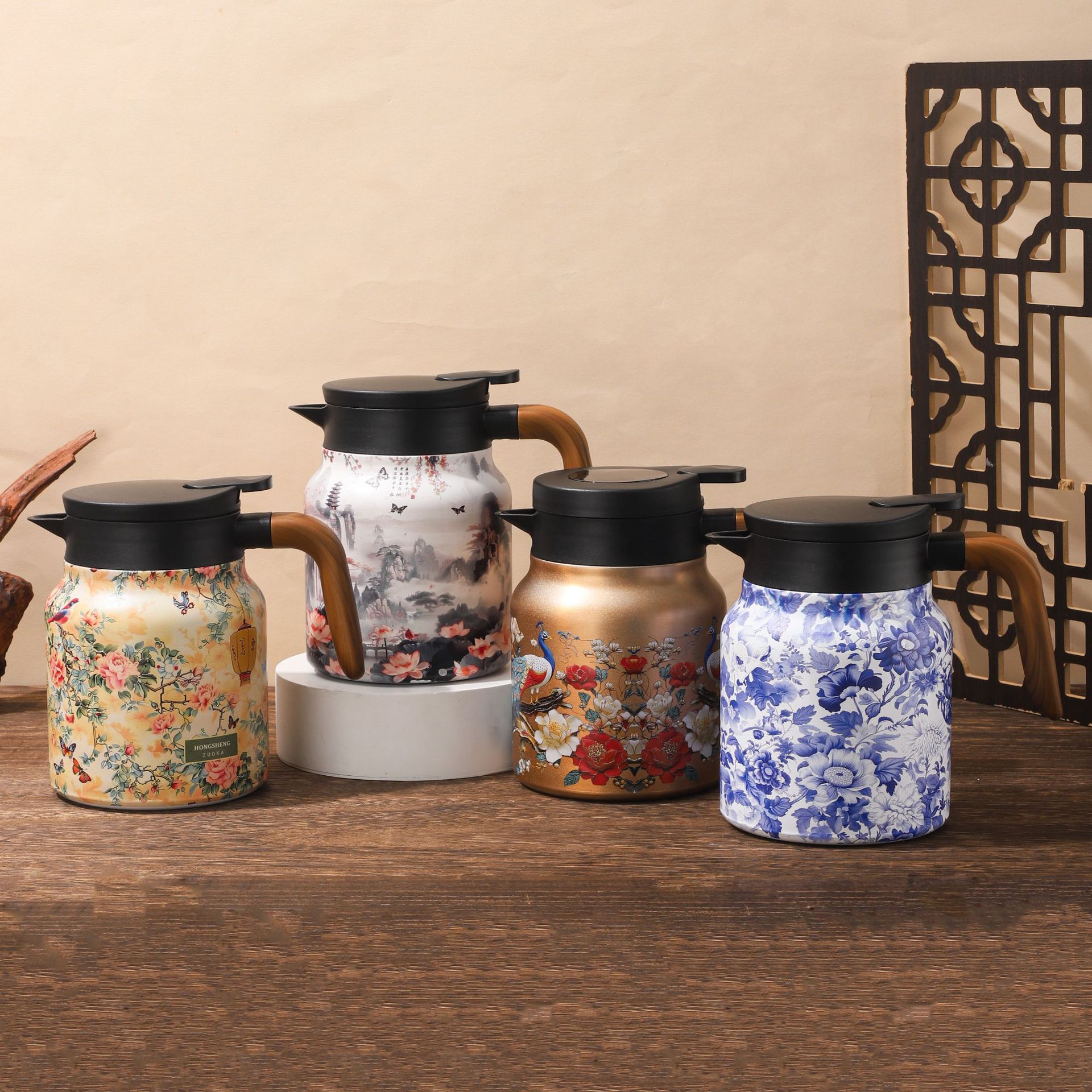 새로운 인쇄 패턴 찐 주전자 316 스테인레스 스틸 절연 냄비 간단한 휴대용 커피 포트 비즈니스 주전자
