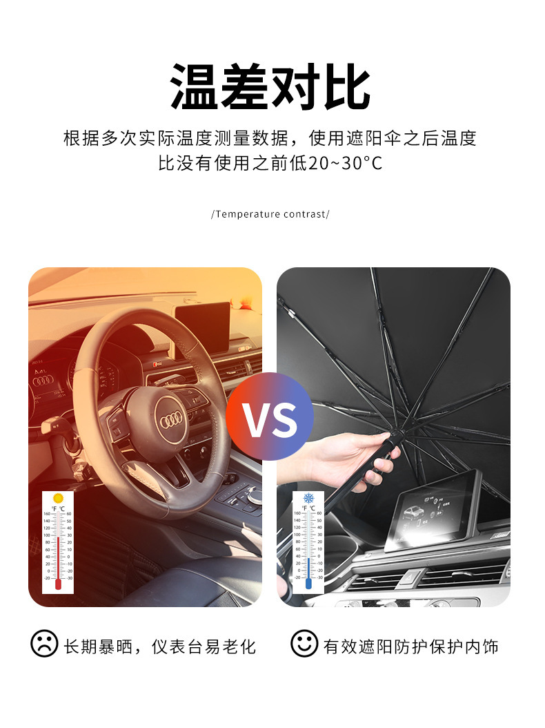 자동차 차양 우산 앞 유리 차 그늘 우산 티타늄 실버 태양 보호 단열 햇빛 광고 우산 인쇄 가능한 로고