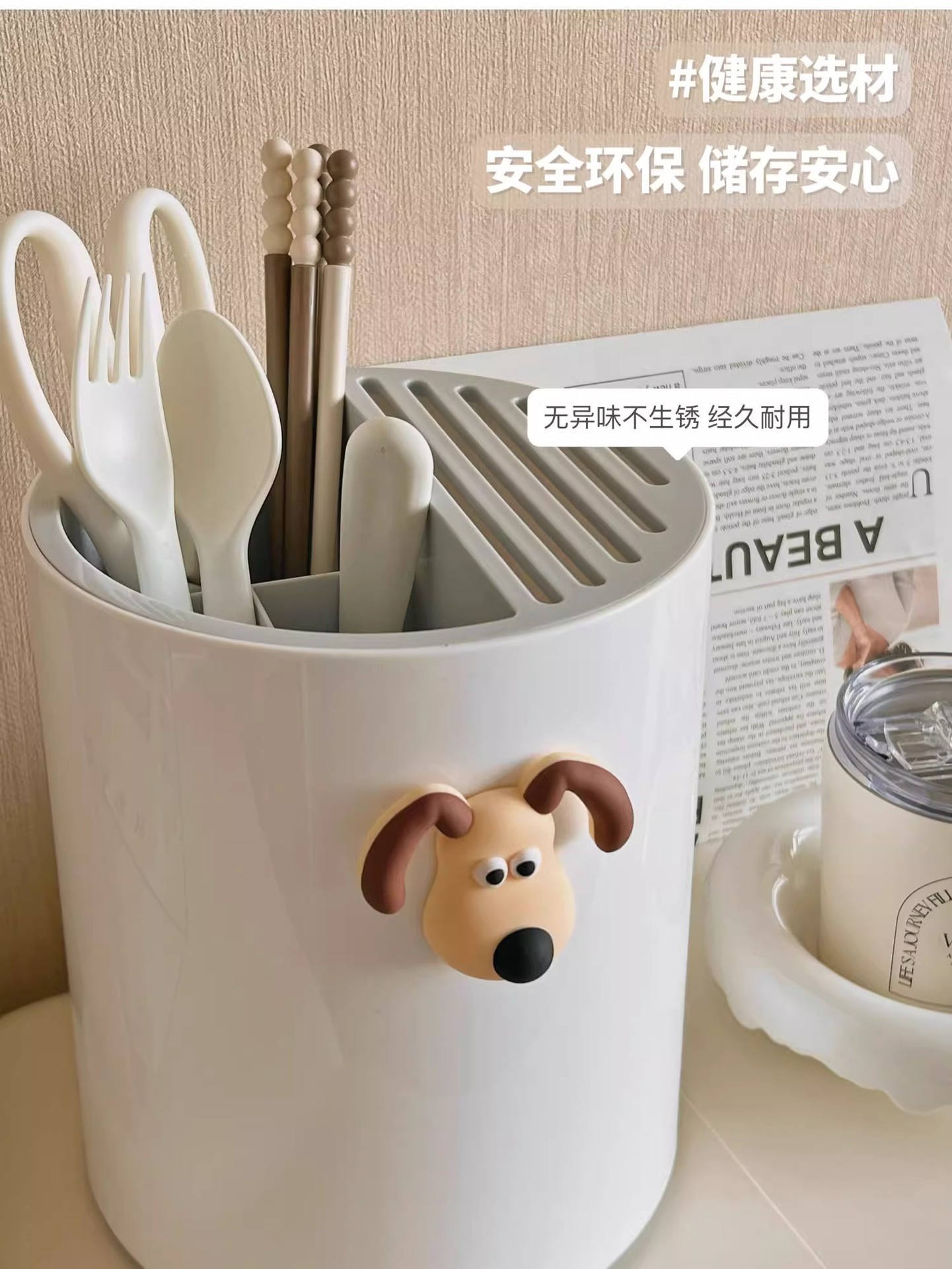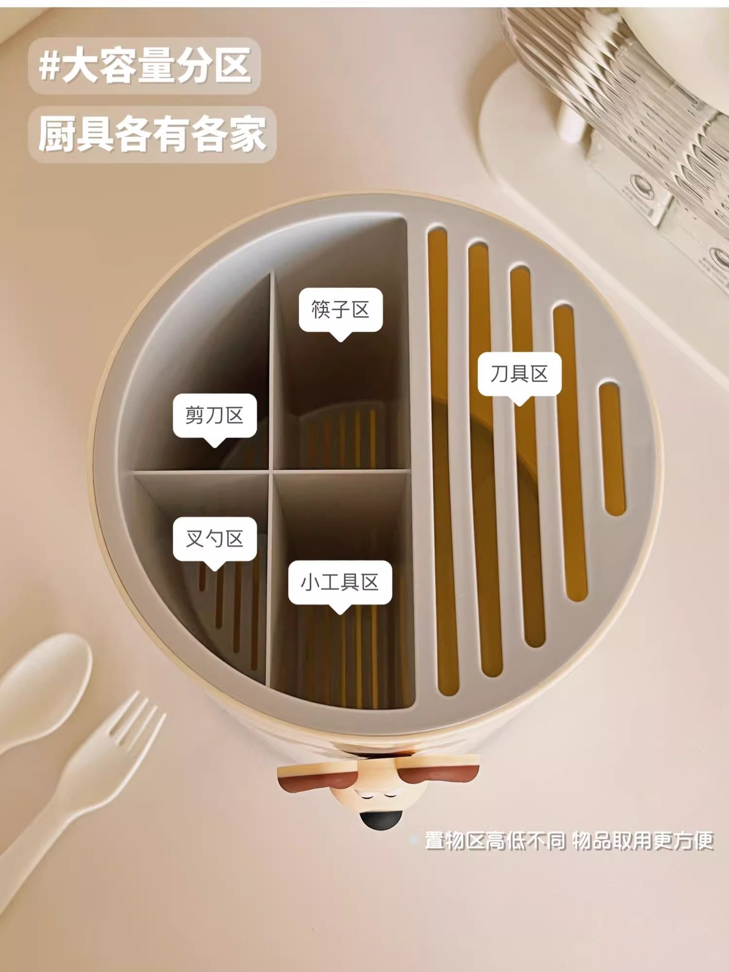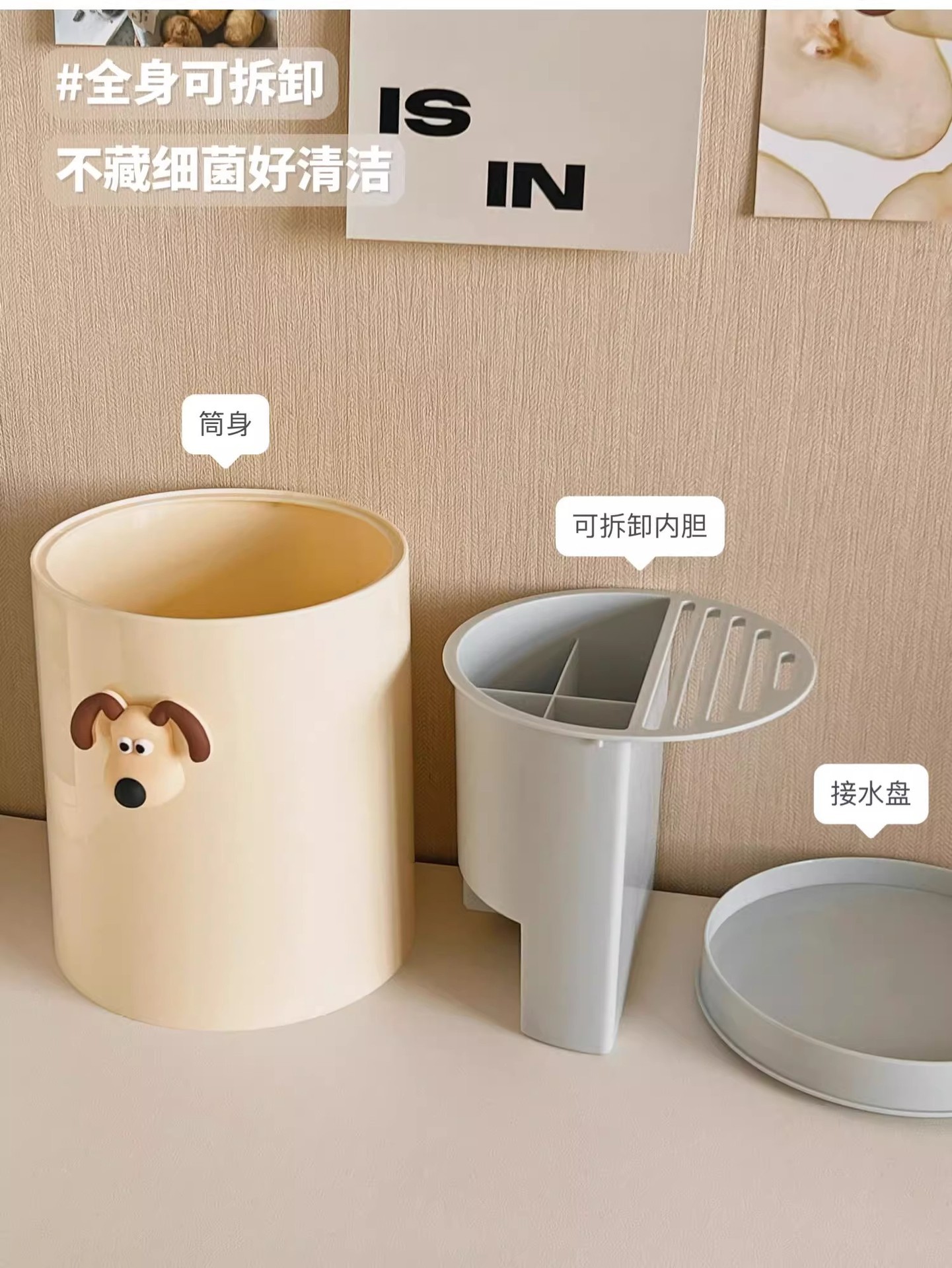 • 크림 화이트 [강아지 스티커 포함] 통풍/배수/곰팡이 방지/회전 가능