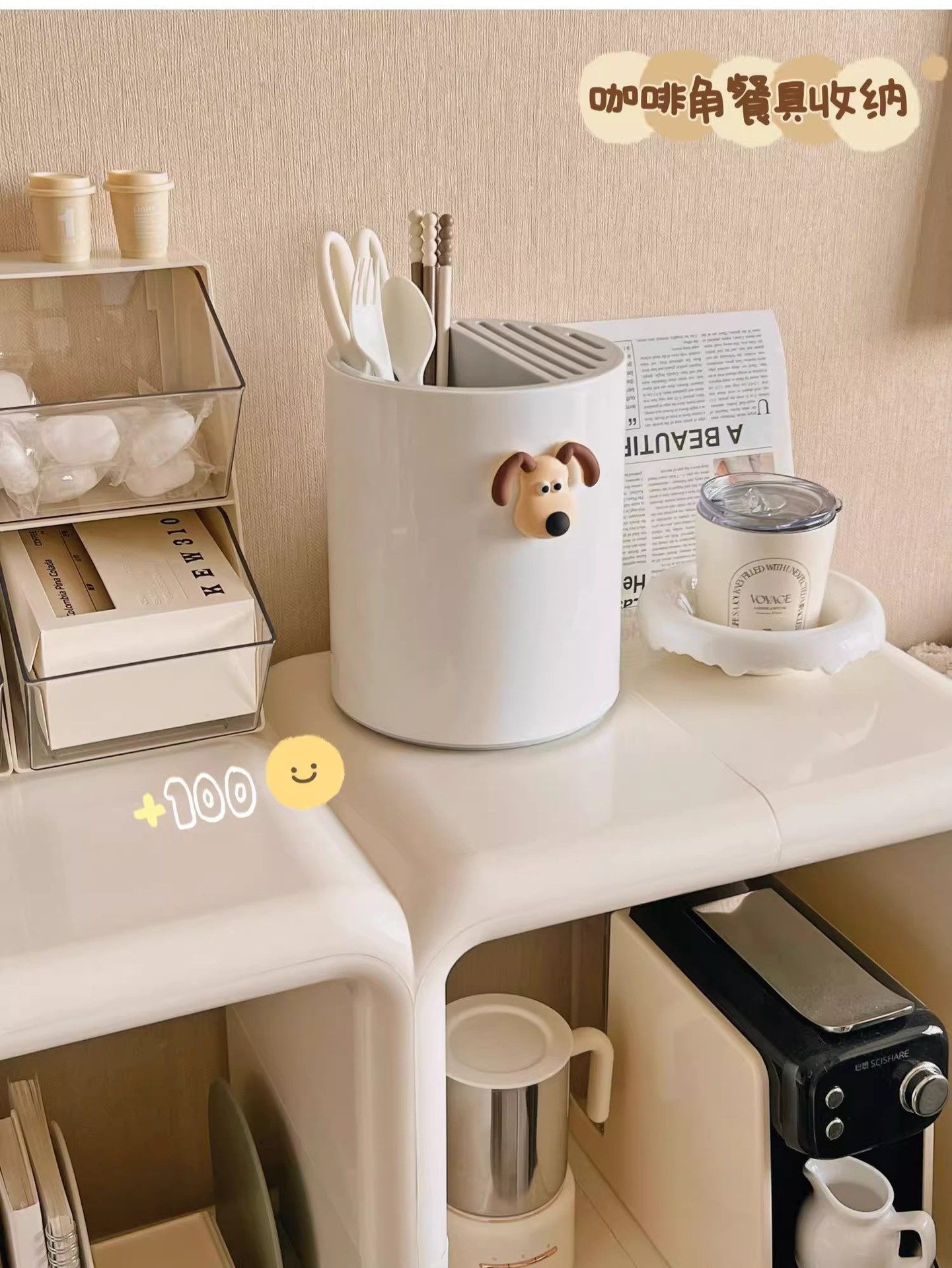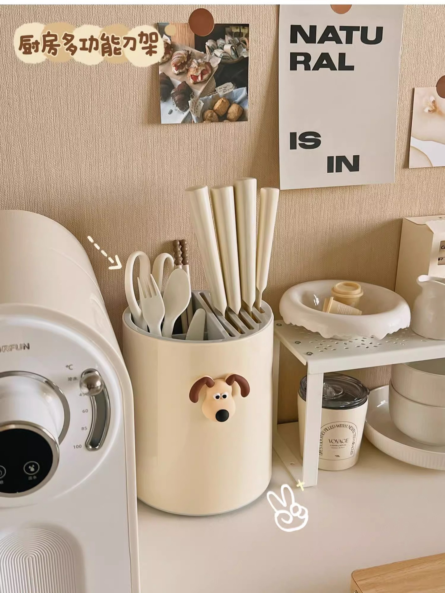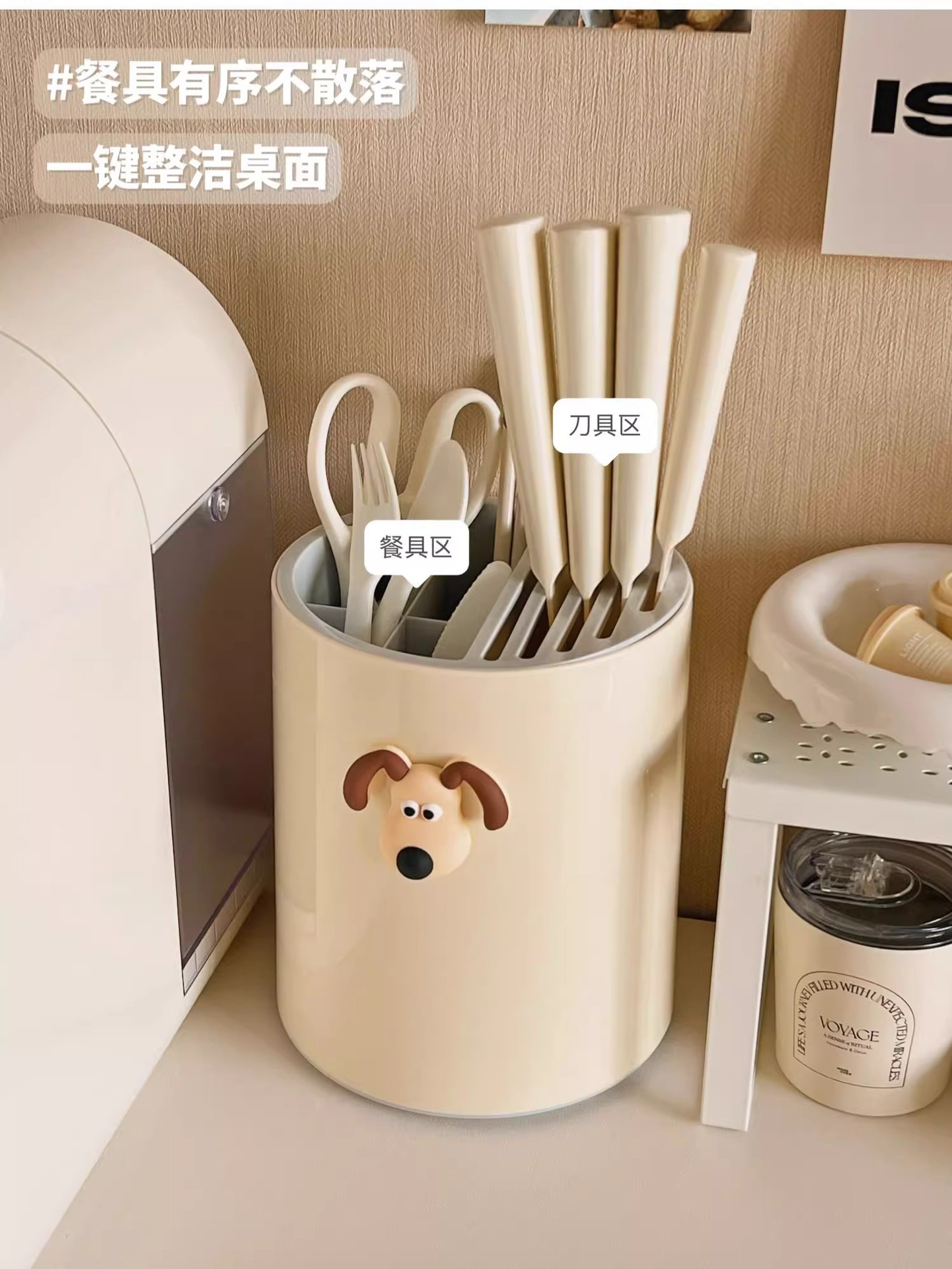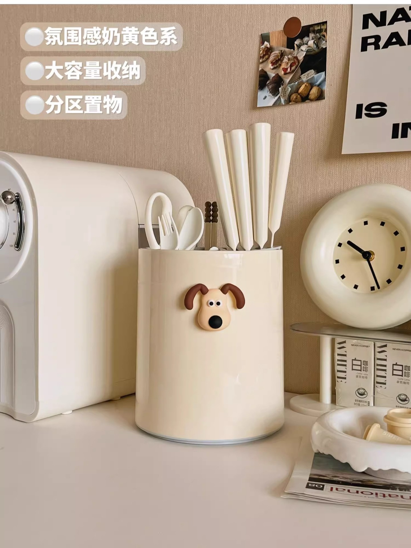 • 크림 화이트 [강아지 스티커 포함] 통풍/배수/곰팡이 방지/회전 가능