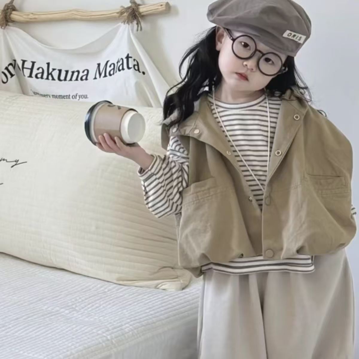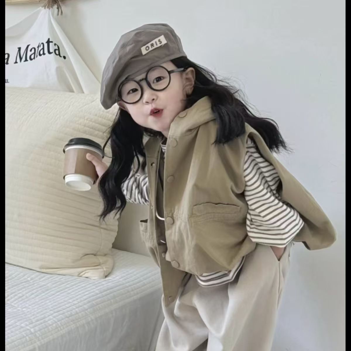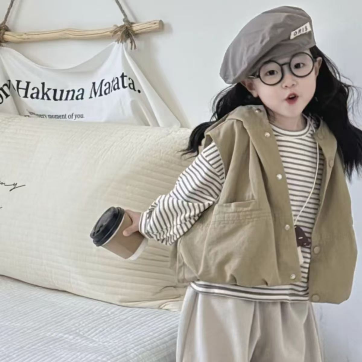 아동복 2026 가을 신상품 아동용 스타일리시하고 트렌디한 루즈핏 후드 민소매 조끼 남아 여아 상의