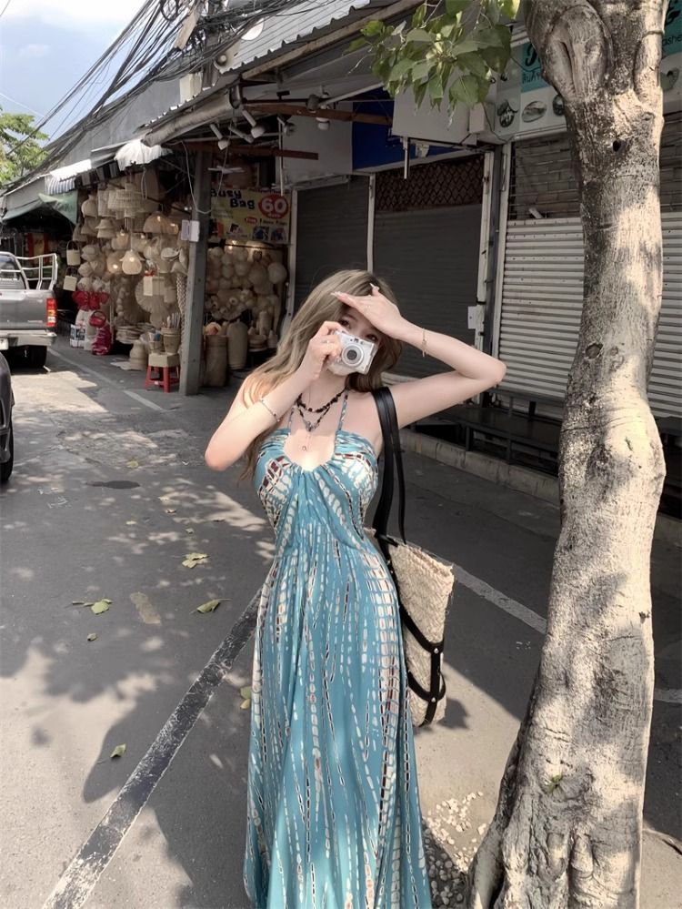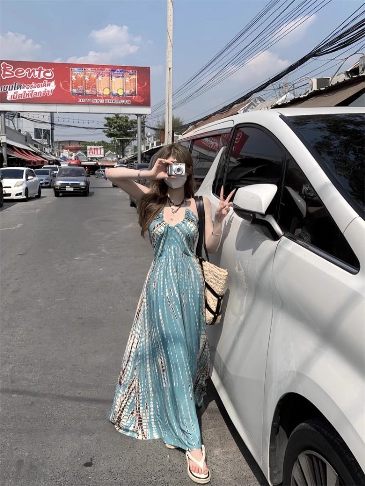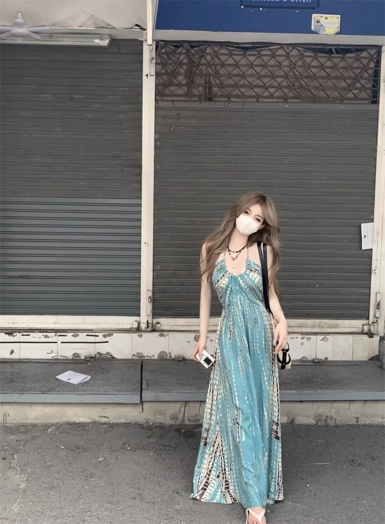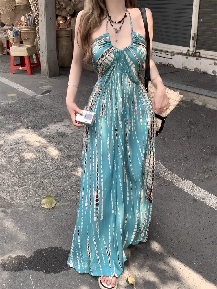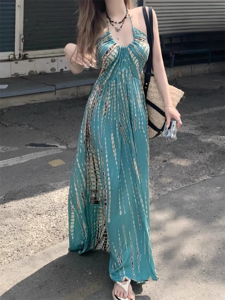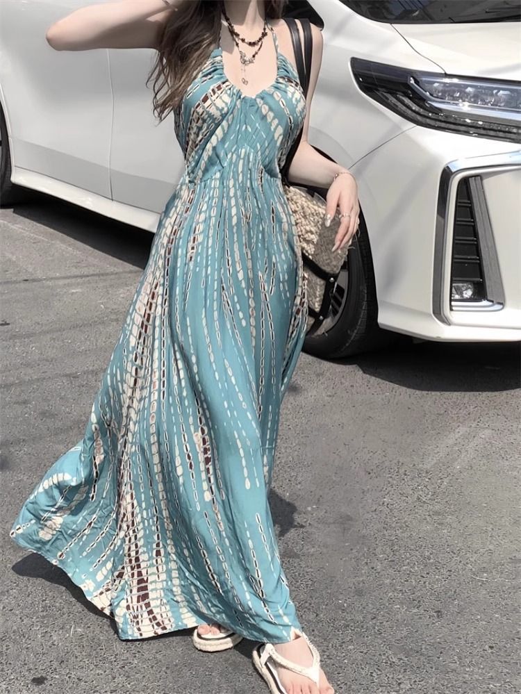 보헤미안 휴가 원피스 여성 여름 새로운 프랑스 스타일 여행 사진 해변 원피스 우아한 긴 원피스