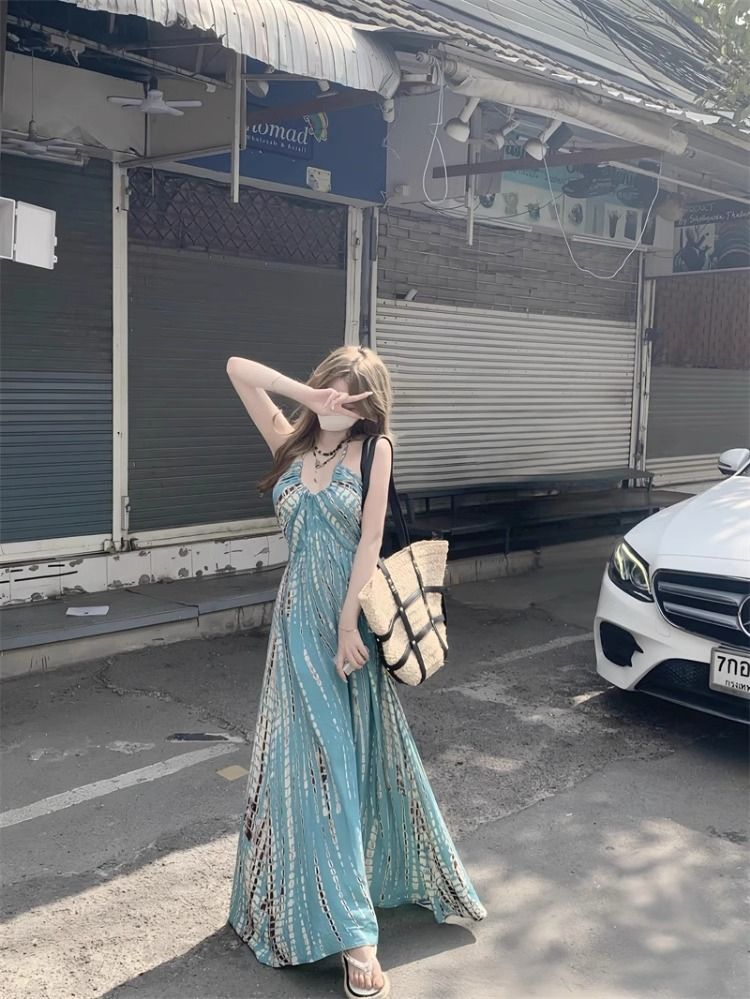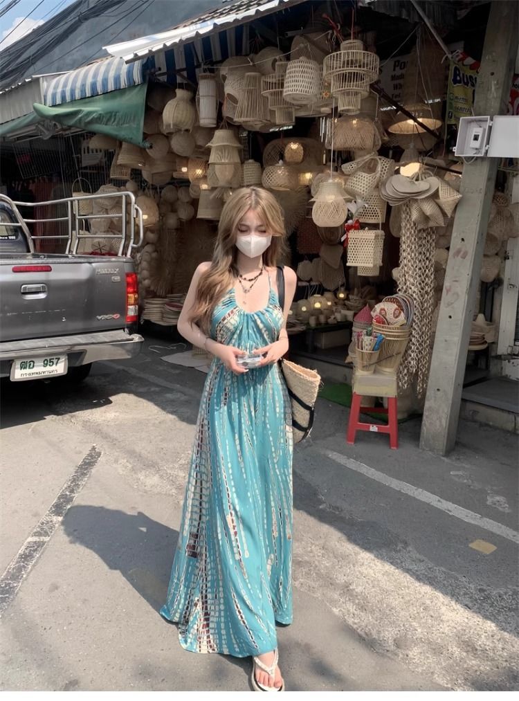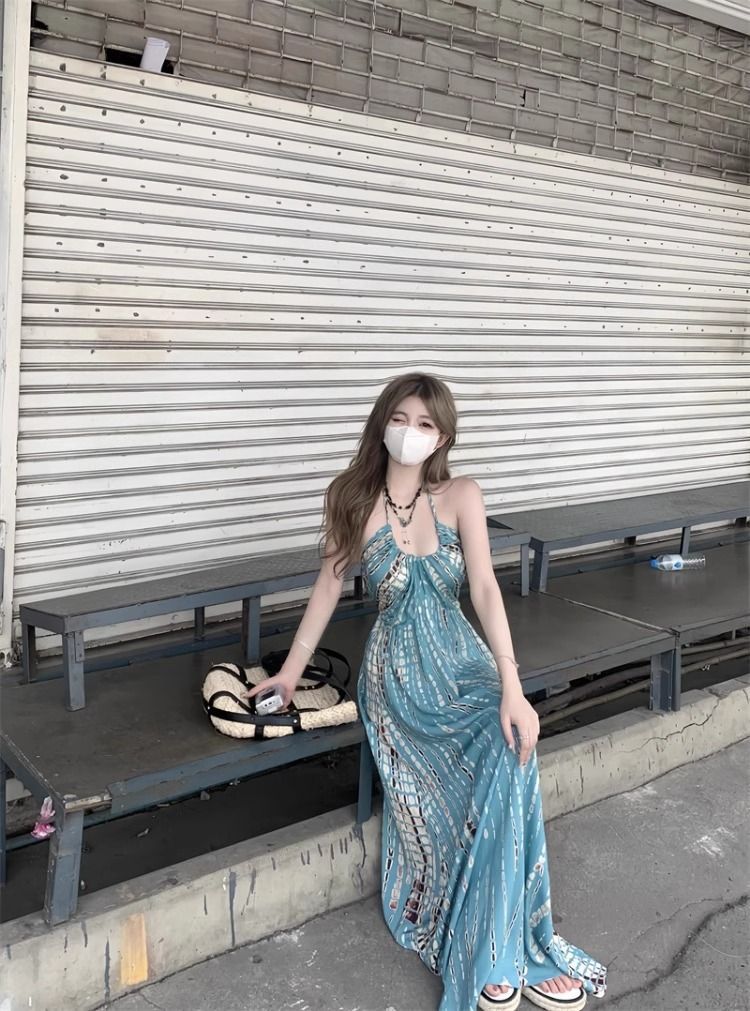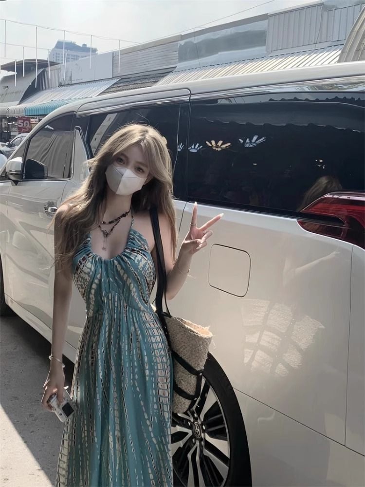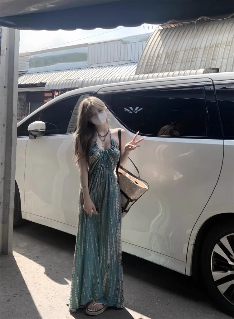 보헤미안 휴가 원피스 여성 여름 새로운 프랑스 스타일 여행 사진 해변 원피스 우아한 긴 원피스