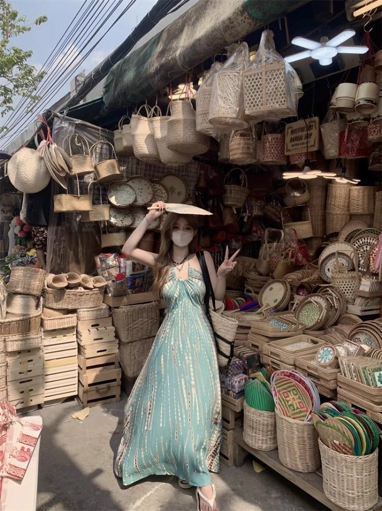 보헤미안 휴가 원피스 여성 여름 새로운 프랑스 스타일 여행 사진 해변 원피스 우아한 긴 원피스스토어 가기