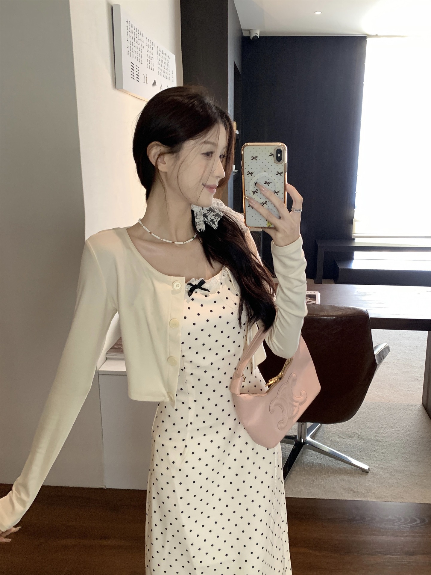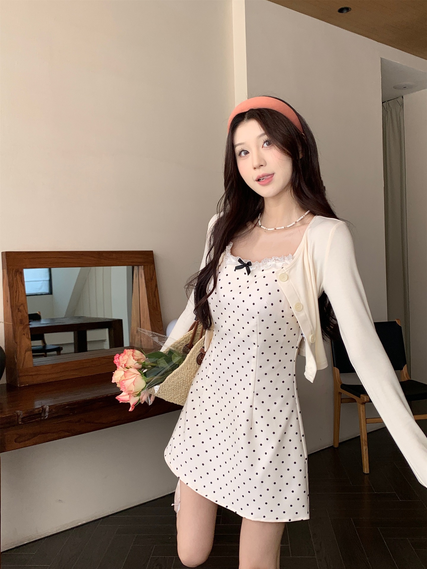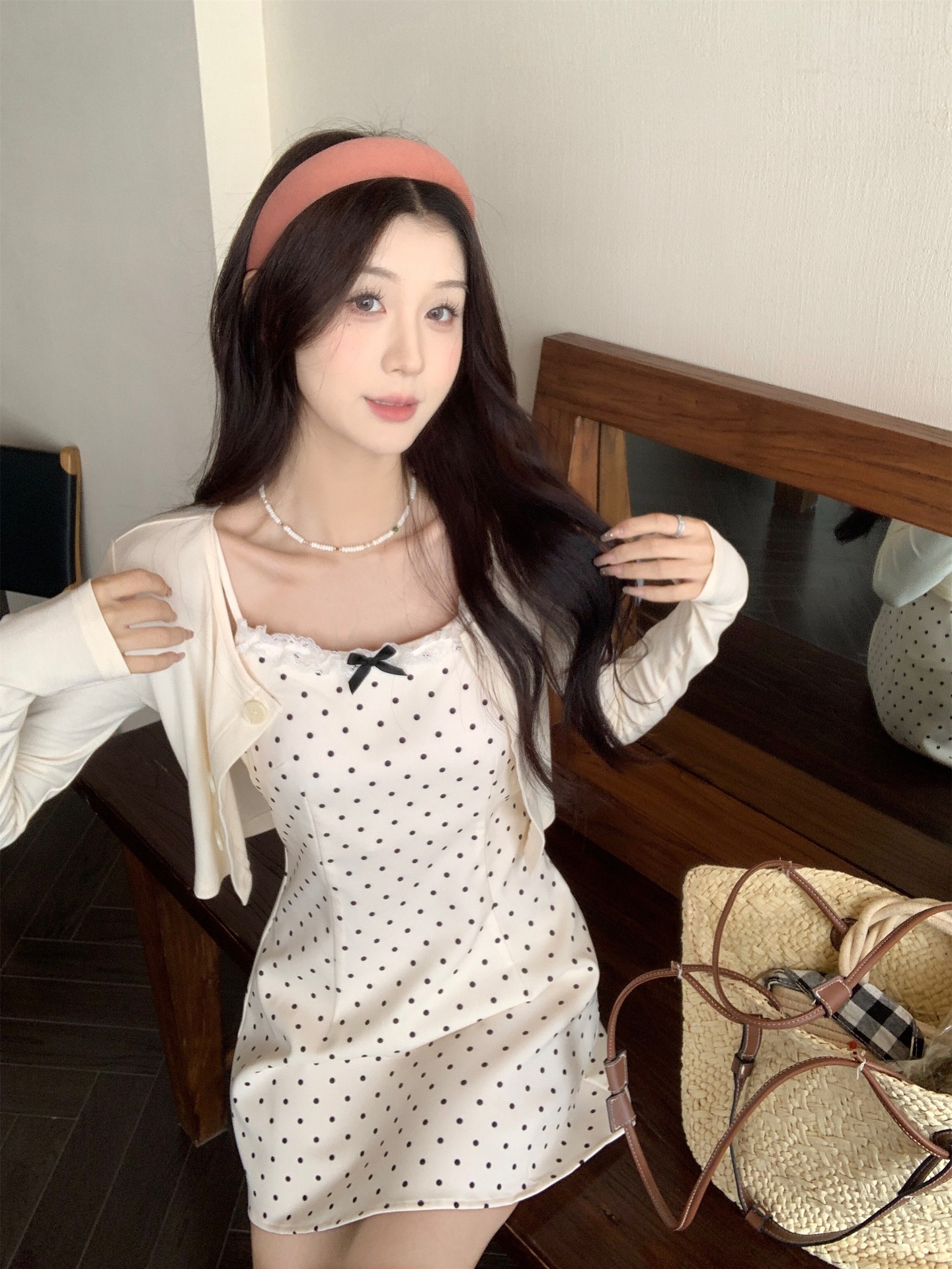 • 화이트 도트무늬 쇼트 스타일