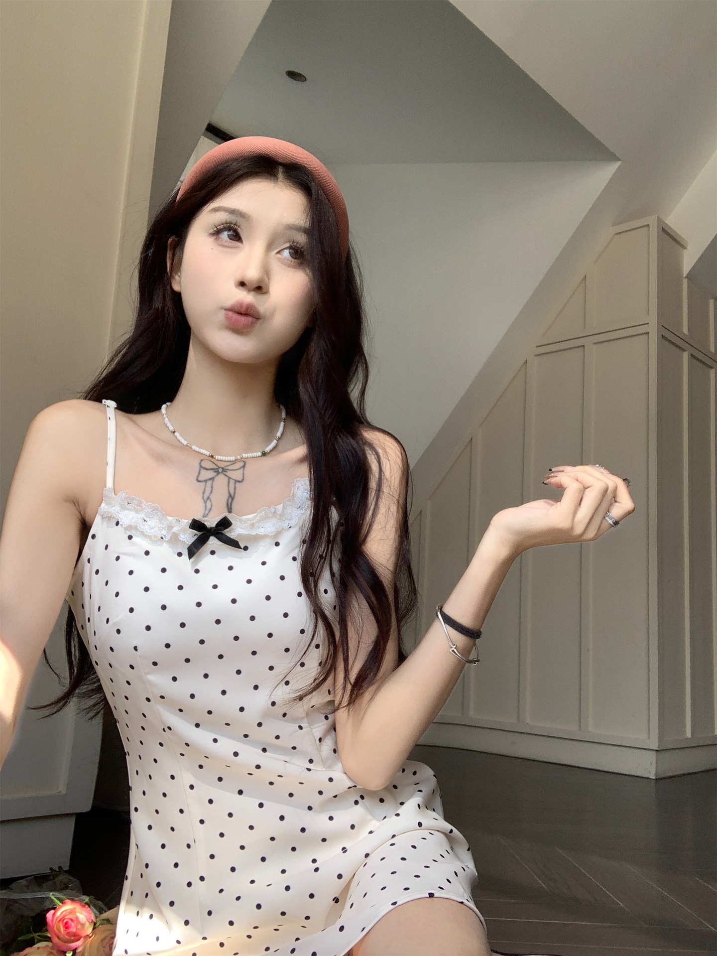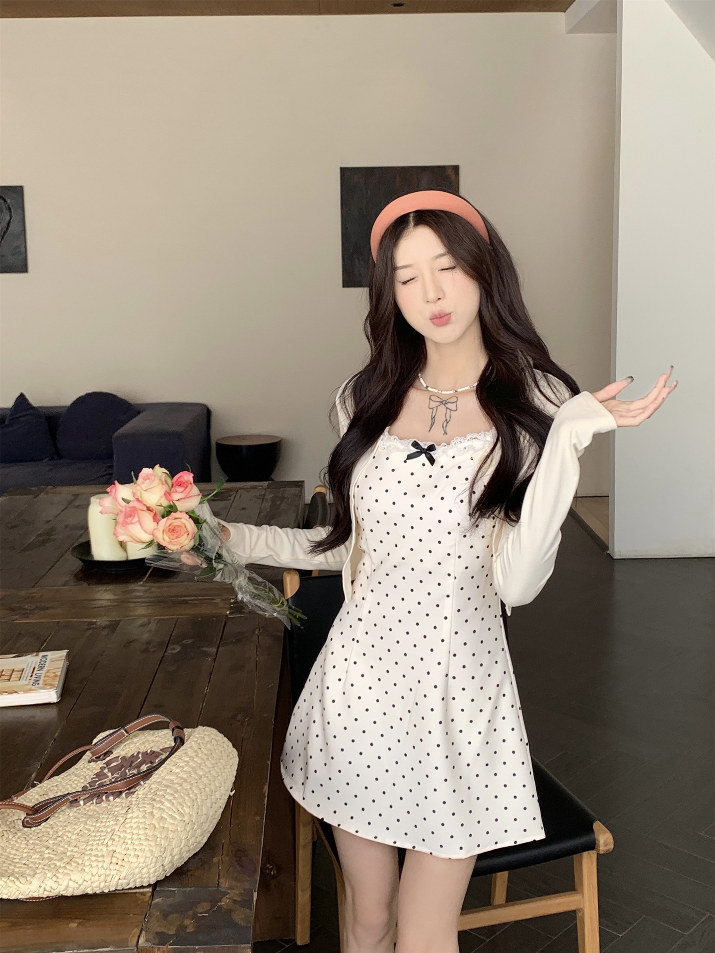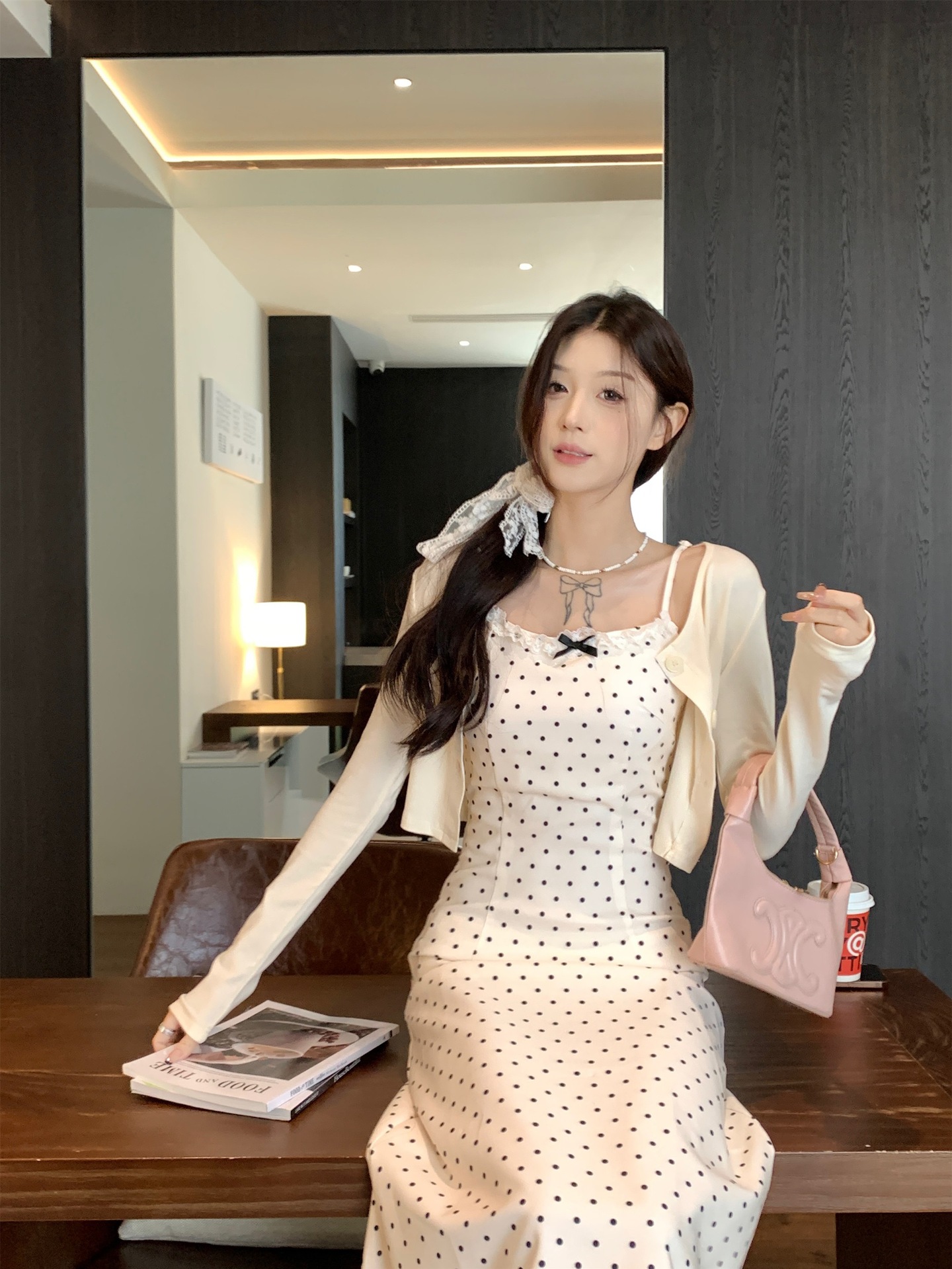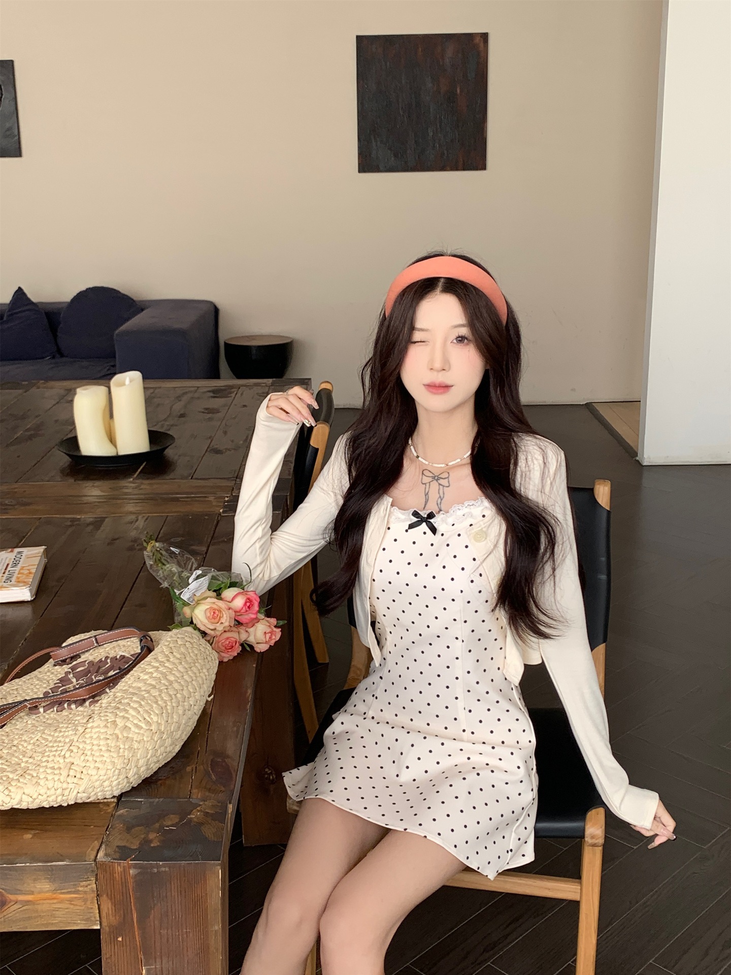 • 화이트 도트무늬 쇼트 스타일