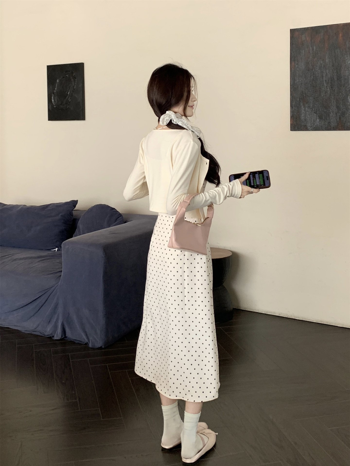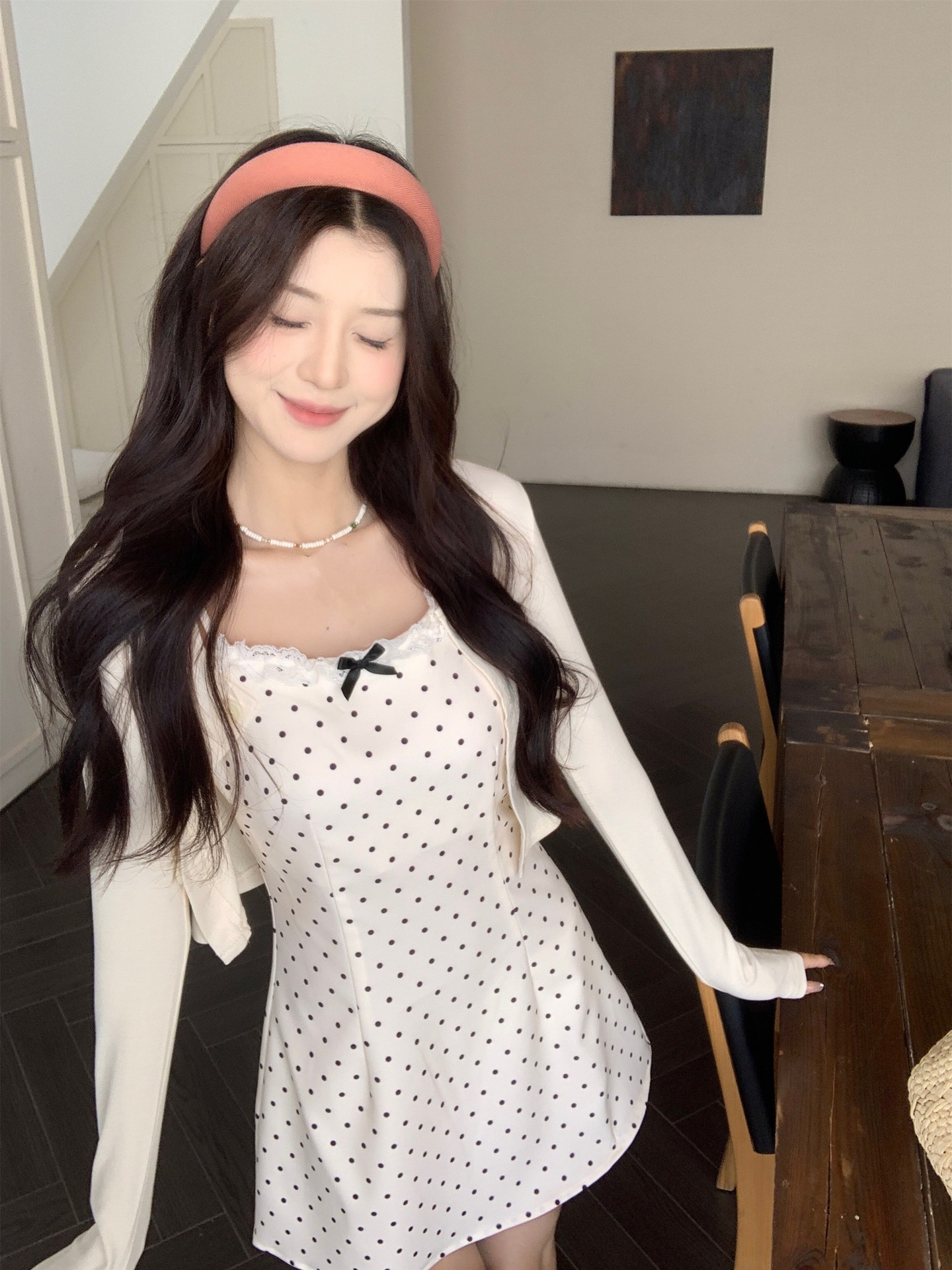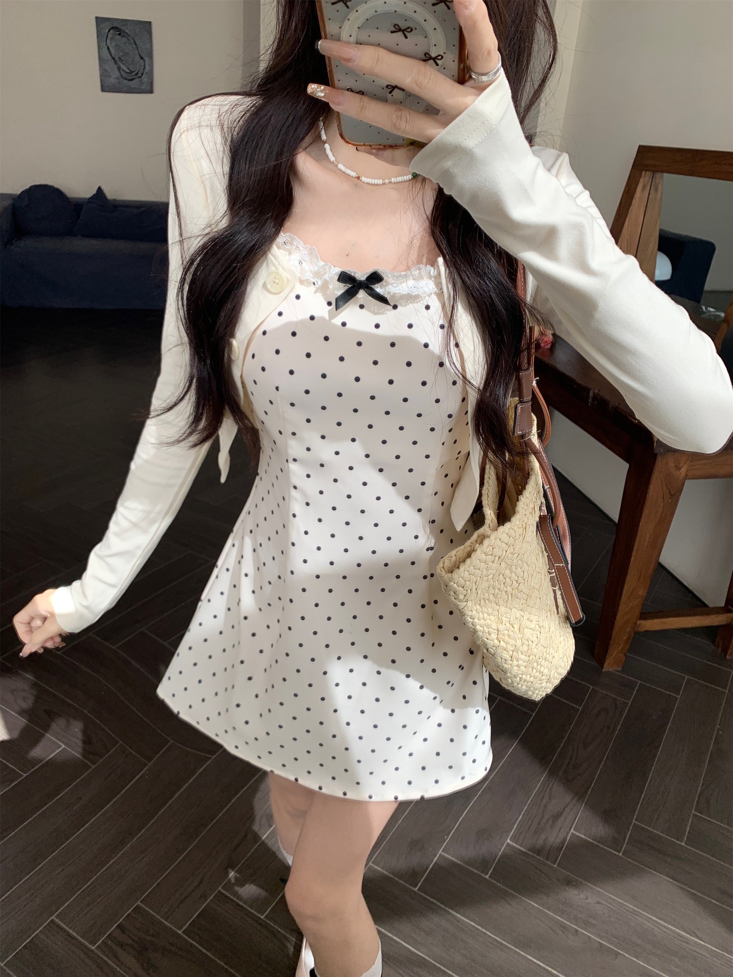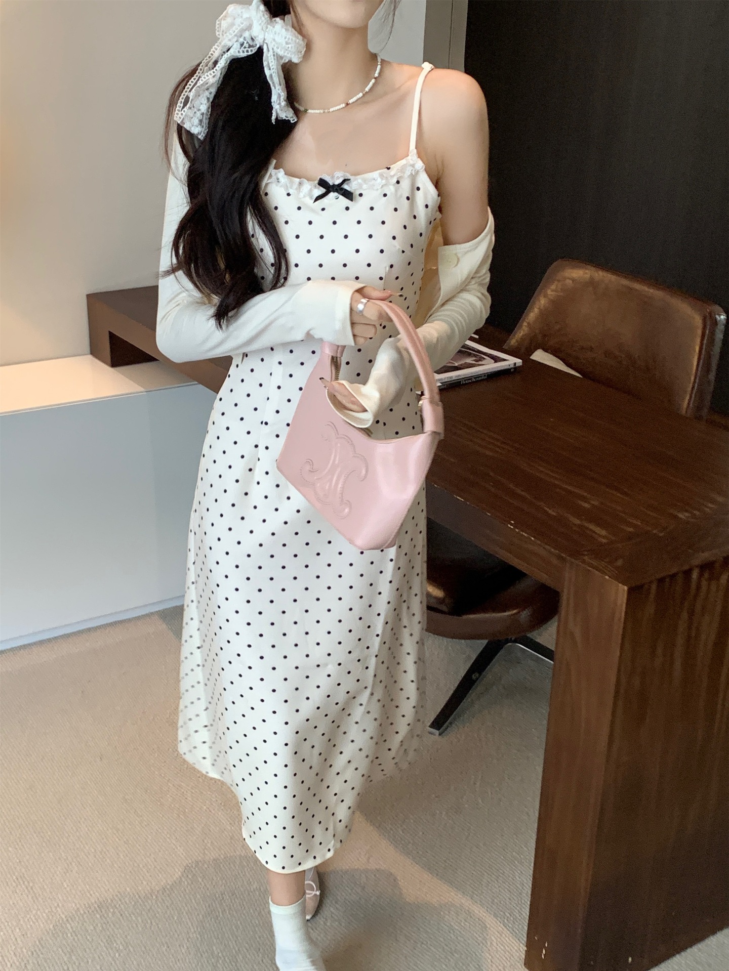 • 화이트 도트 롱 스타일