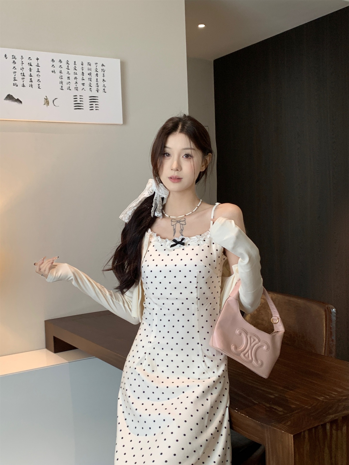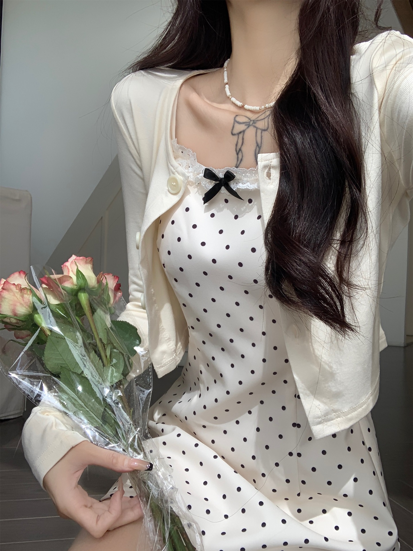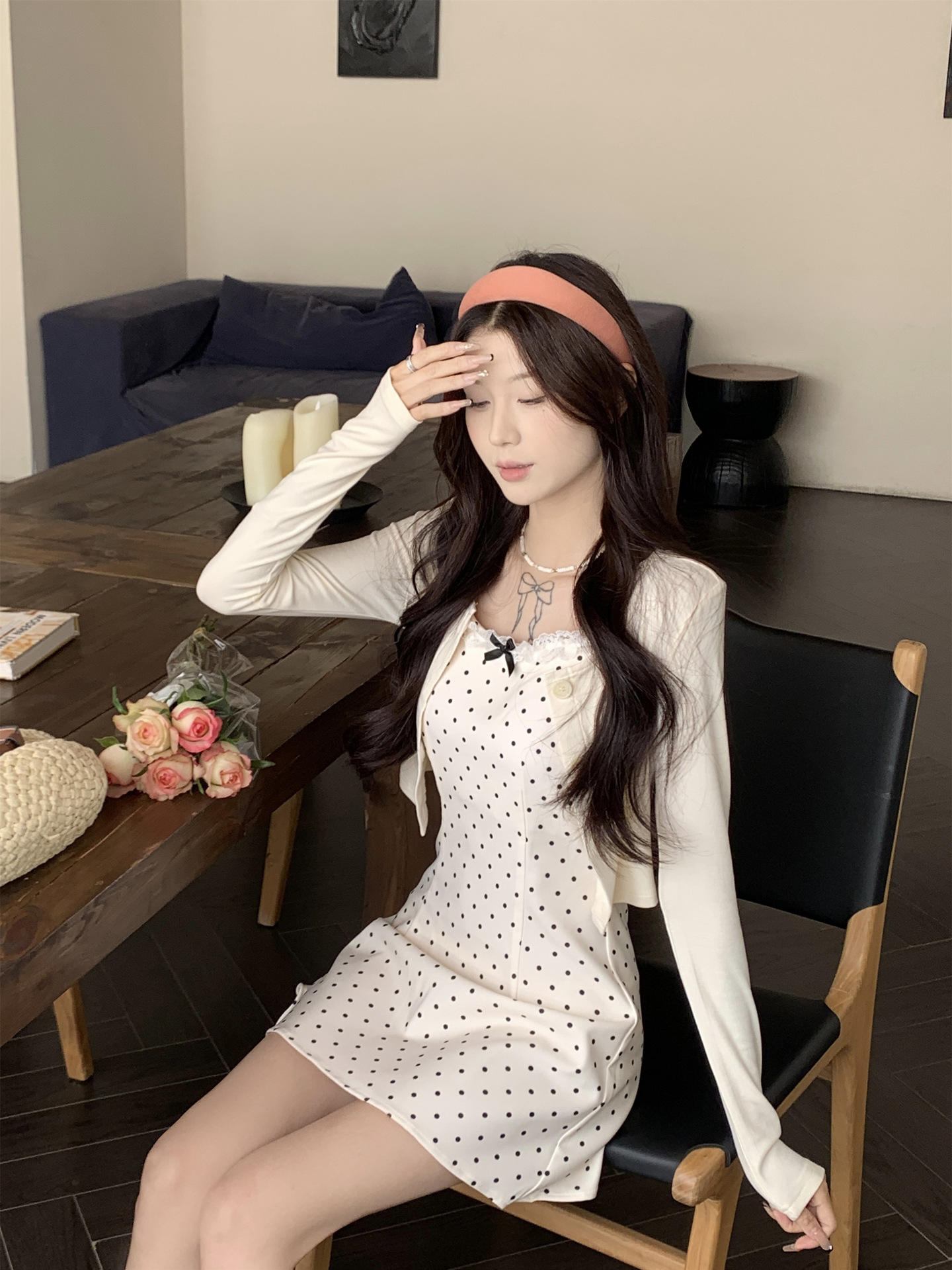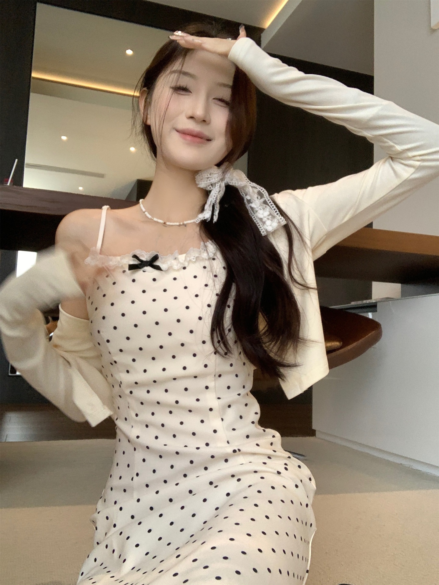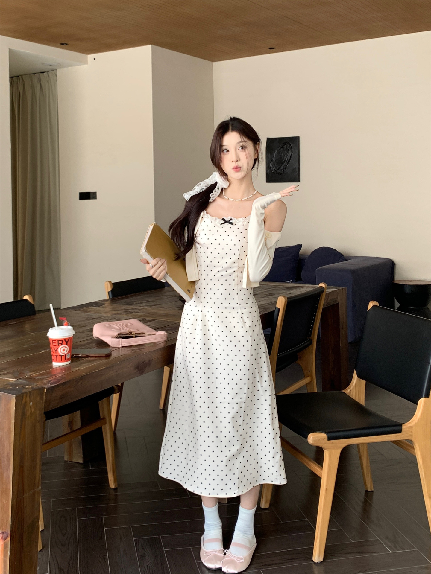 • 화이트 도트 롱 스타일