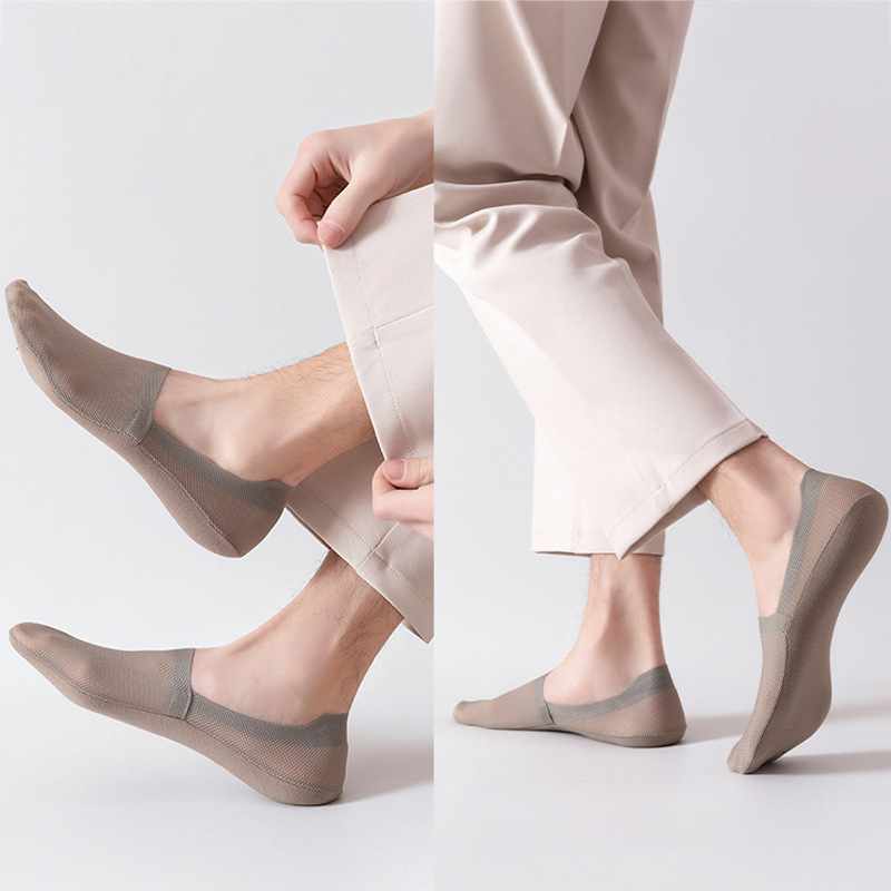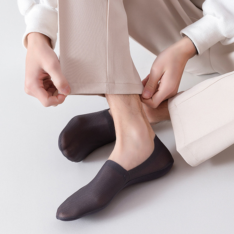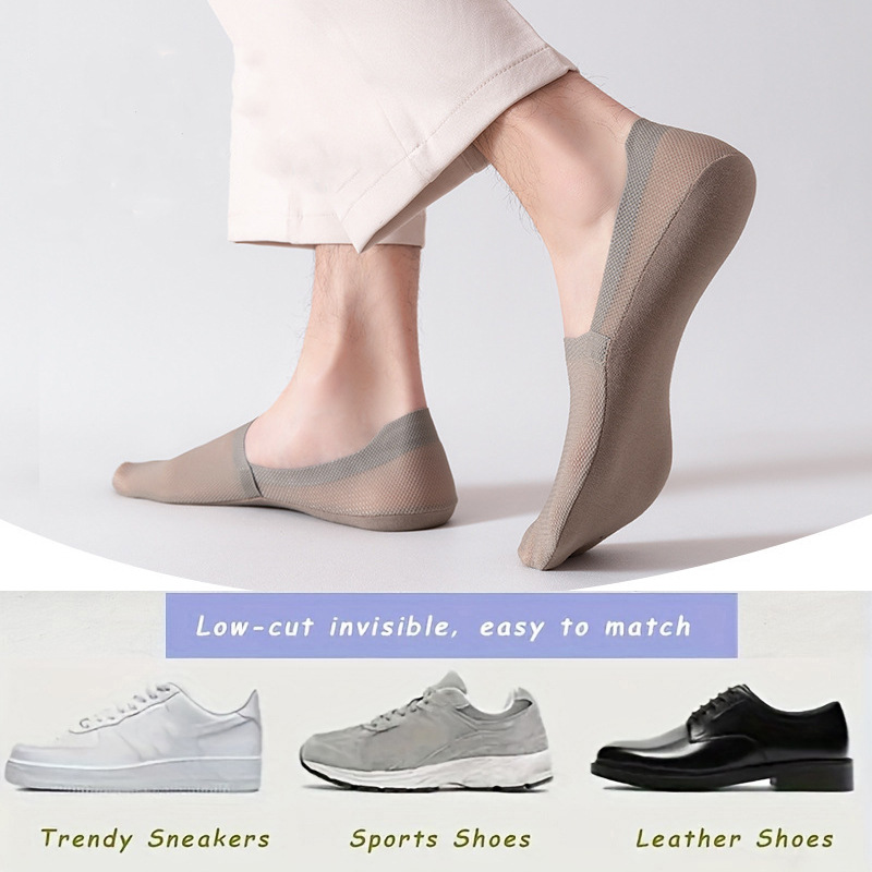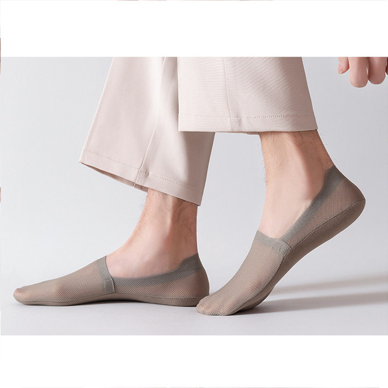 남성용 보트삭스, 유럽 및 미국에서 인기 판매 중, 땀 흡수 및 탈취 기능, 아이스 실크 소재, 타월 바닥, 통기성, 미끄럼 방지, 뒤꿈치가 빠지지 않는, 투명 양말스토어 가기