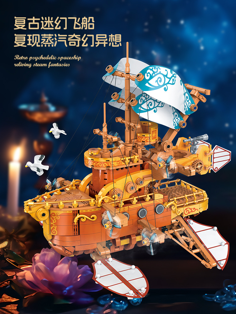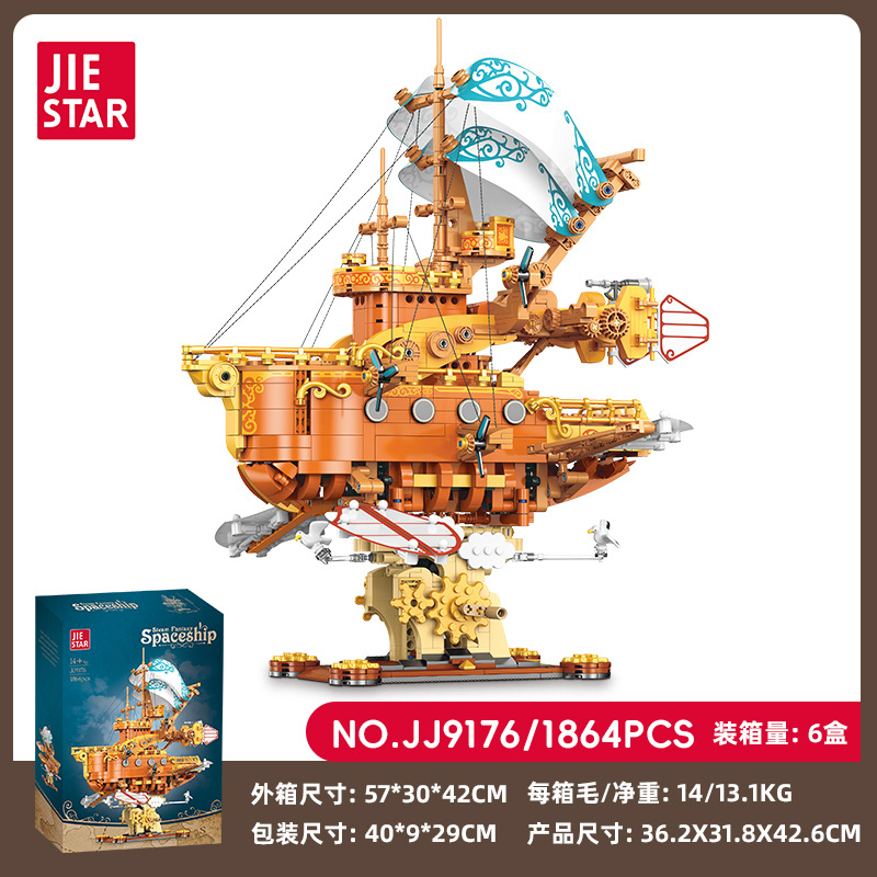 Jie Xing 9176 증기 판타지 우주선 복고풍 우주선 조립 모델 퍼즐 빌딩 블록 장난감 공장 직접 판매