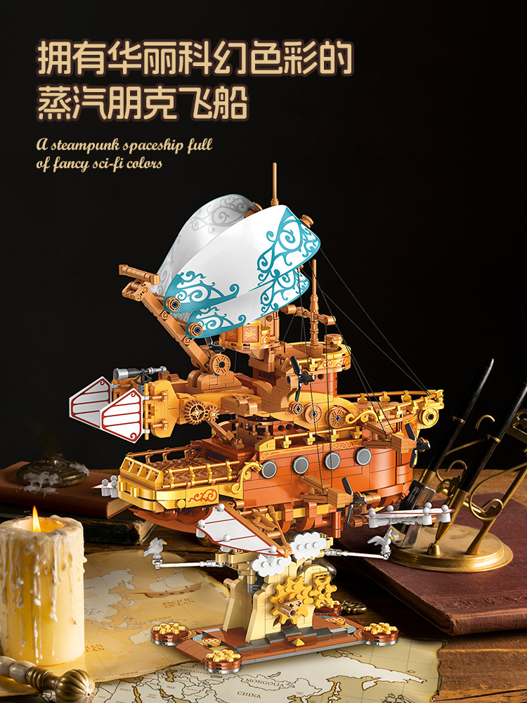 Jie Xing 9176 증기 판타지 우주선 복고풍 우주선 조립 모델 퍼즐 빌딩 블록 장난감 공장 직접 판매스토어 가기