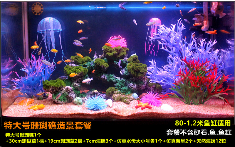 물고기 탱크 조경 장식 바위 돌 잔디 풍경 시뮬레이션 물 잔디 조경 패키지 수족관 크기 장식품 무료 배송스토어 가기
