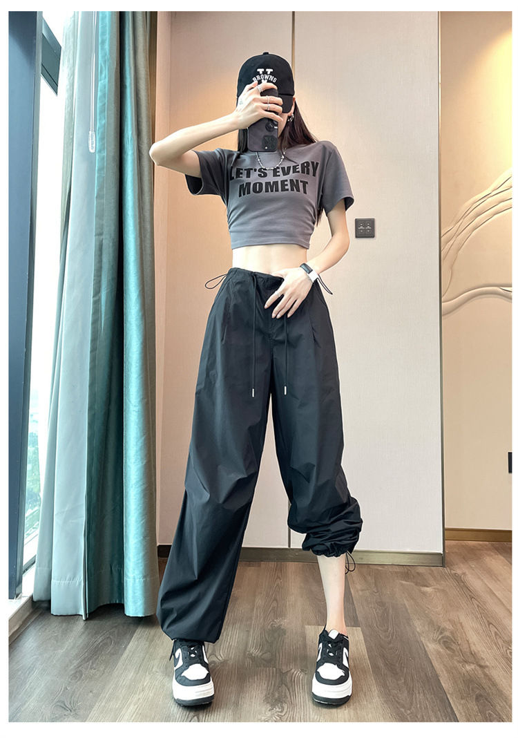 코튼 아메리칸 스타일 크록 팬츠 여성의 봄과 가을 2024 새로운 하이 웨이스트 슬림 핏 발 팁 등산 와이드 레그 팬츠스토어 가기