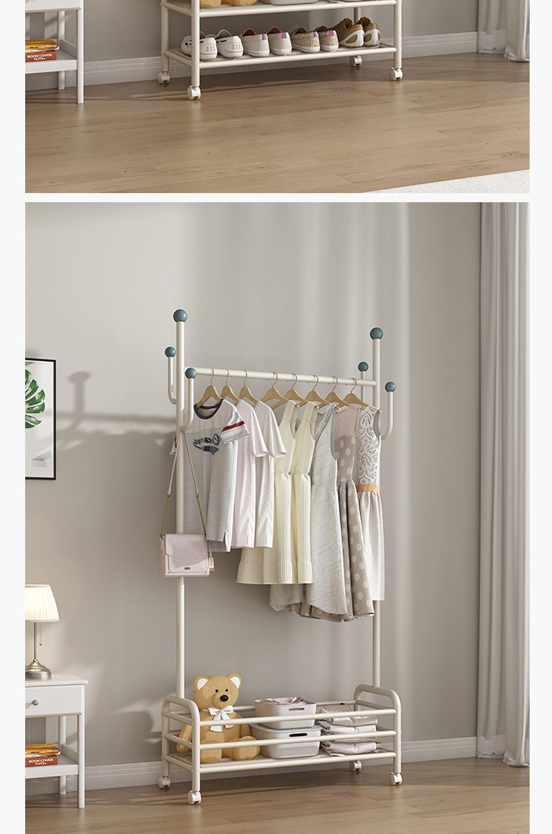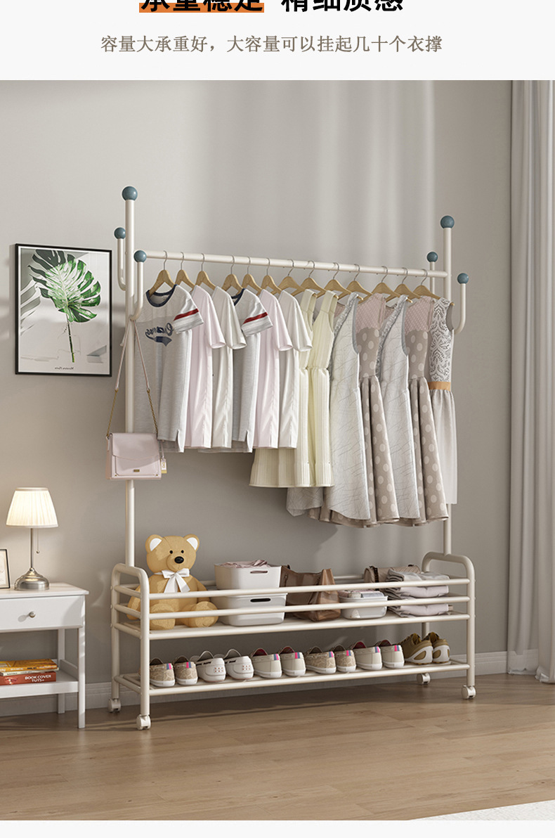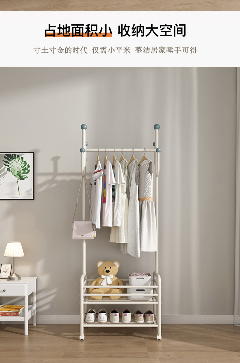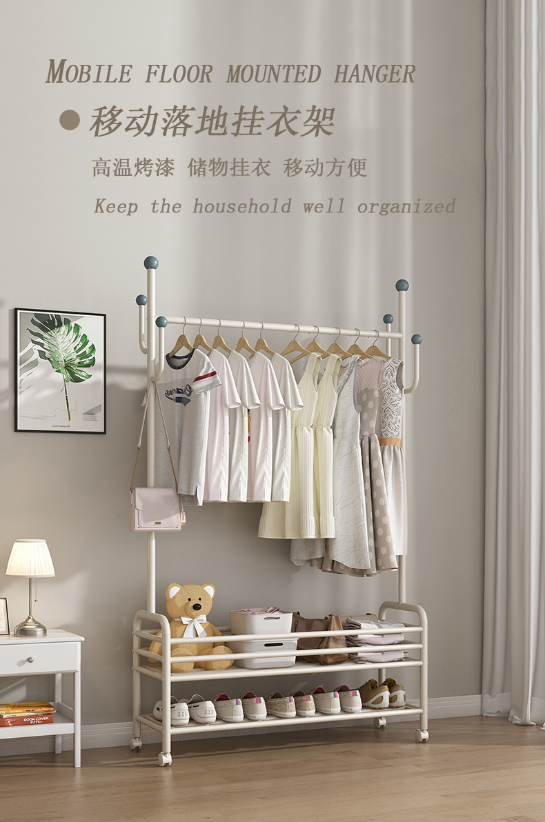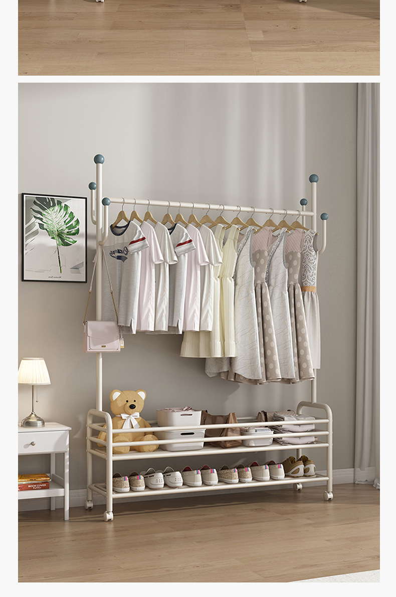 인터넷 축하 거실 이동식 옷걸이 바닥 침실 크림 스타일 코트 랙 실내 스토리지 랙 통합 의류 랙