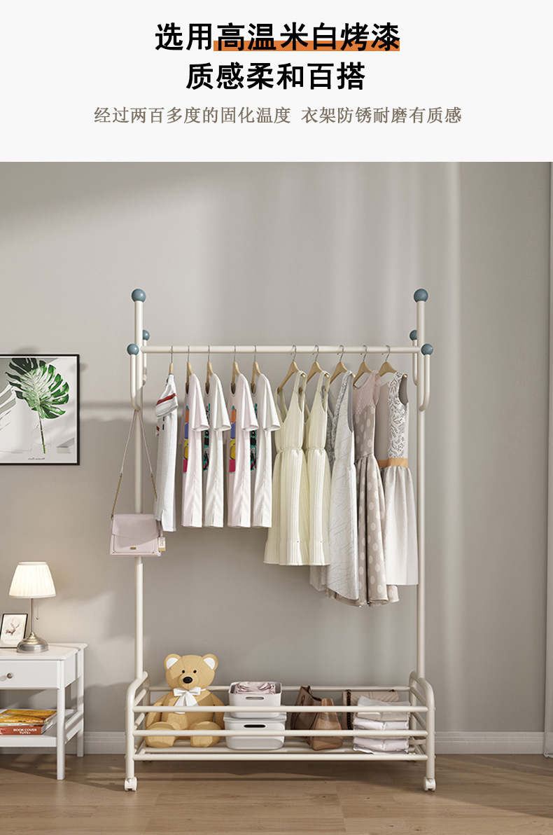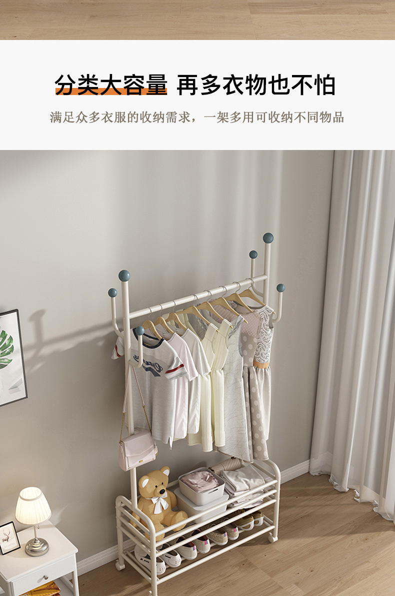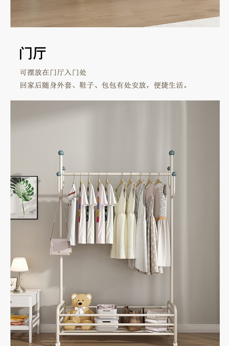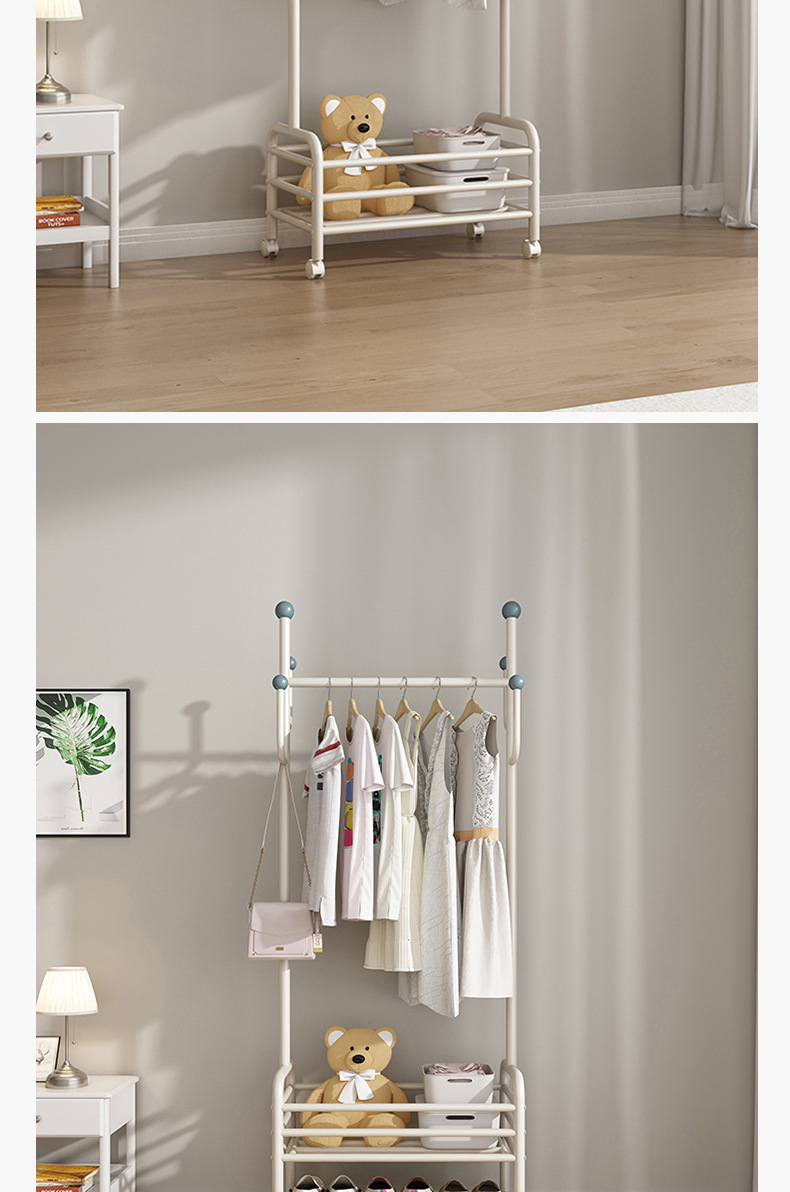 인터넷 축하 거실 이동식 옷걸이 바닥 침실 크림 스타일 코트 랙 실내 스토리지 랙 통합 의류 랙