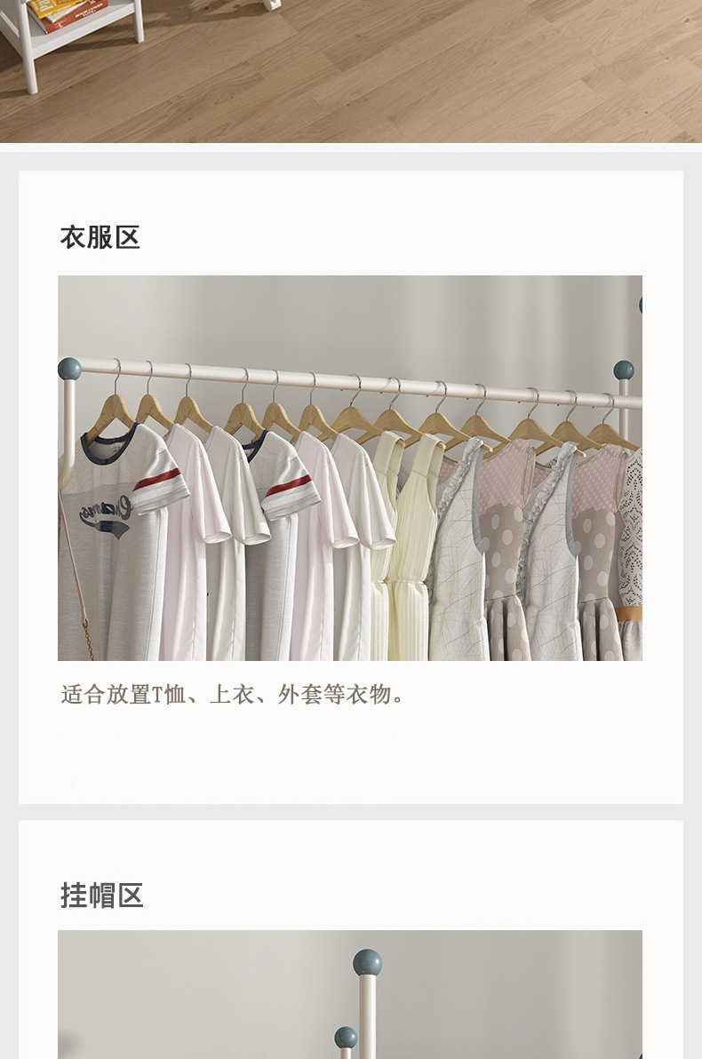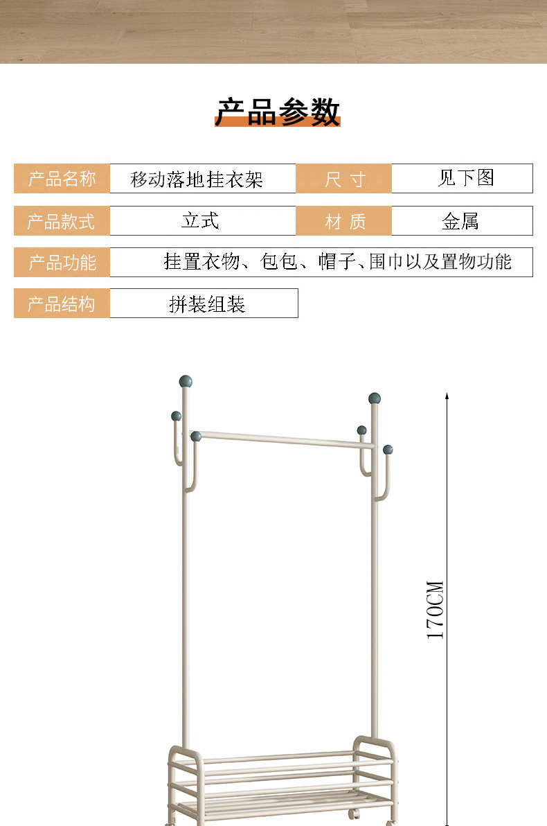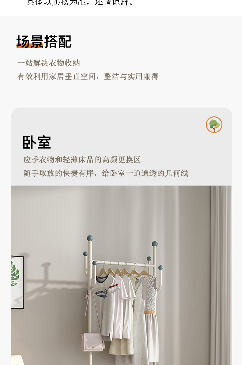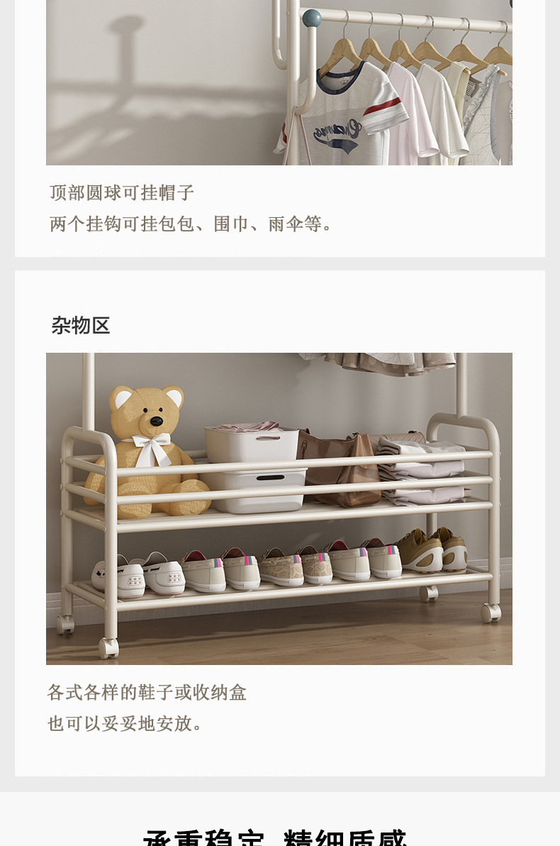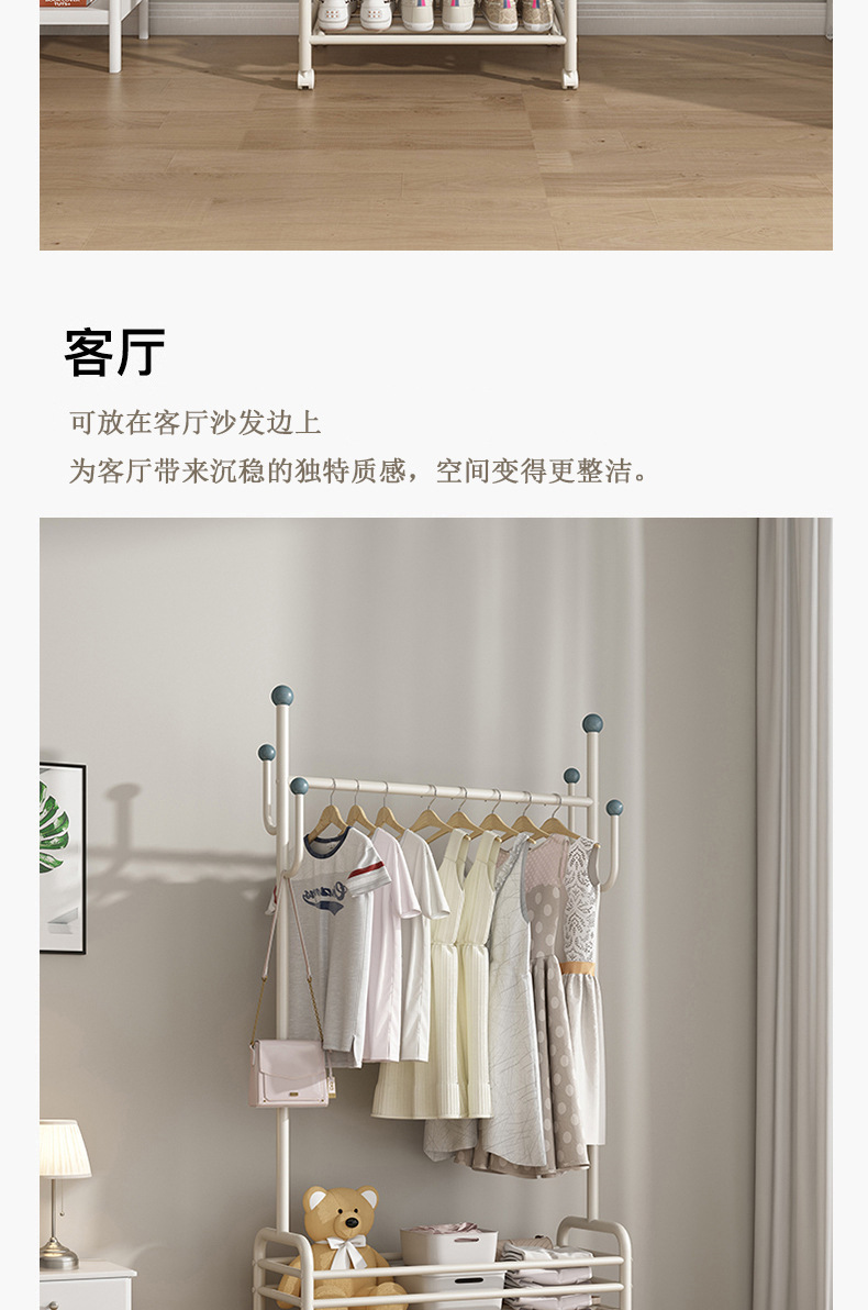 인터넷 축하 거실 이동식 옷걸이 바닥 침실 크림 스타일 코트 랙 실내 스토리지 랙 통합 의류 랙