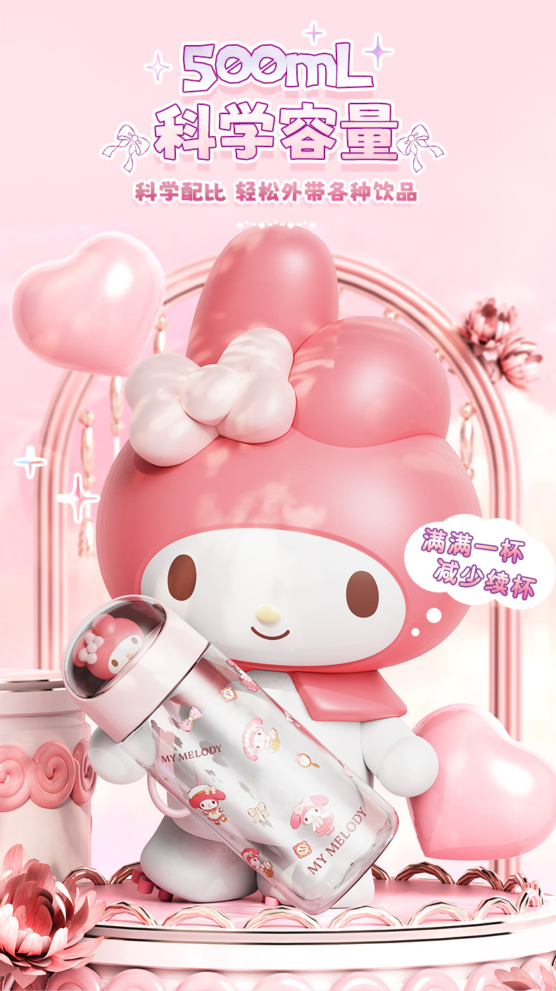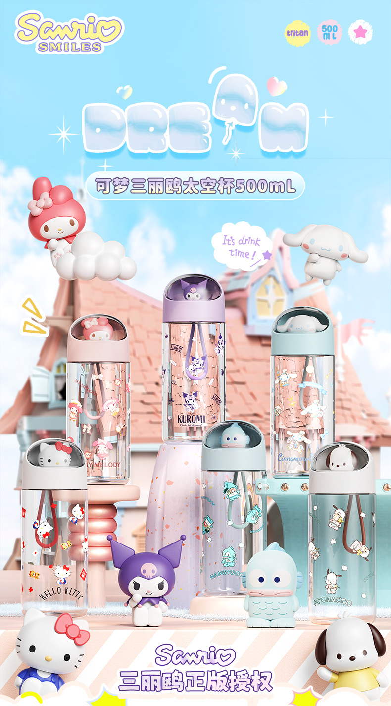 Acus 공장 Sanrio 꿈꾸는 물 컵 500mL 스테레오 인형 공간 캡슐 트리탄 플라스틱 컵스토어 가기
