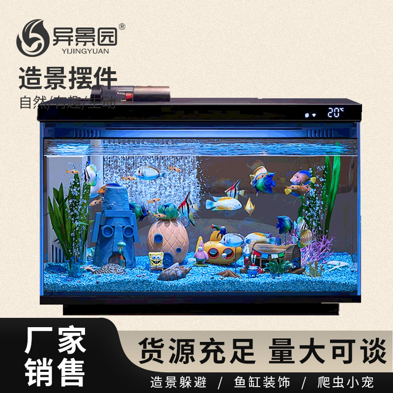 국경을 넘는 샤오미 어항 시뮬레이션 생태 조경 패키지, 완성된 미지아 조경 장식, 스폰지밥 장식품스토어 가기