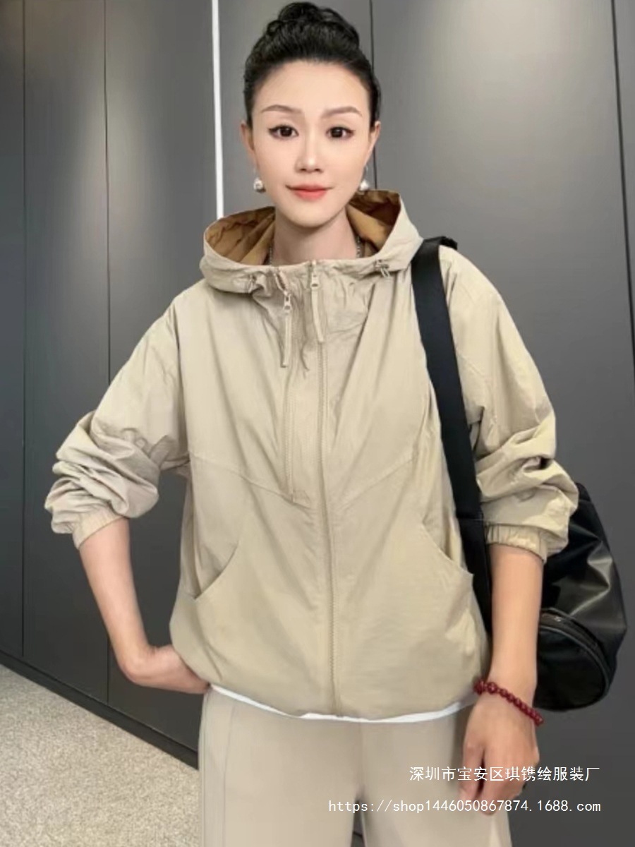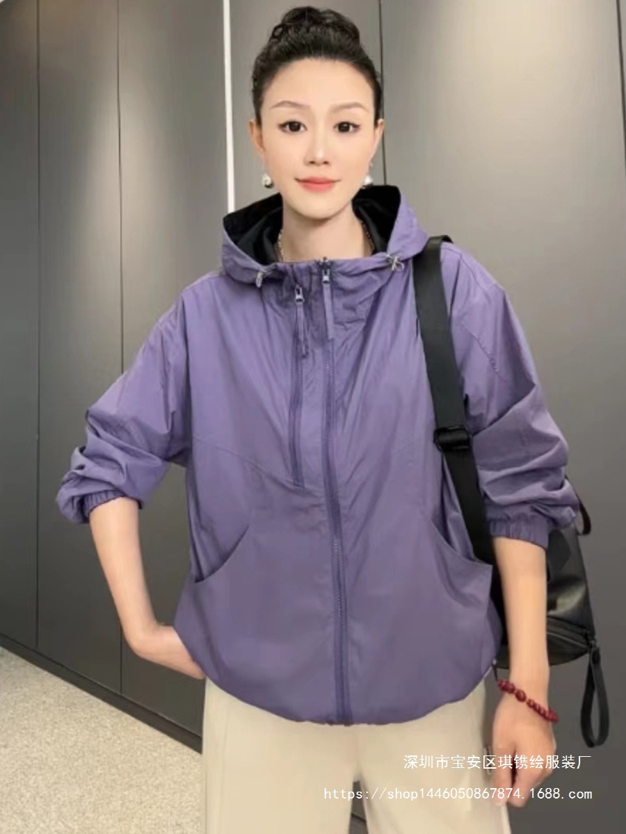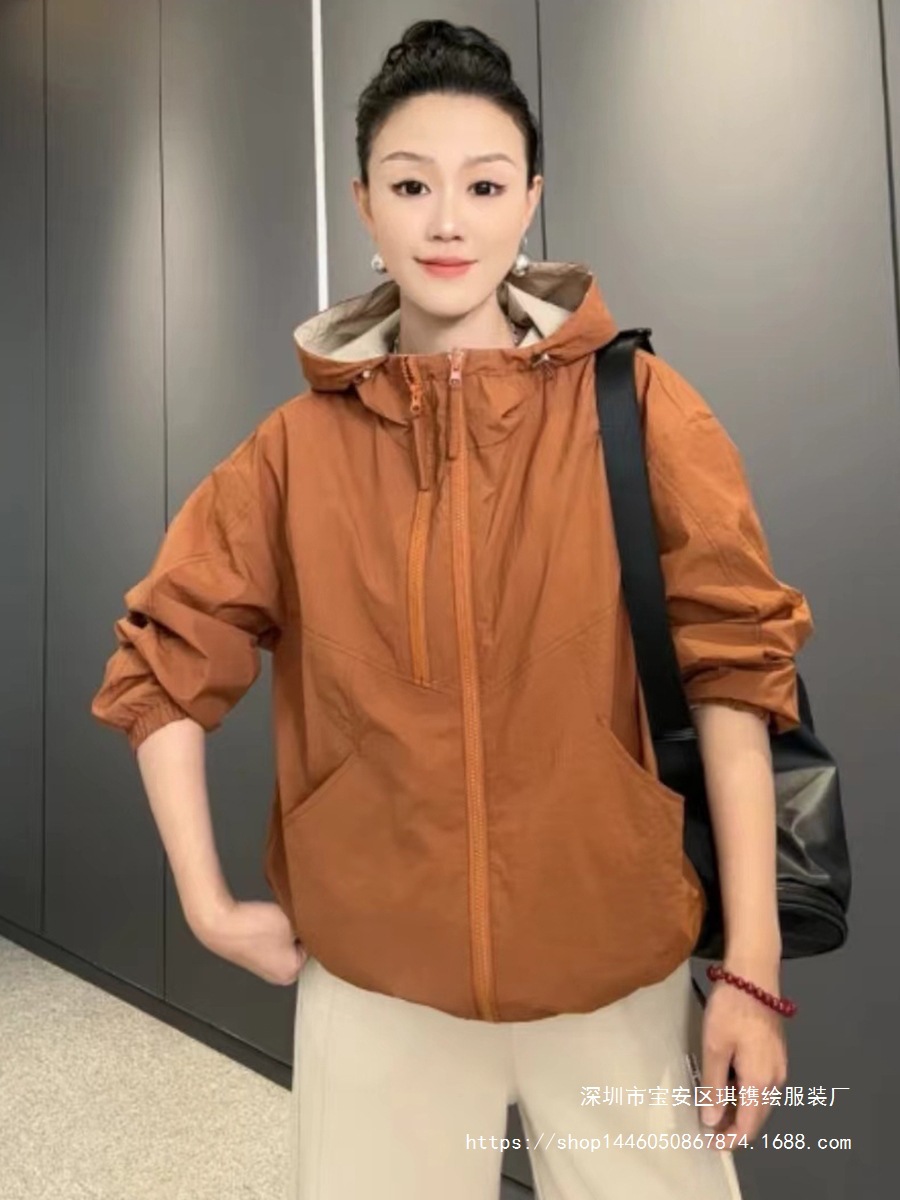 Qi, 유럽산 후드 외국식 얇은 양면 착용 충전 선스크린 여성의 봄 느슨한 캐주얼 자켓