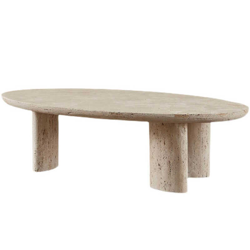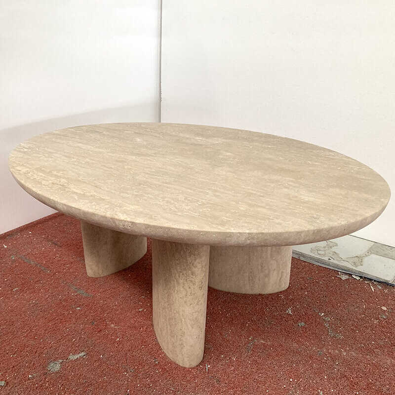 공장 직접 판매 북유럽 천연 노란색 석회암 커피 테이블 디자이너 모델 룸 거실 타원형 커피 테이블