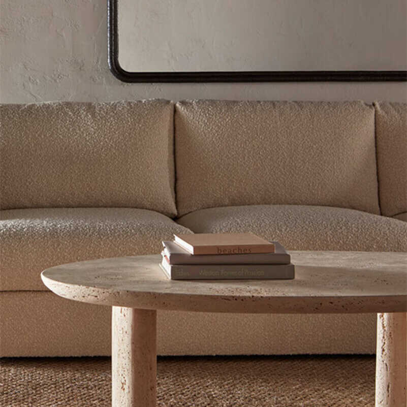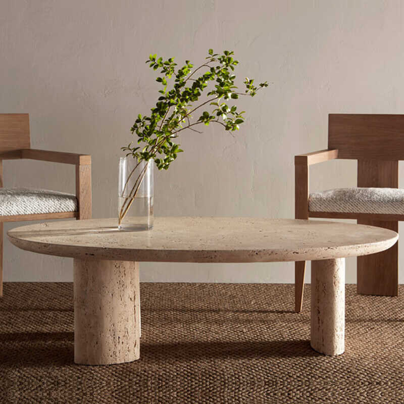 공장 직접 판매 북유럽 천연 노란색 석회암 커피 테이블 디자이너 모델 룸 거실 타원형 커피 테이블스토어 가기