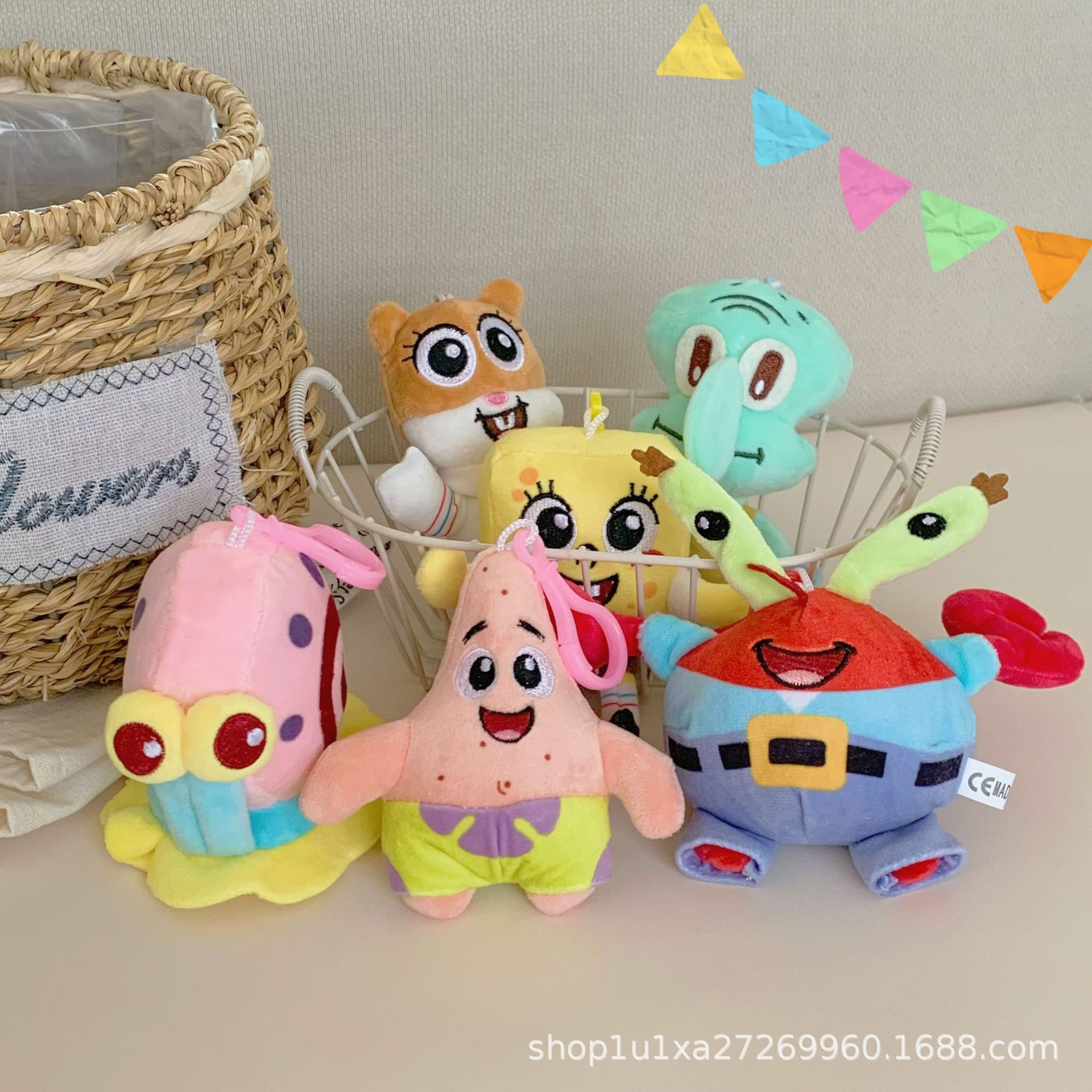 귀여운 스폰지 밥 패티 봉제 펜던트 크랩 보스 백 작은 교수형 인형 오징어 작은 벌레 장난감스토어 가기