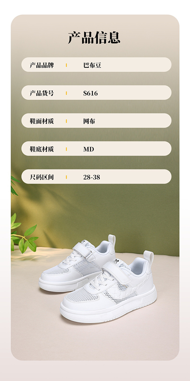 바부 콩 어린이 흰색 운동화 소년 흰색 신발 메쉬 통기성 어린이 유치원 여성 신발 보드 신발스토어 가기