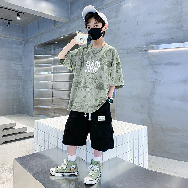 아동복 세트 2026년 신상 여름옷 남아 여름 반팔 반바지 남아 중대형 아동 캐주얼 투피스 세트 도매스토어 가기