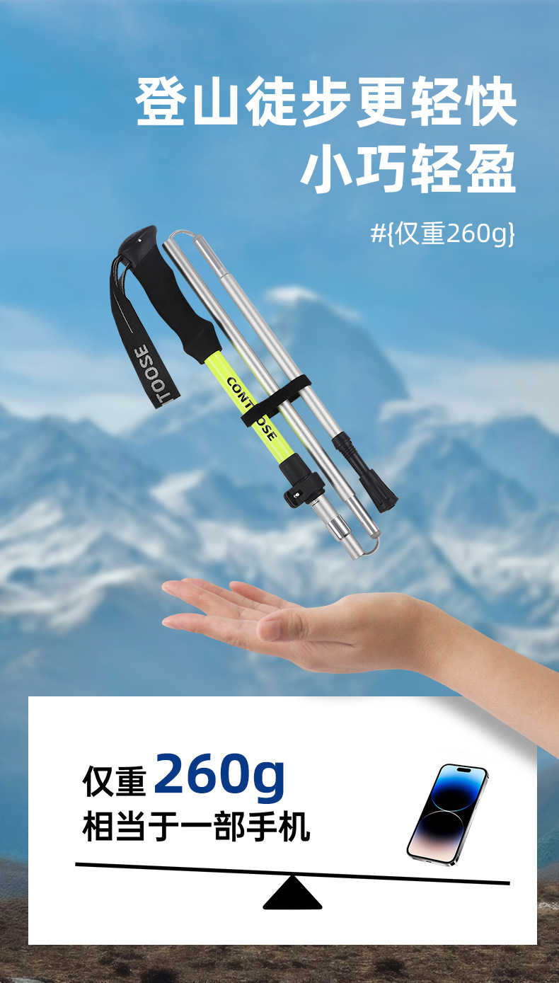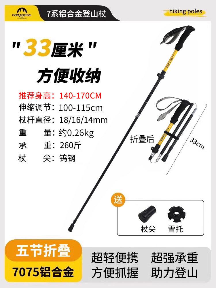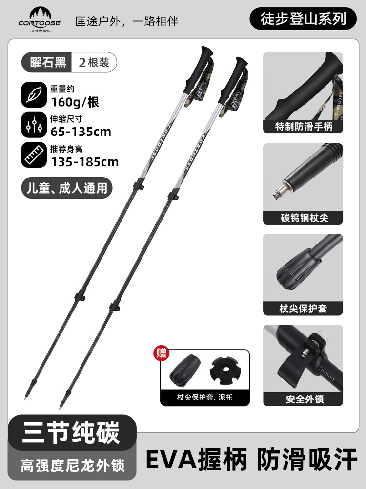 전문 야외 등반 스틱 탄소 섬유 접이식 슬립 목발 스틱 남성과 여성의 등산 및 하이킹 장비 간단한스토어 가기