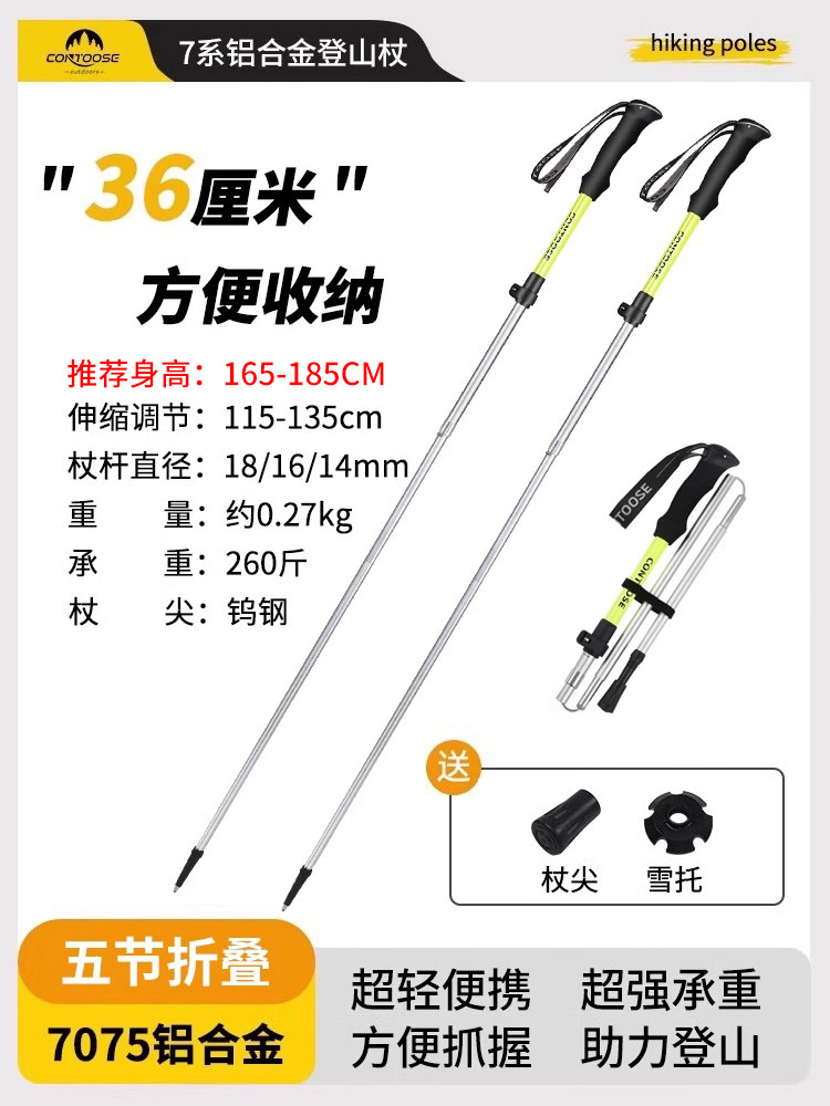 • [7075 알루미늄 합금 접이식 쇼트 스타일] 형광 그린 [컴팩트한 수납] [튼튼하고 내구성이 좋음]