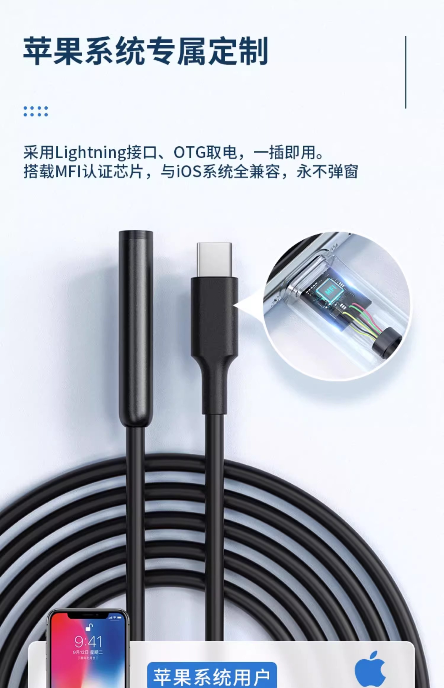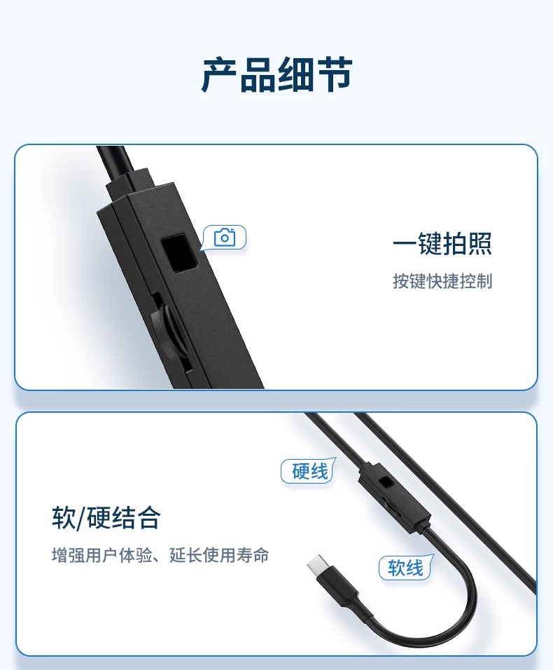 • [휴대폰 기종에 국한되지 않은 직접 연결] 울트라 클리어 8mm 듀얼 렌즈 10m 하드 와이어